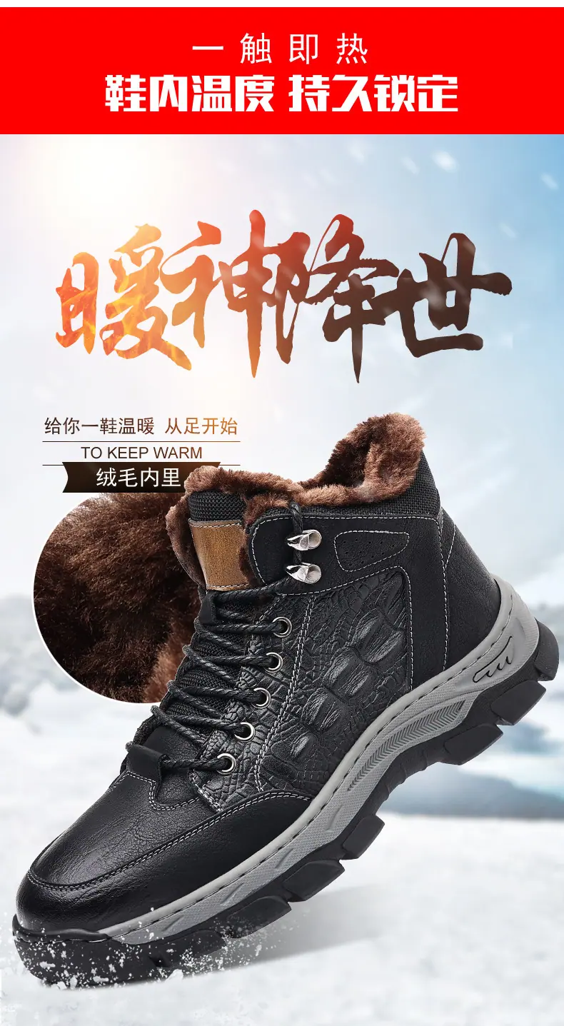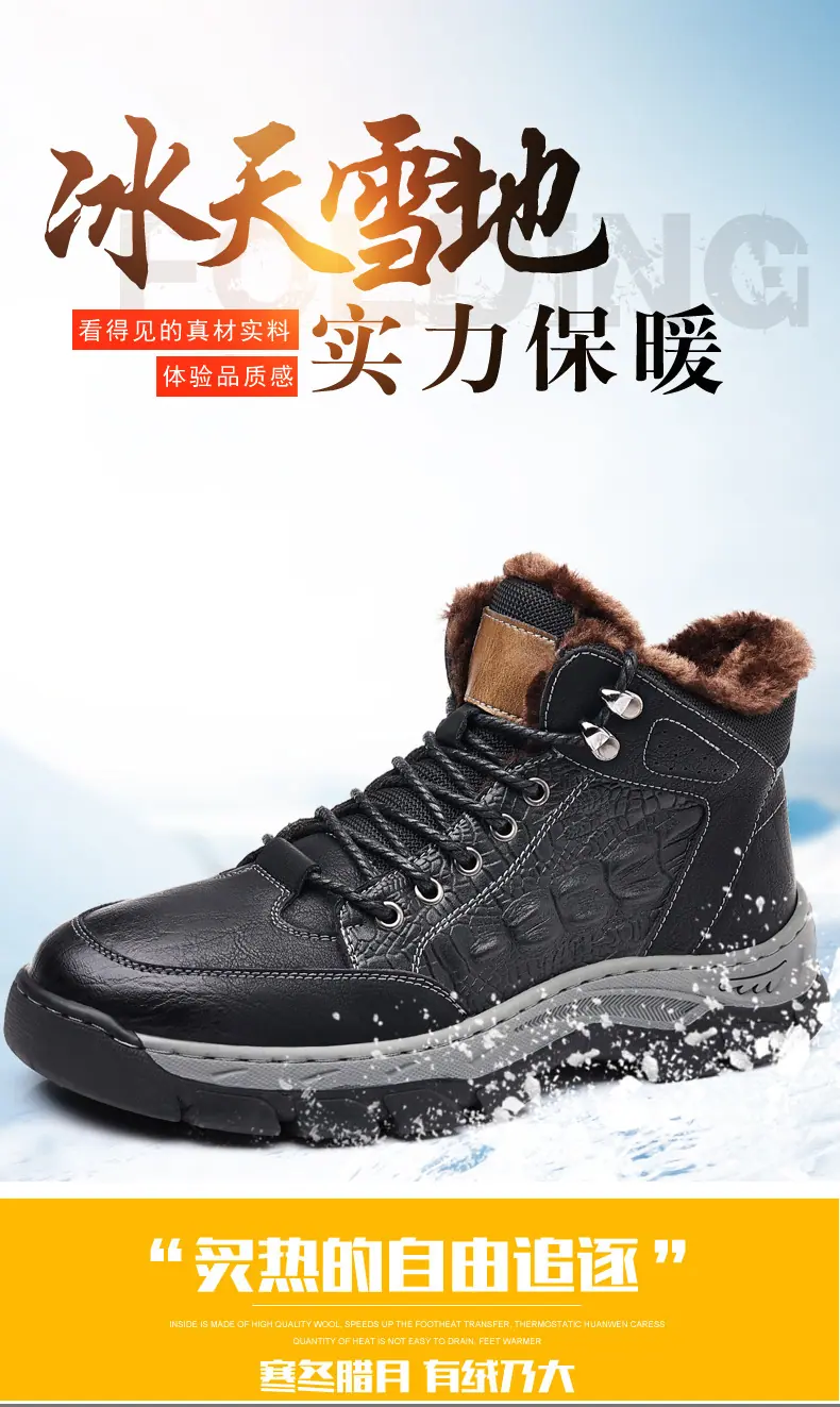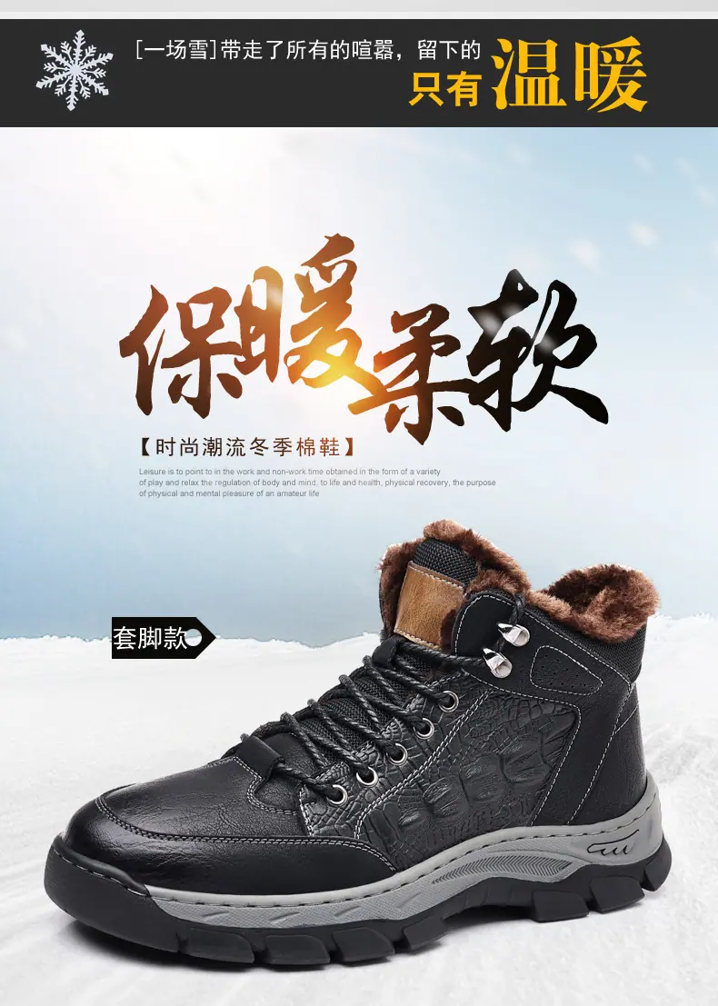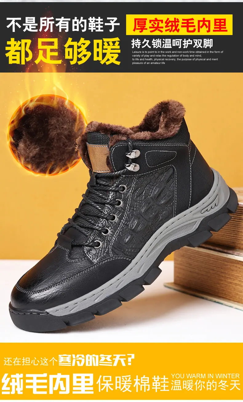 Botas de nieve de envío directo transfronterizo invierno nuevo cuero más terciopelo engrosado zapatos de algodón grandes para hombre más terciopelo cálido zapatos de papá