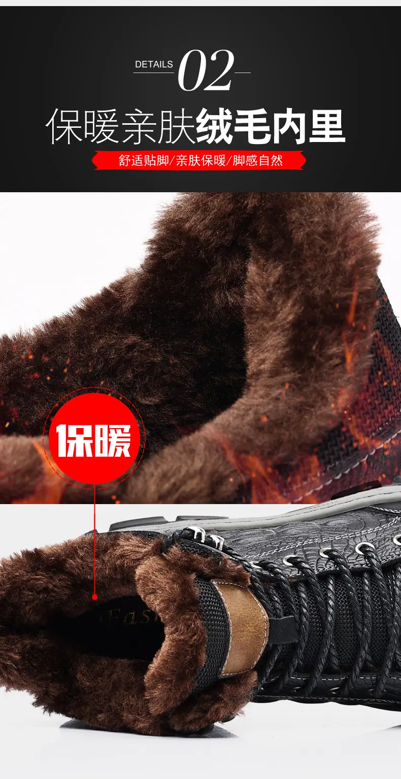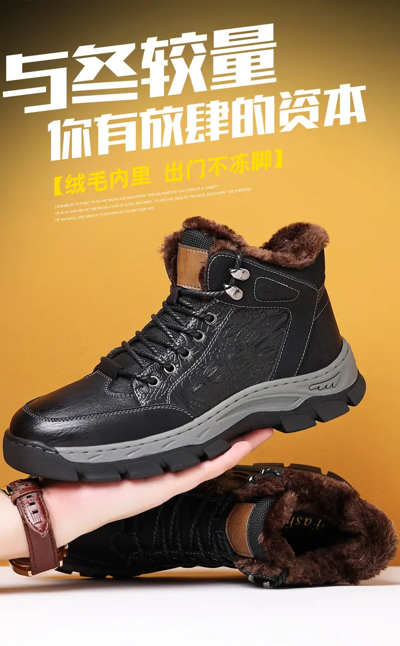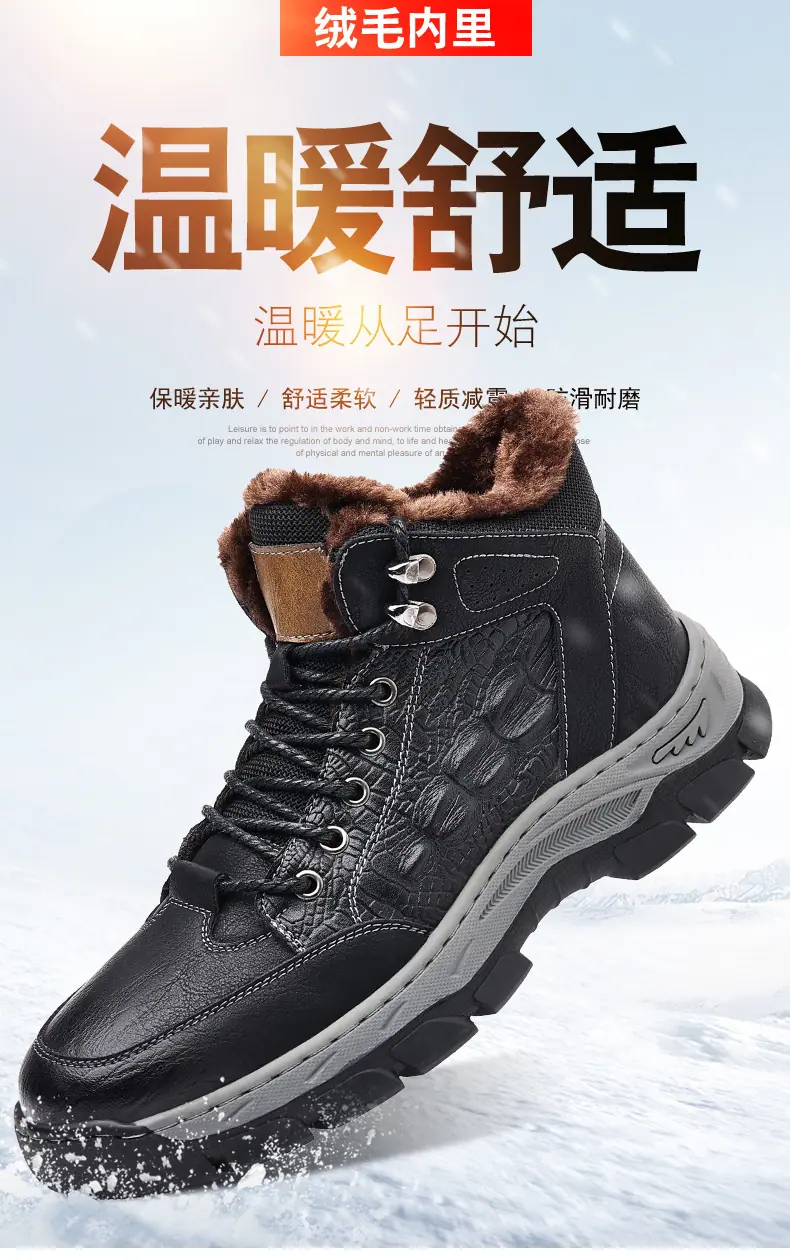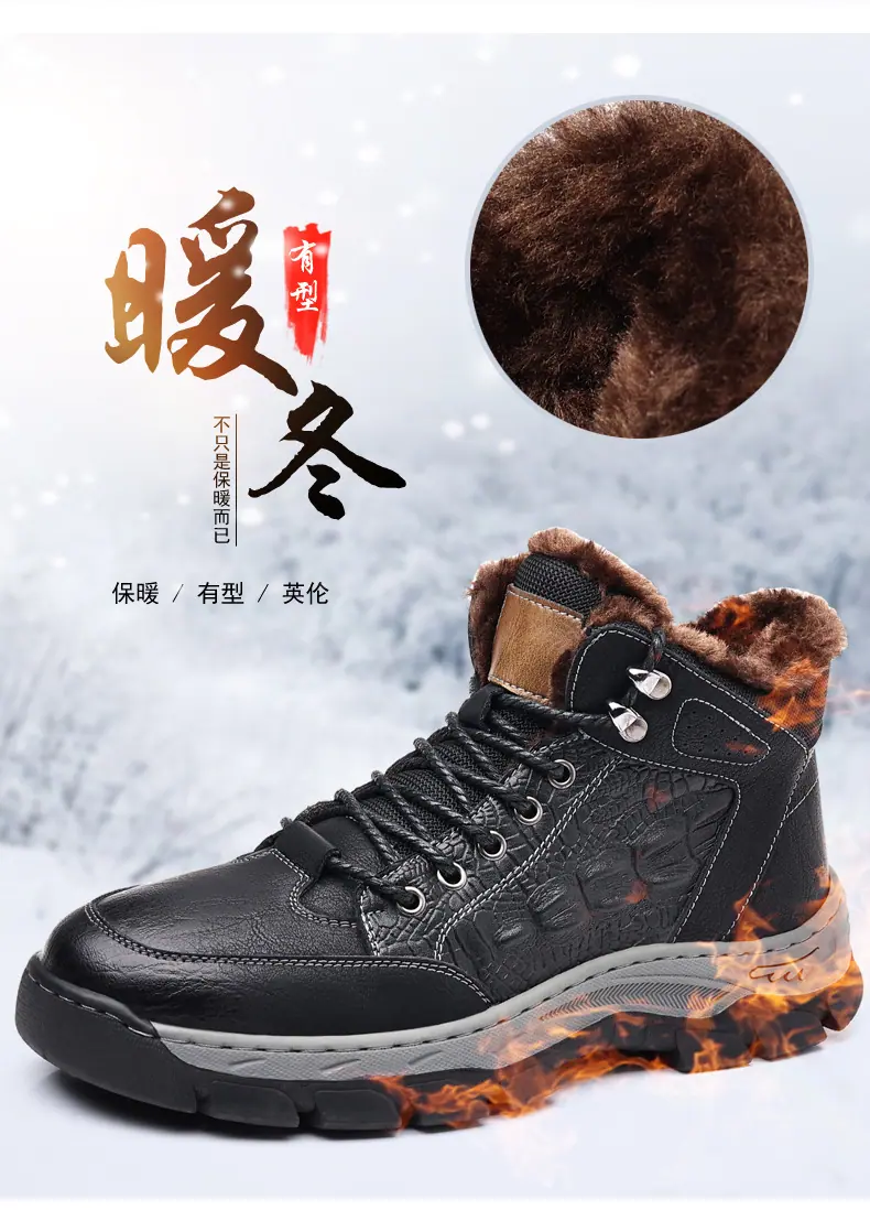 Botas de nieve de envío directo transfronterizo invierno nuevo cuero más terciopelo engrosado zapatos de algodón grandes para hombre más terciopelo cálido zapatos de papá