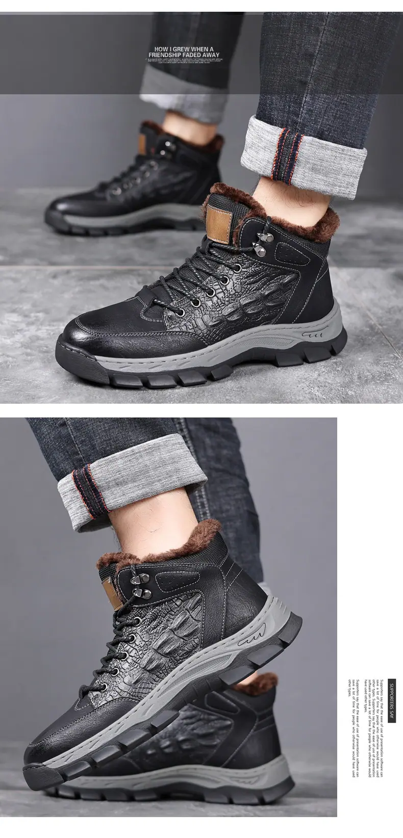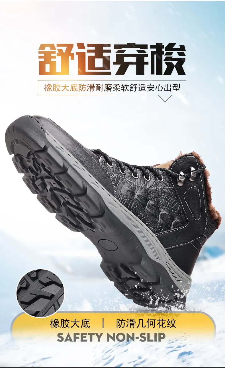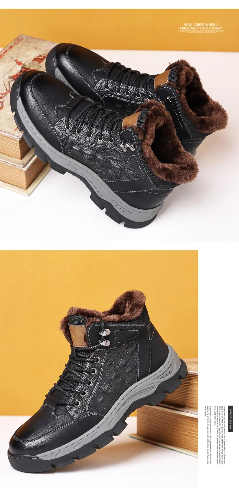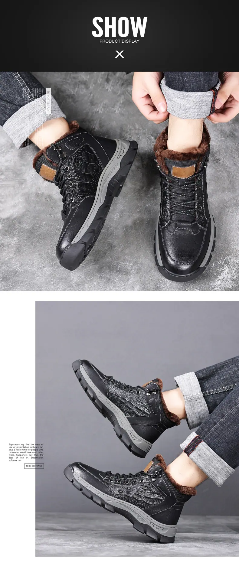 Botas de nieve de envío directo transfronterizo invierno nuevo cuero más terciopelo engrosado zapatos de algodón grandes para hombre más terciopelo cálido zapatos de papá