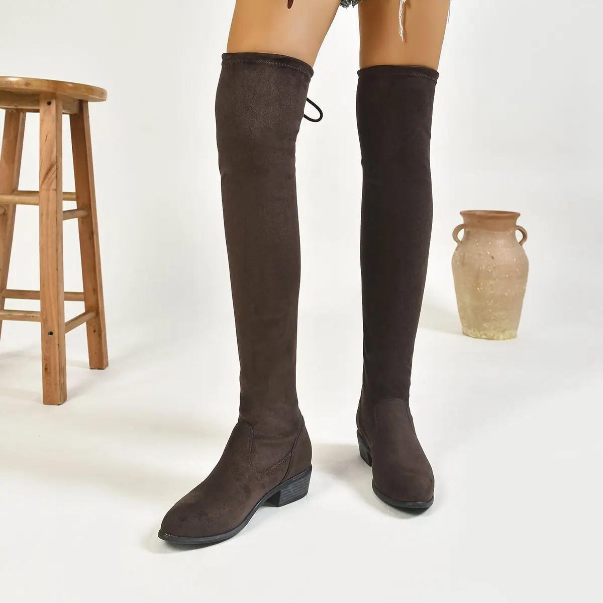 Compra 2024 Otoño/Invierno Nuevo Talla Grande Botas Sobre la Rodilla Mujer Adelgazantes Elásticas Botas Tacón Alto Caña Alta Botas Tacón Ancho Caña Larga Botas de Mujer al por mayor en Joom.pro