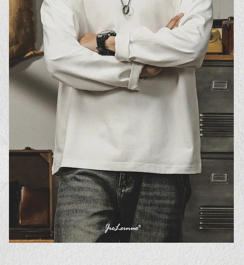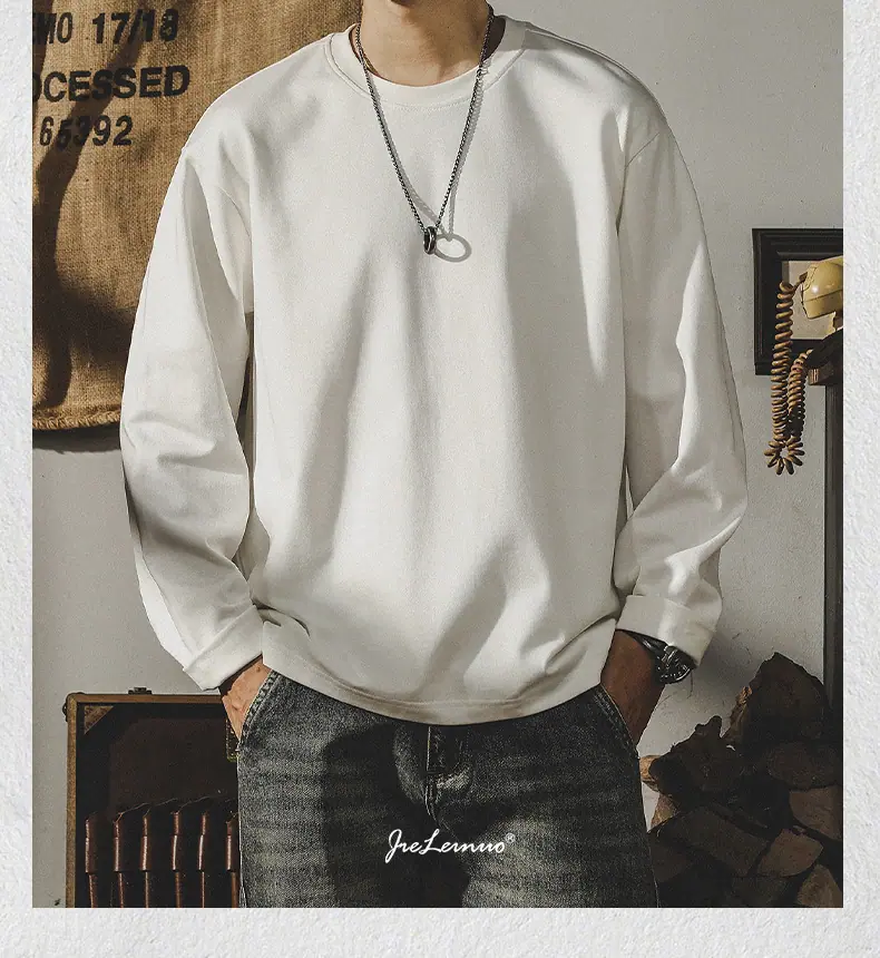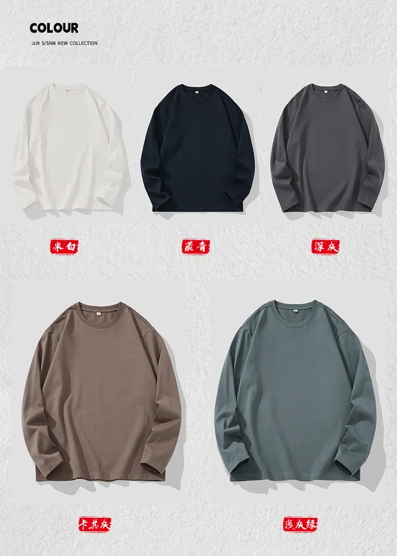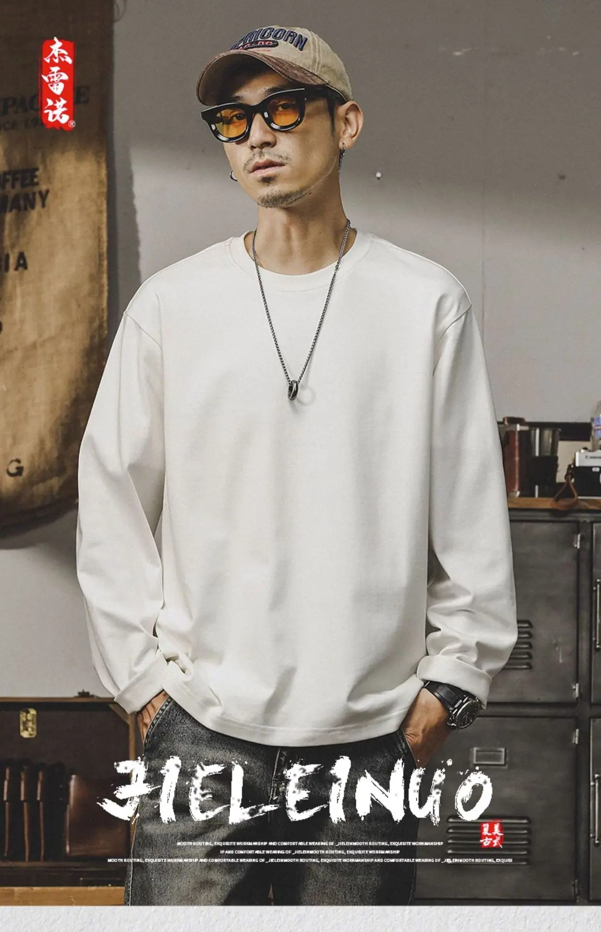 Camiseta pesada de 300g para hombre de manga larga para hombre primavera holgada color sólido algodón peinado cómoda amigable con la piel camisa básica para hombre