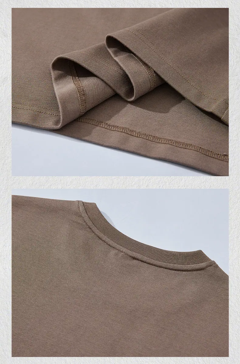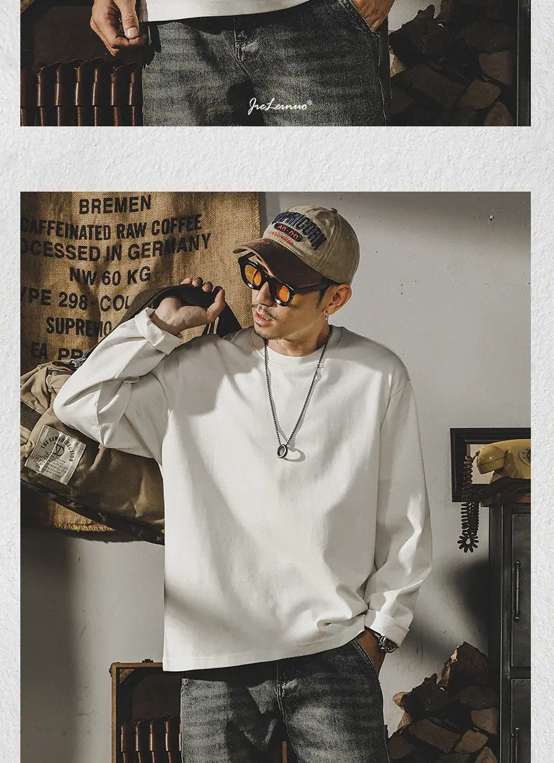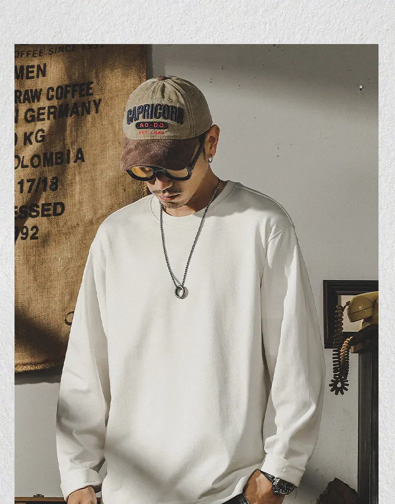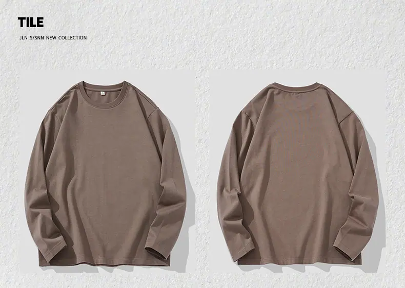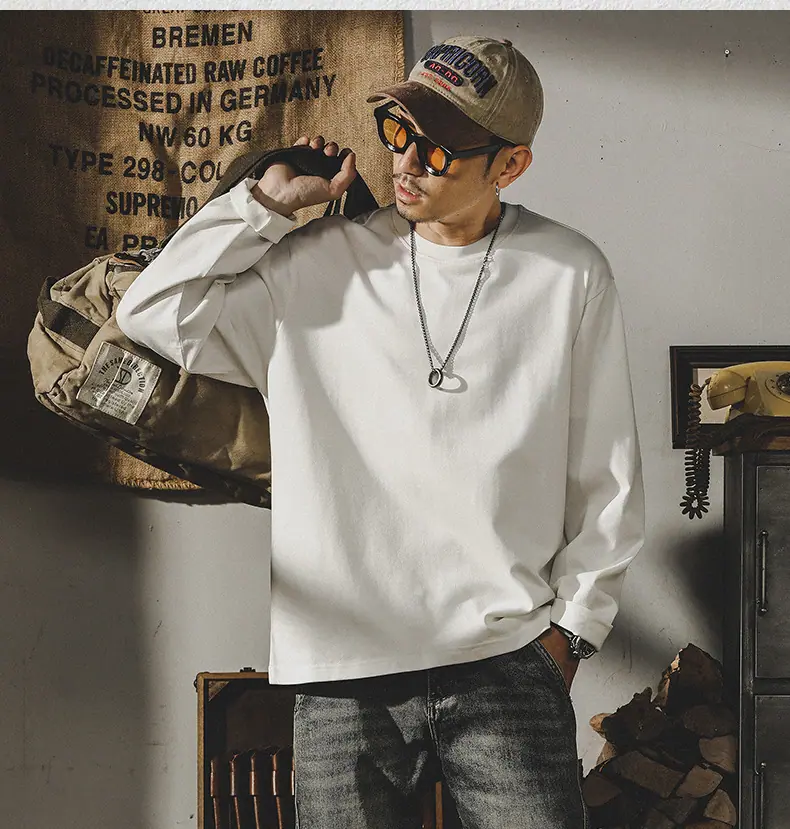 Camiseta pesada de 300g para hombre de manga larga para hombre primavera holgada color sólido algodón peinado cómoda amigable con la piel camisa básica para hombre