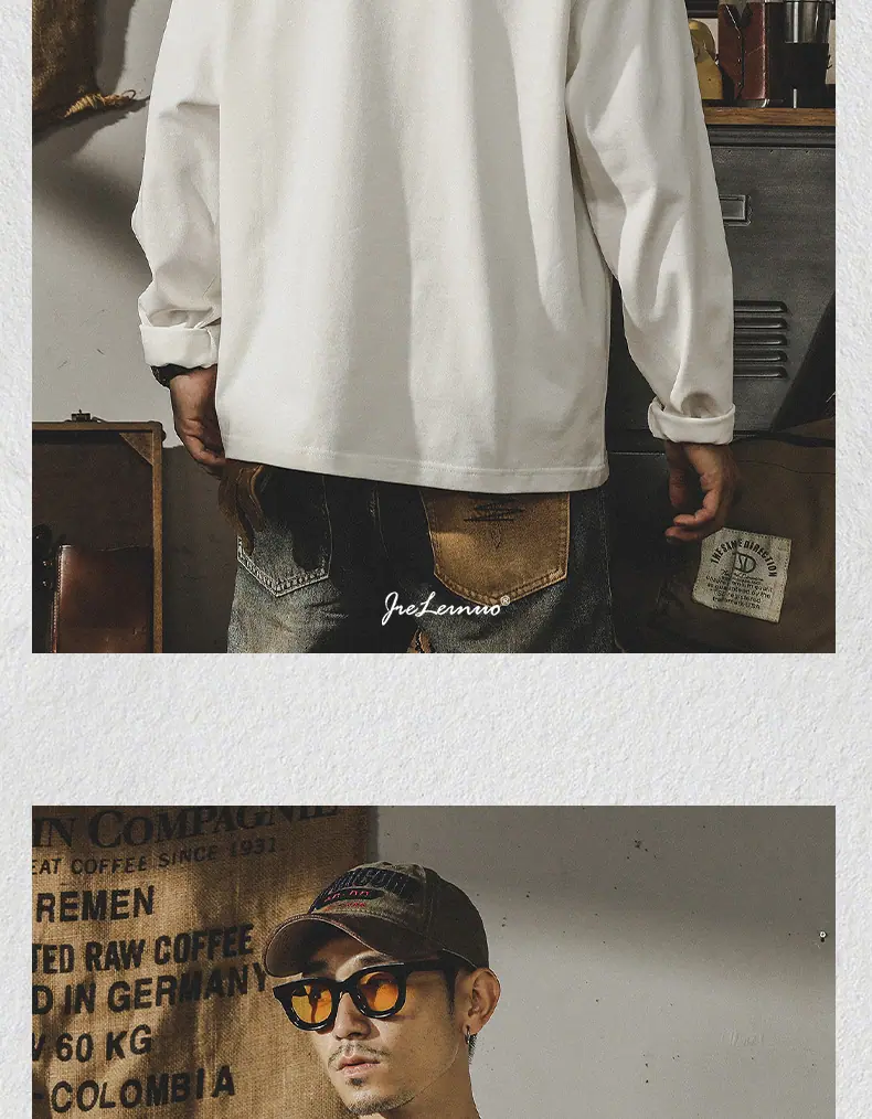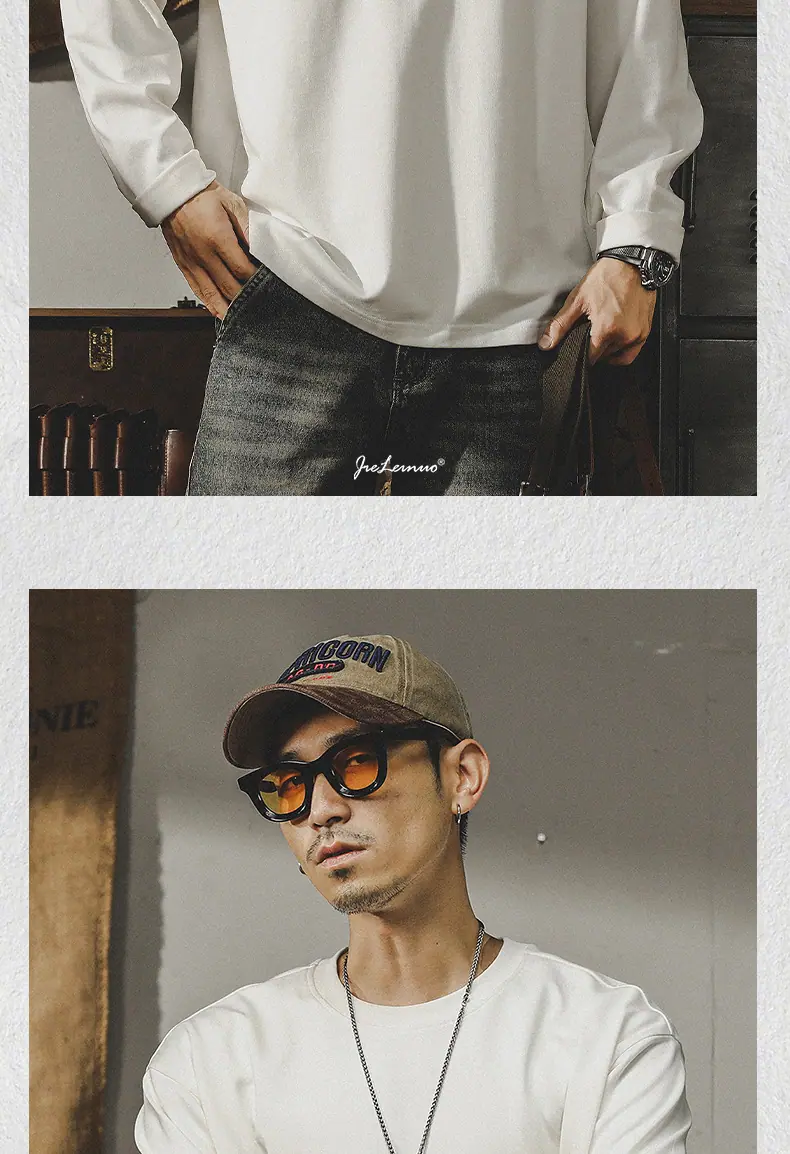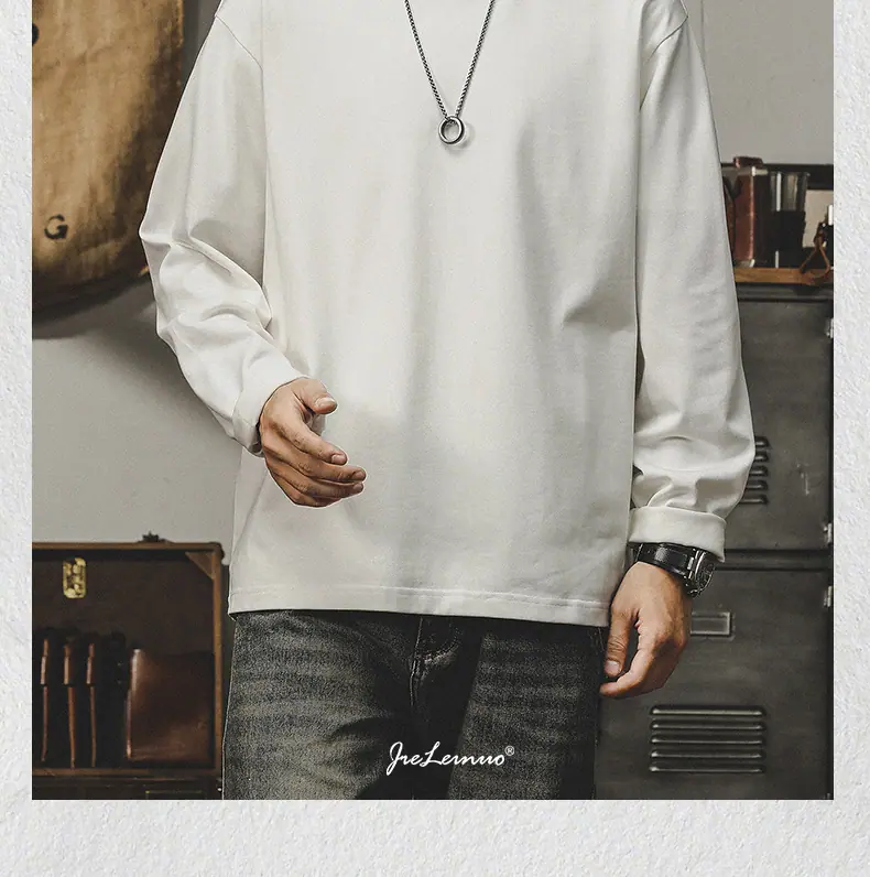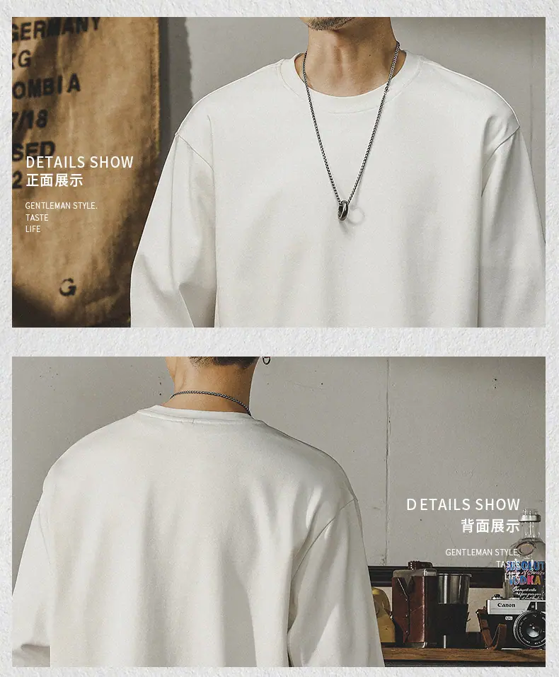 Compra Camiseta pesada de 300g para hombre de manga larga para hombre primavera holgada color sólido algodón peinado cómoda amigable con la piel camisa básica para hombre al por mayor en Joom.pro