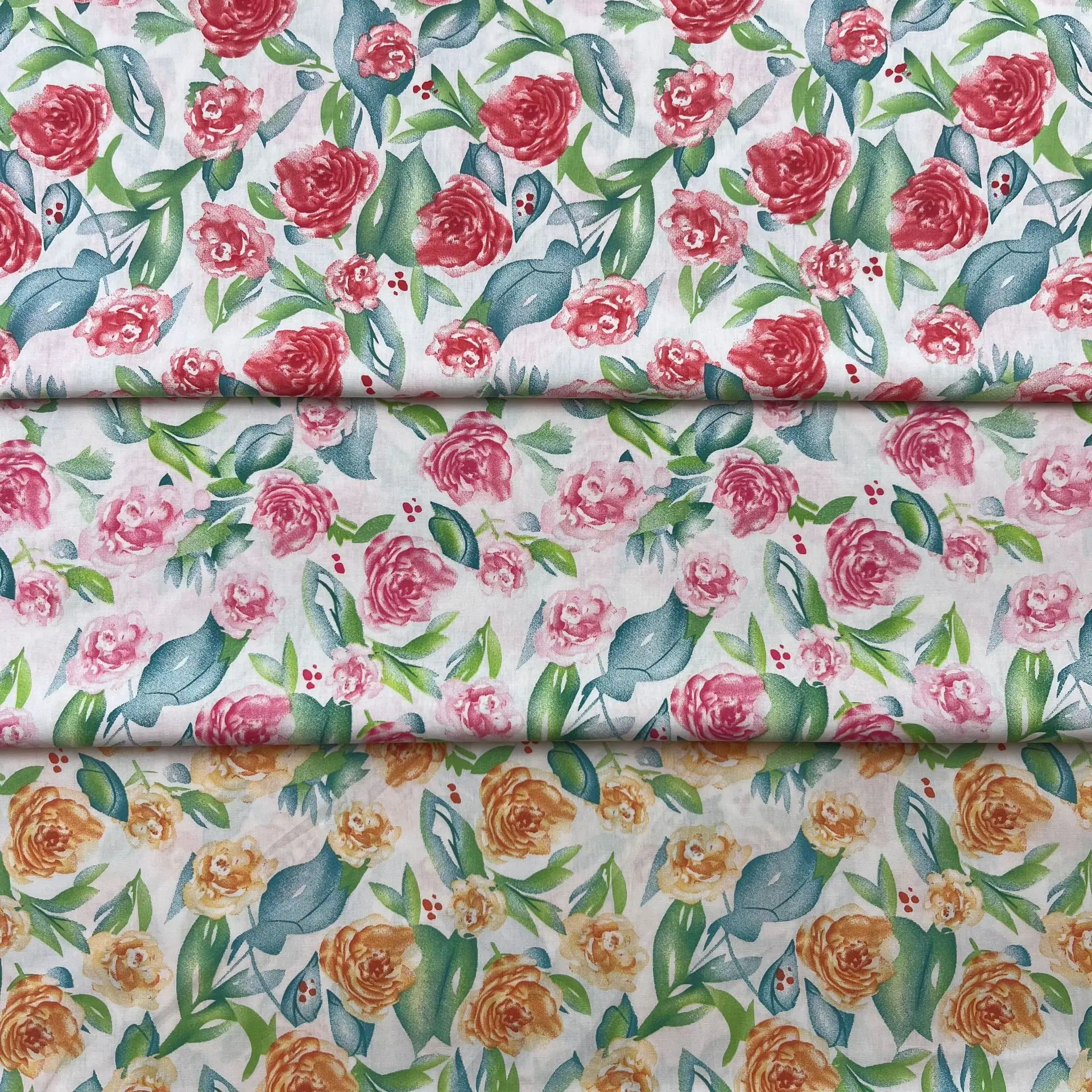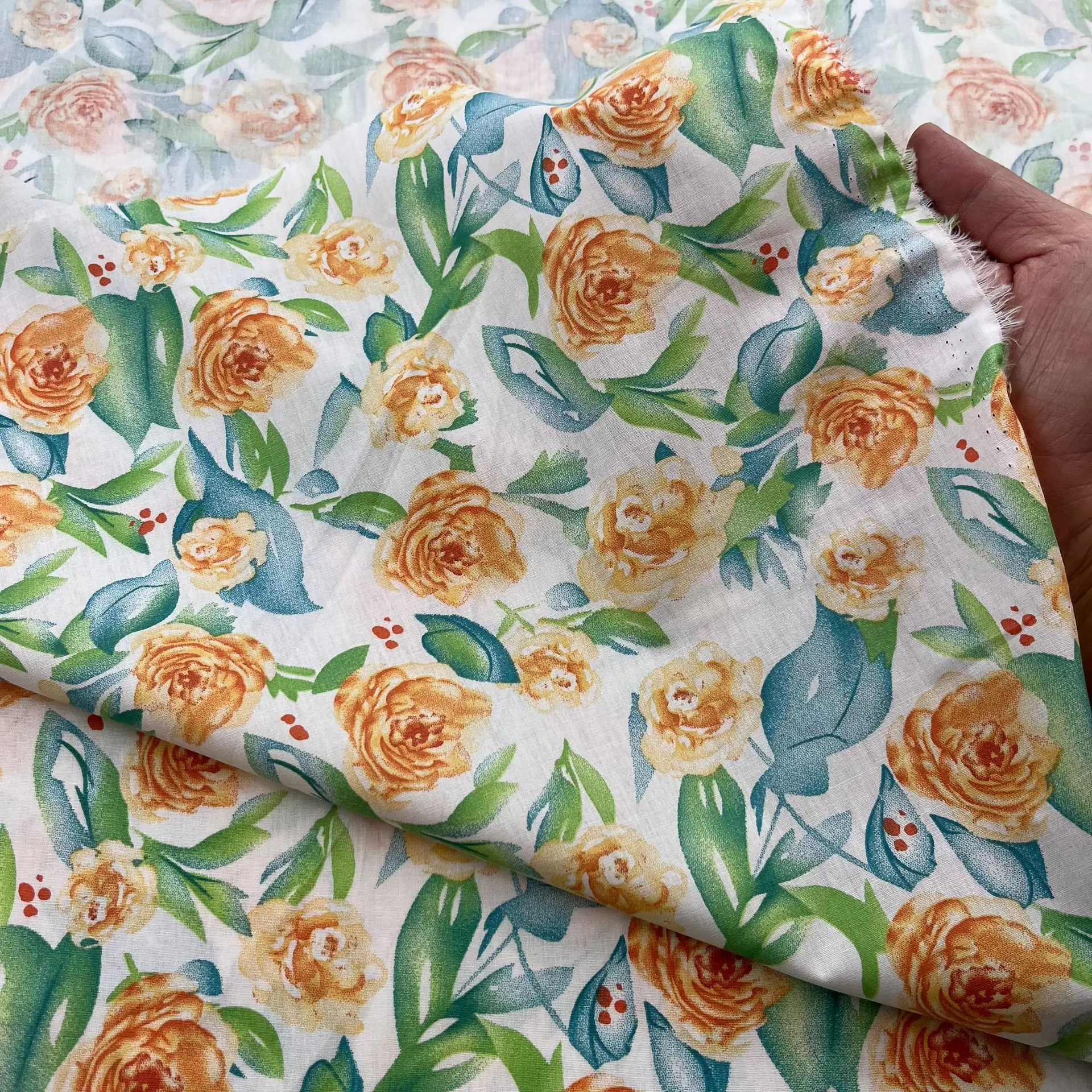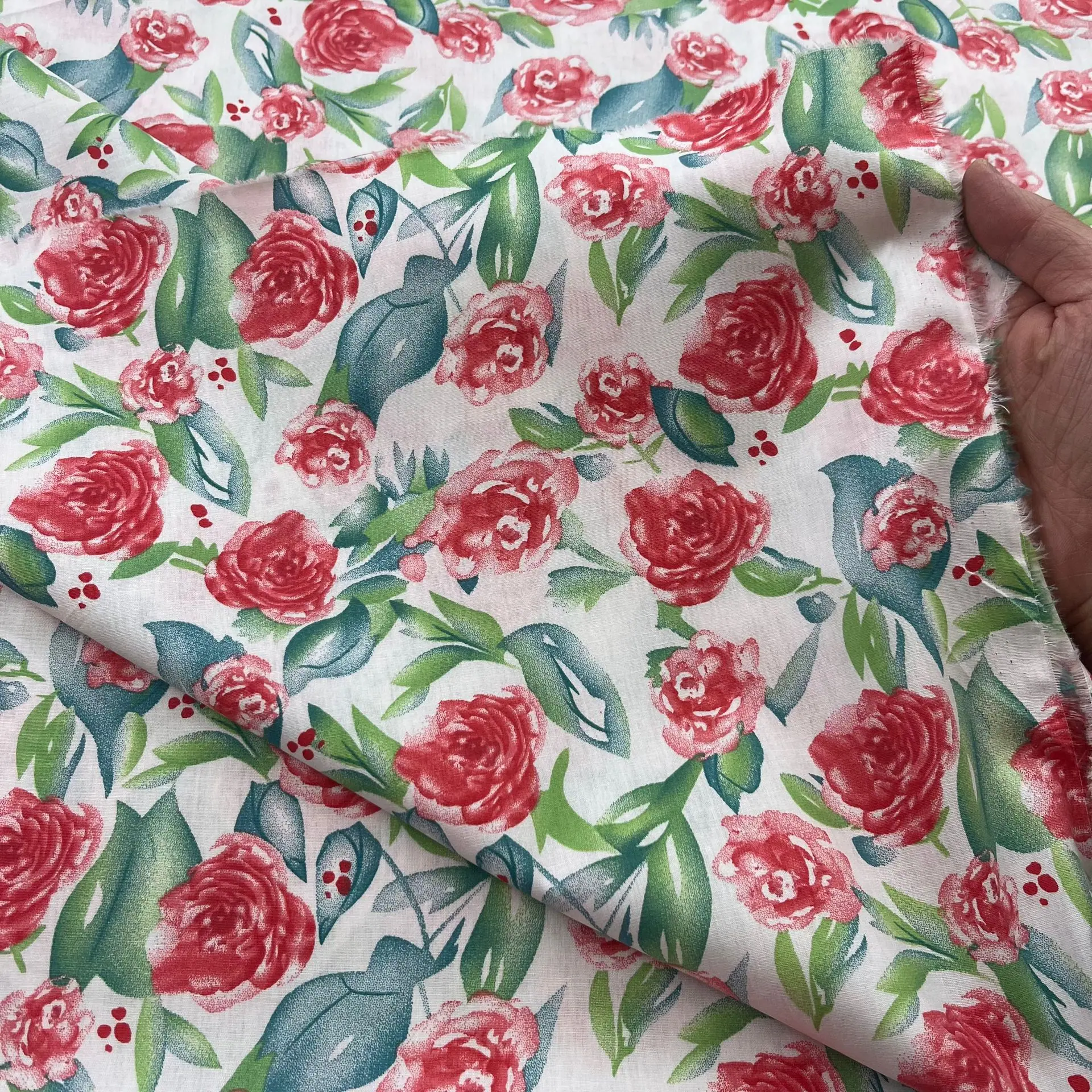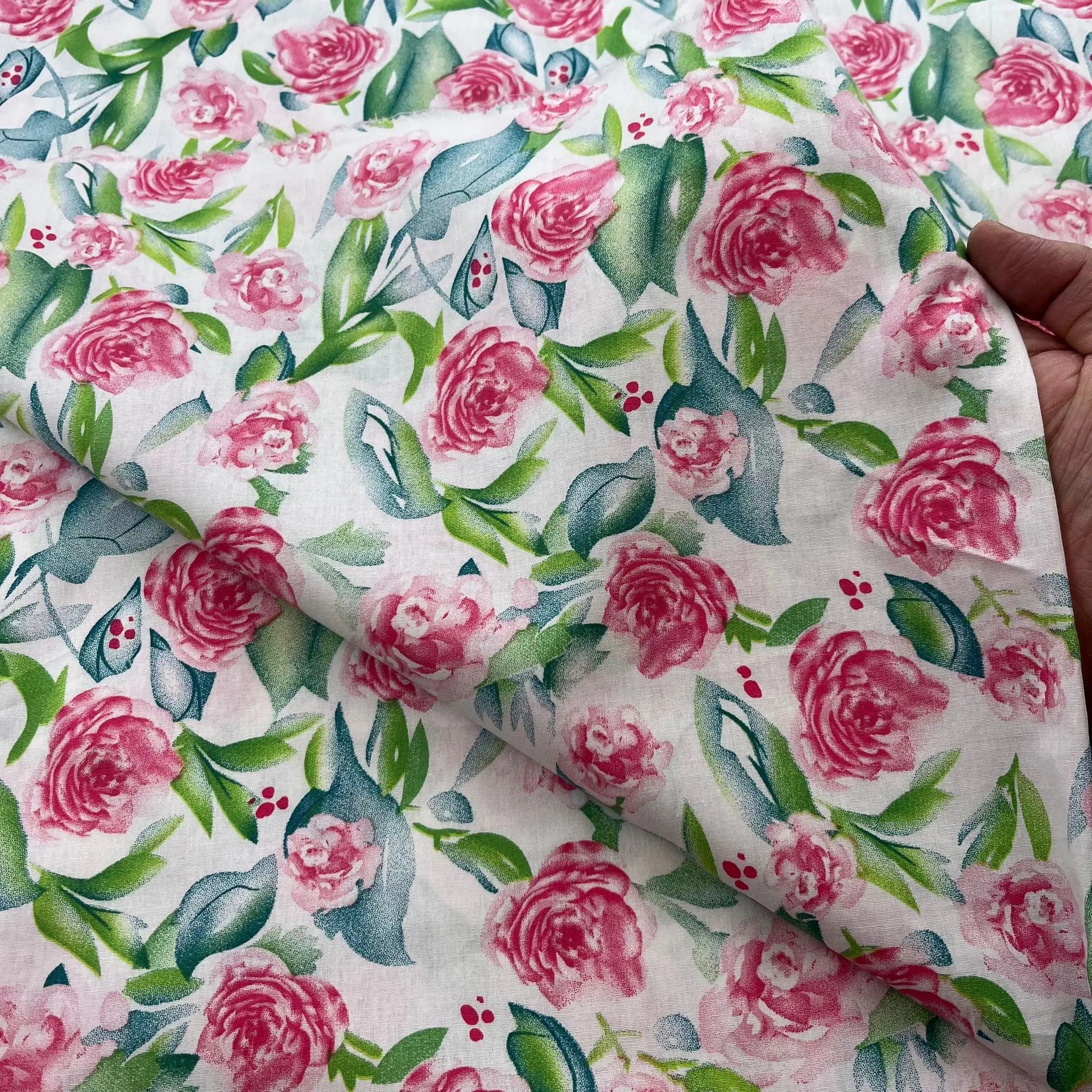 Popelina de Algodón Estampada de los Años 40 Tela Primavera Verano Pastoral Flores Rosas Tela para Camisa Bolsa DIY Tela Hecha a Mano