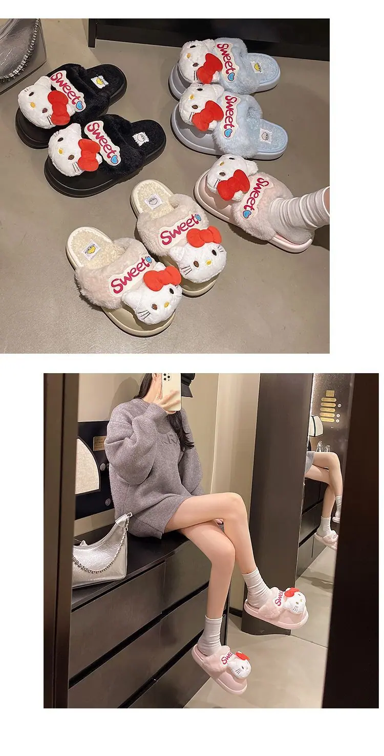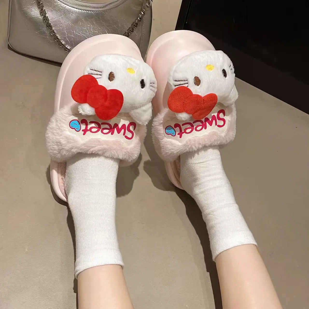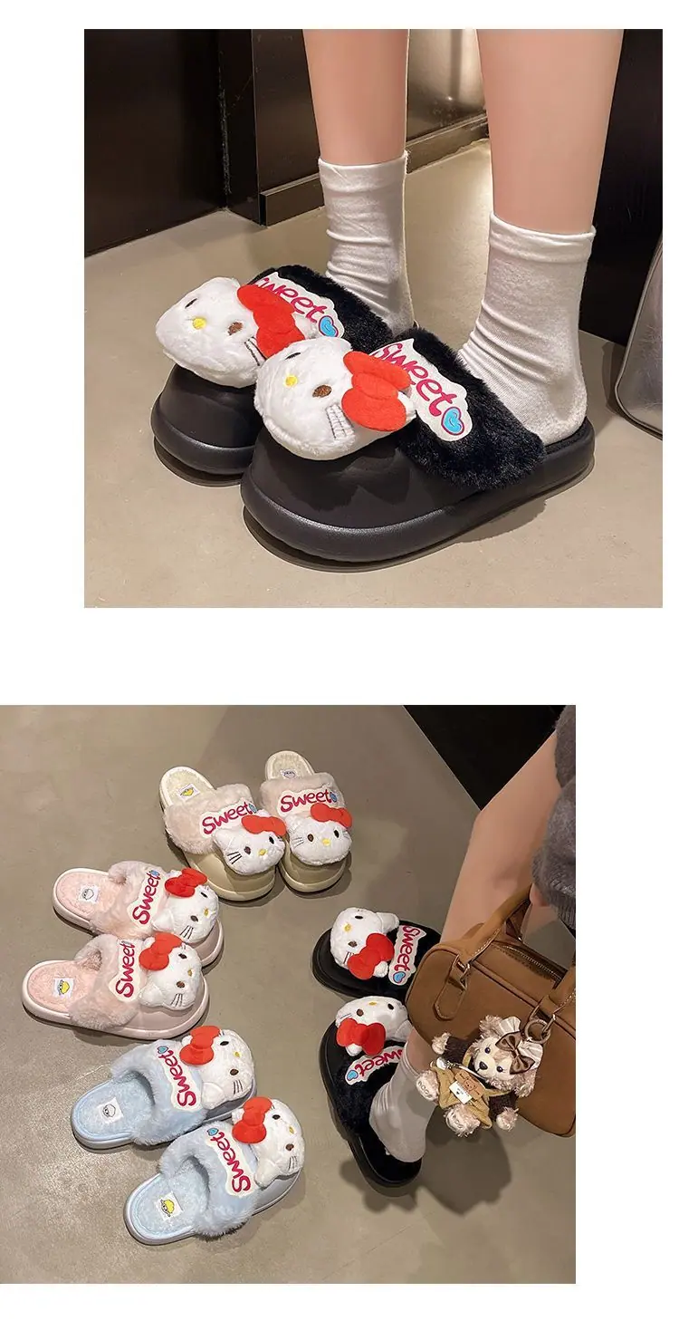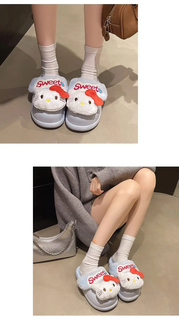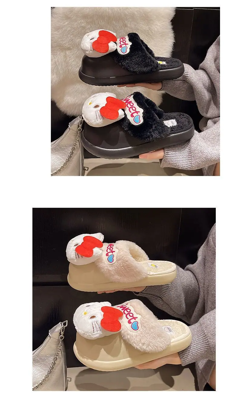 Pantuflas de Moda de Suela Gruesa y Punta Cerrada para Mujer 2025 Otoño/Invierno Nuevo Dibujo Animado Lindo Gatito Pantuflas Versátiles de Punta Cerrada