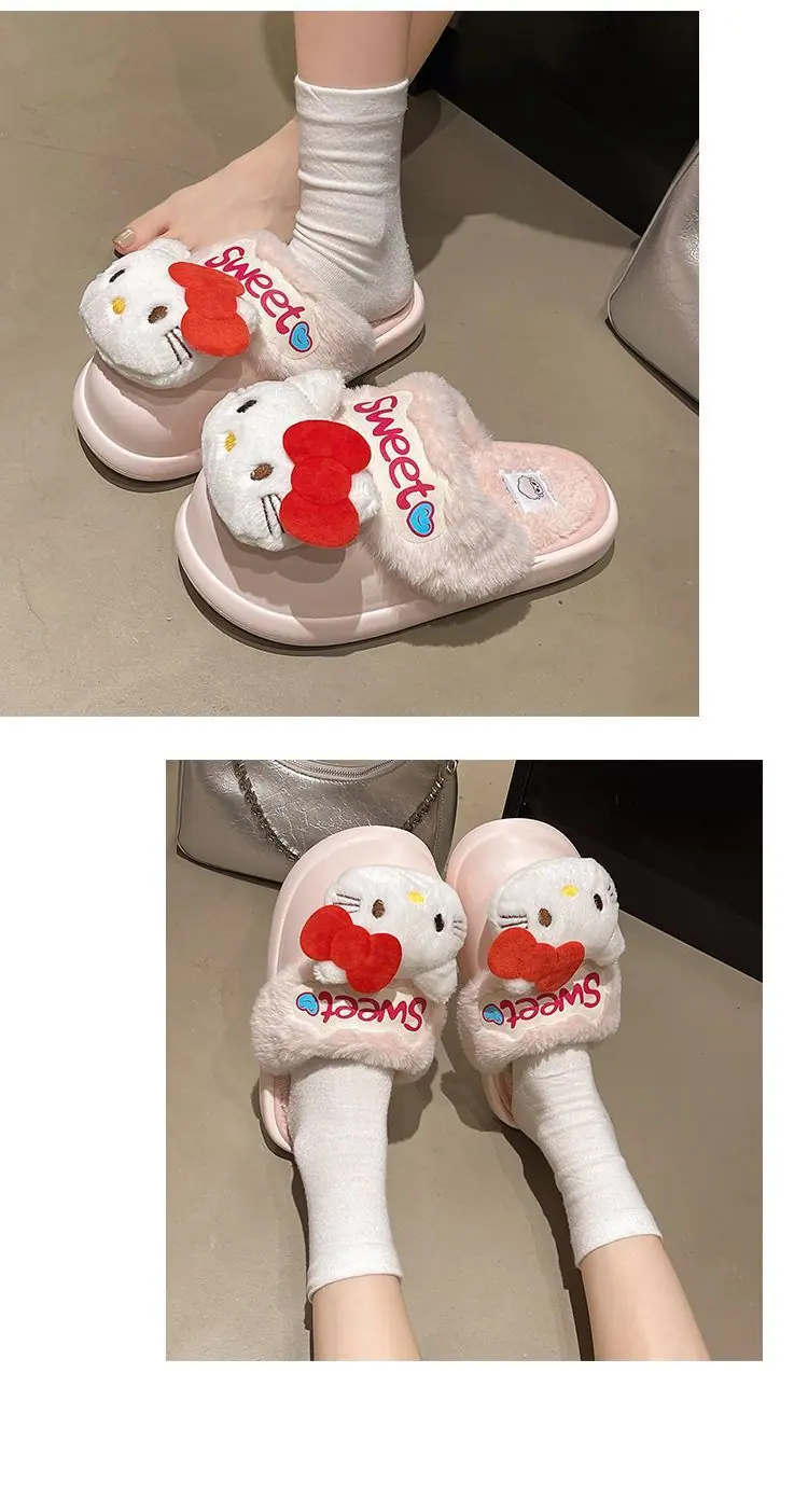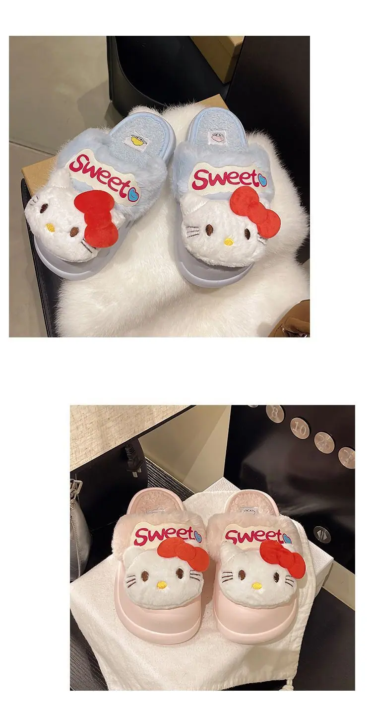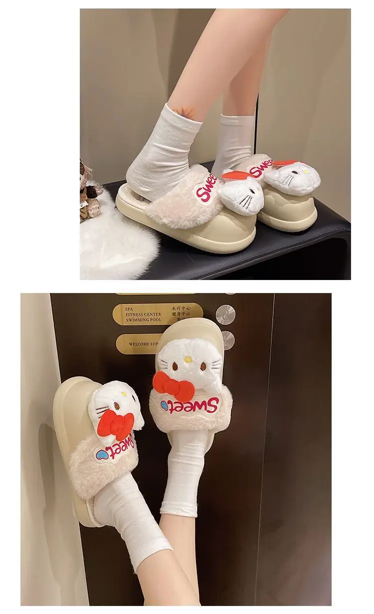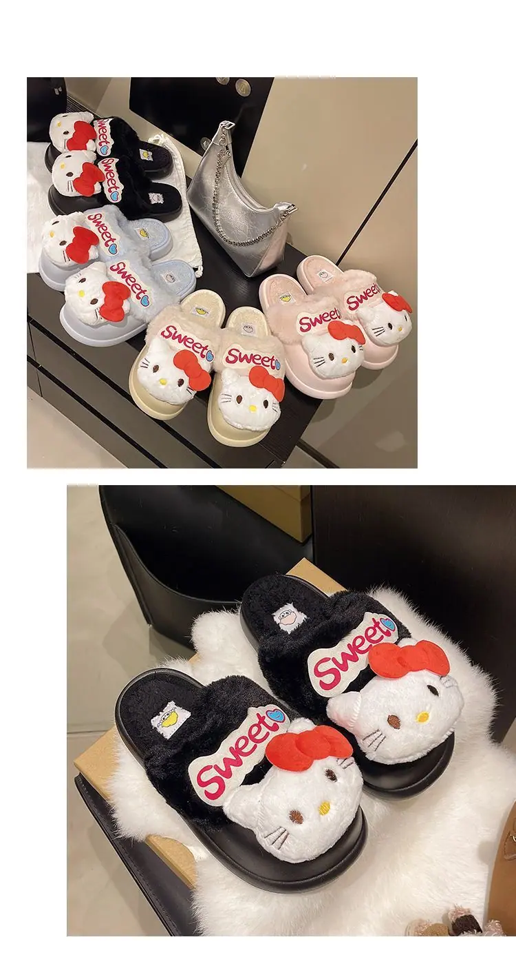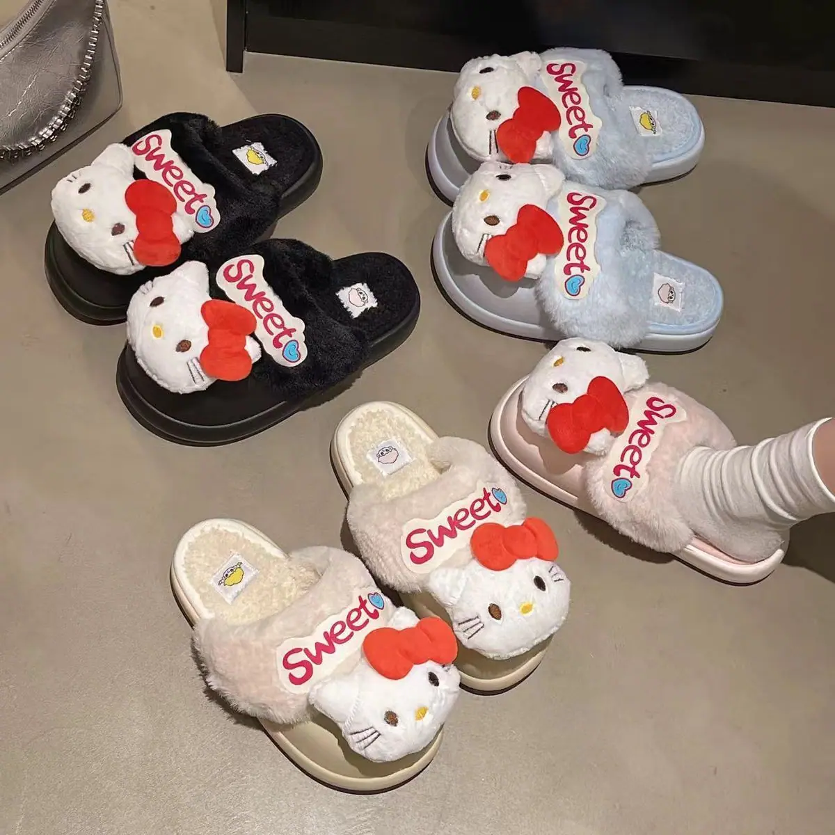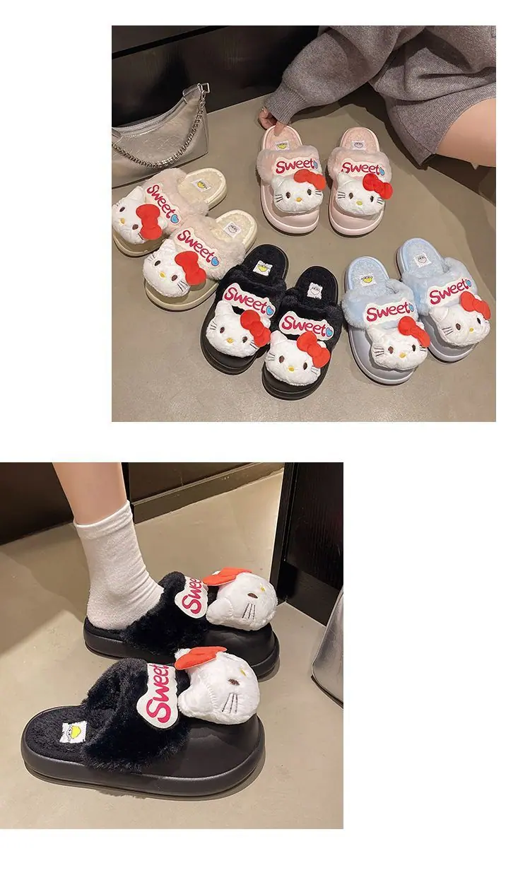 Pantuflas de Moda de Suela Gruesa y Punta Cerrada para Mujer 2025 Otoño/Invierno Nuevo Dibujo Animado Lindo Gatito Pantuflas Versátiles de Punta Cerrada