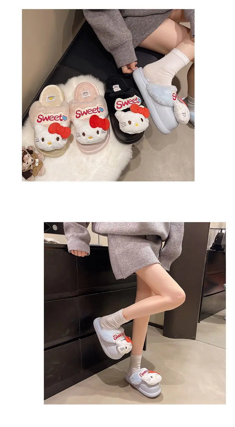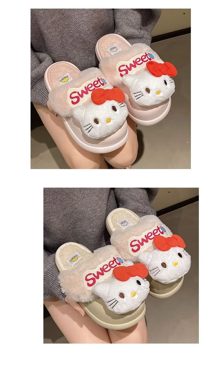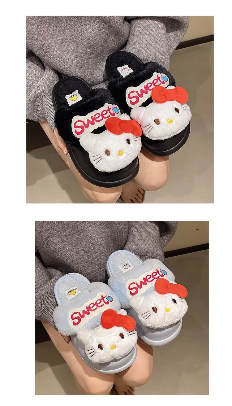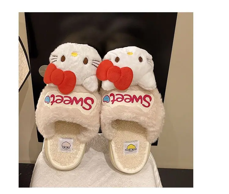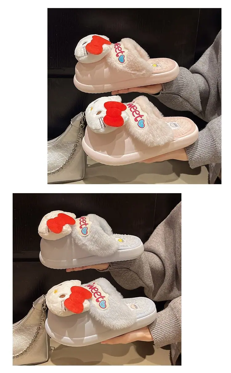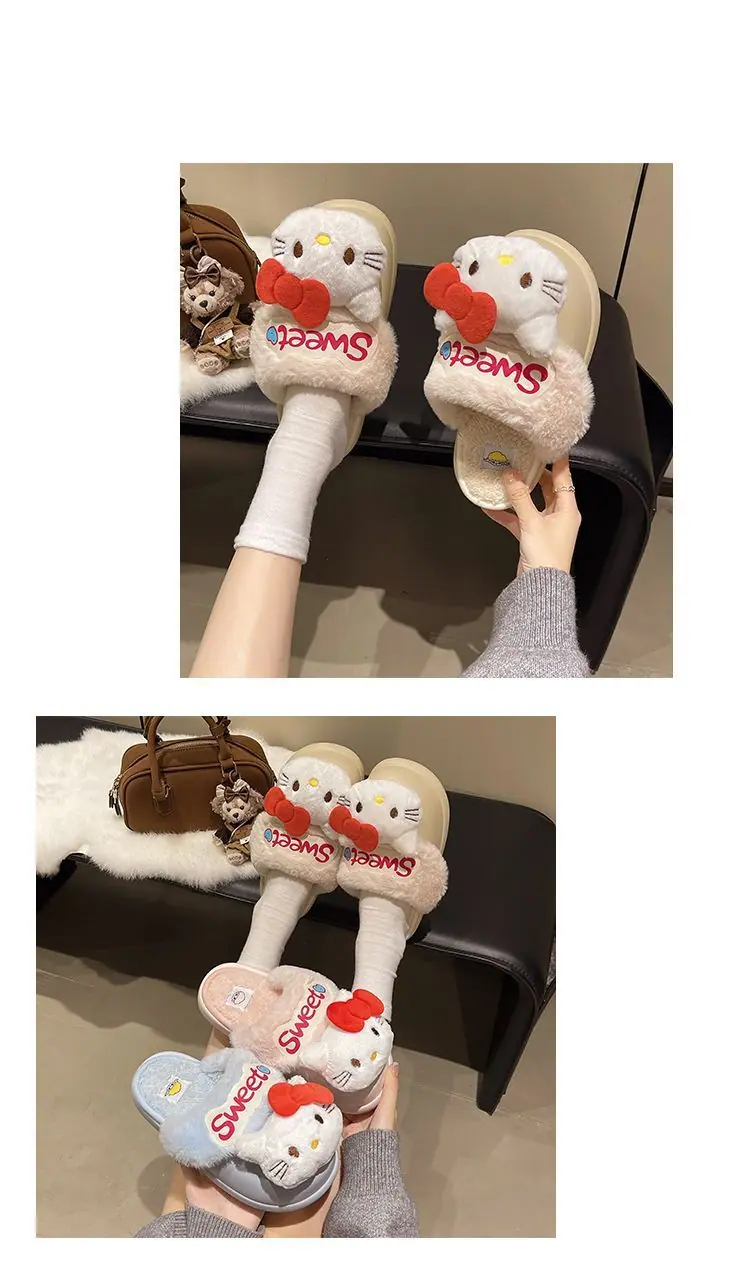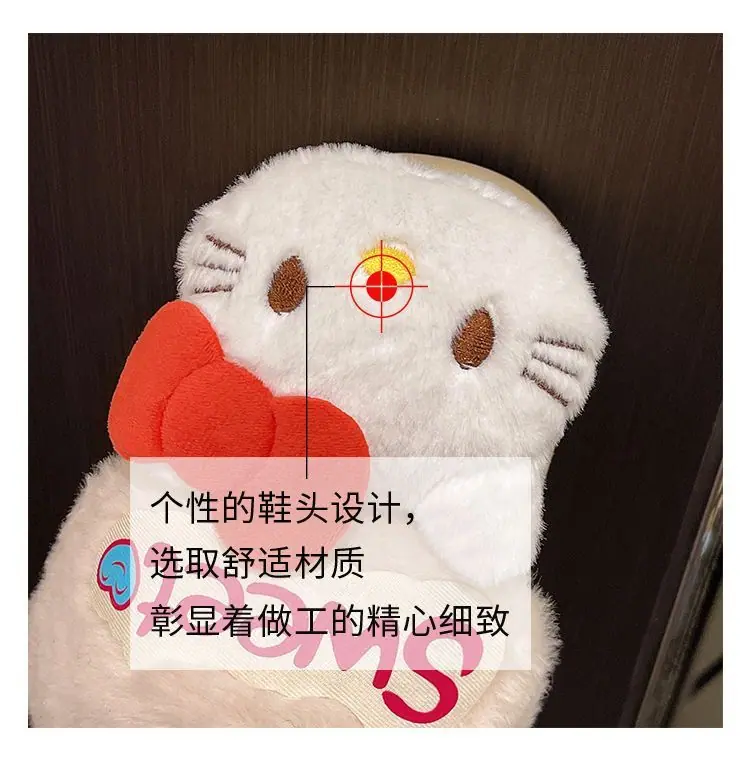 Pantuflas de Moda de Suela Gruesa y Punta Cerrada para Mujer 2025 Otoño/Invierno Nuevo Dibujo Animado Lindo Gatito Pantuflas Versátiles de Punta Cerrada