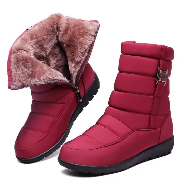 Botas Cálidas de Invierno para Mamá Botas de Nieve Impermeables con Forro Polar Grueso para Mujeres de Mediana Edad y Adultas Mayores Suela Plana Antideslizante Nuevas Botas de Algodón