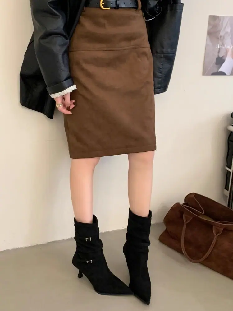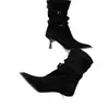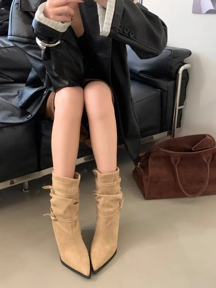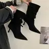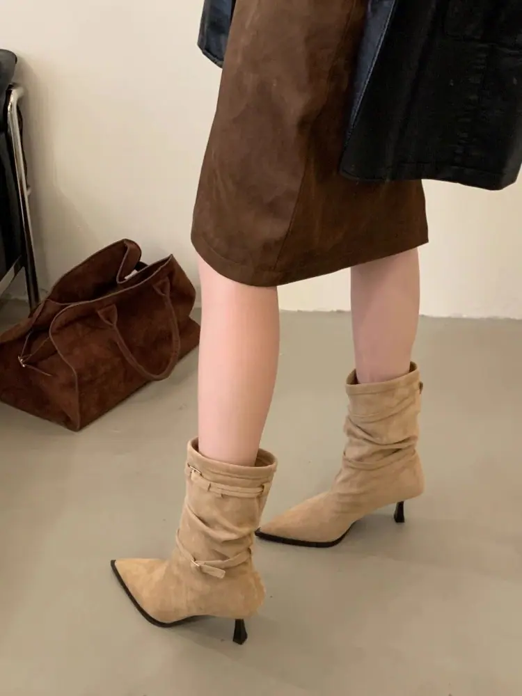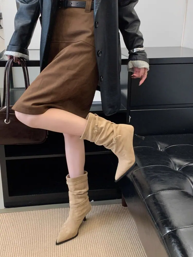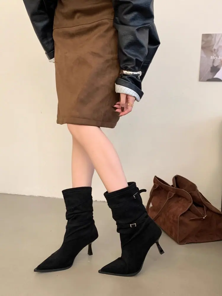 Botines de Tobillo de Nuevo Estilo Otoño/Invierno 2025 para Mujer, Botas Versátiles de Tacón de Aguja, Gamuza, Tacón Alto Francés, Punta Afilada, Botas de Moda