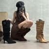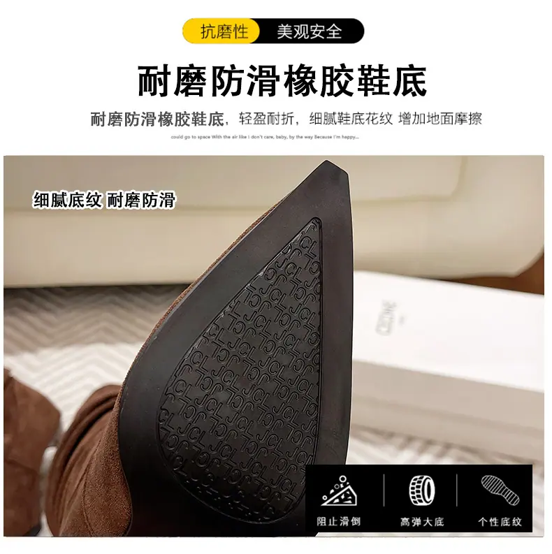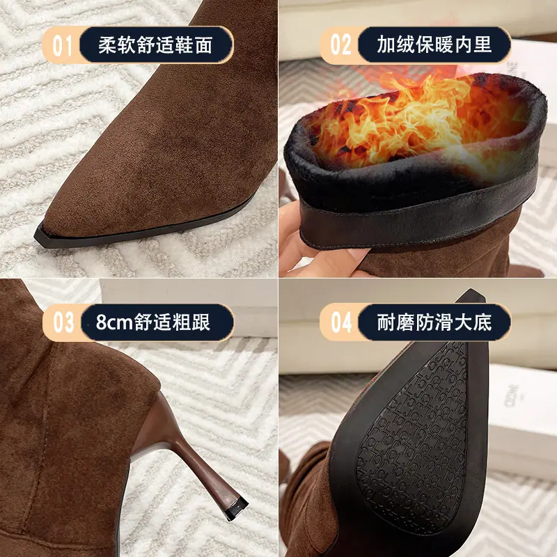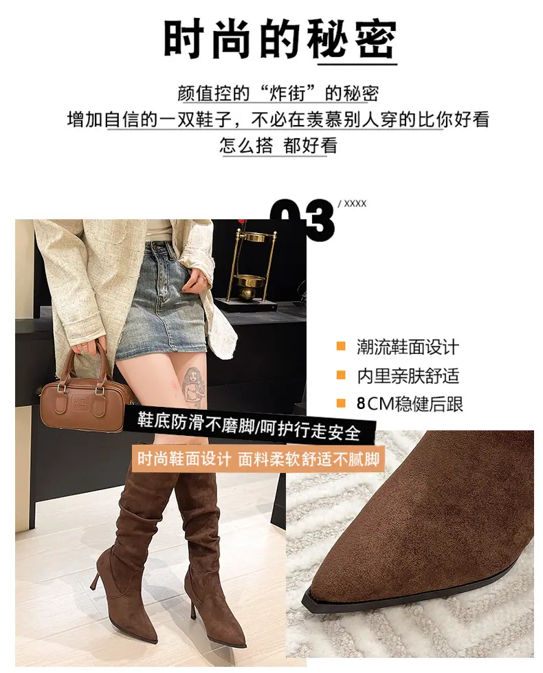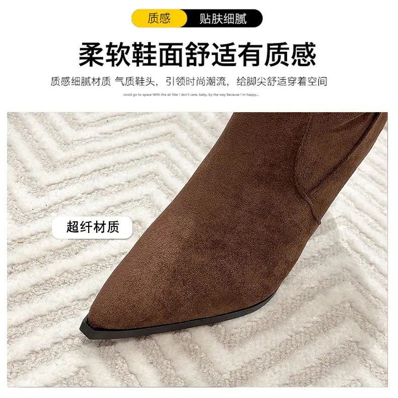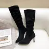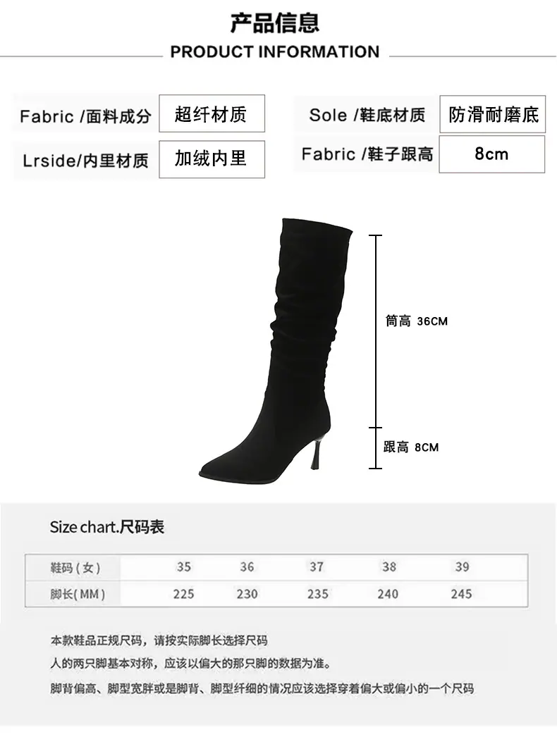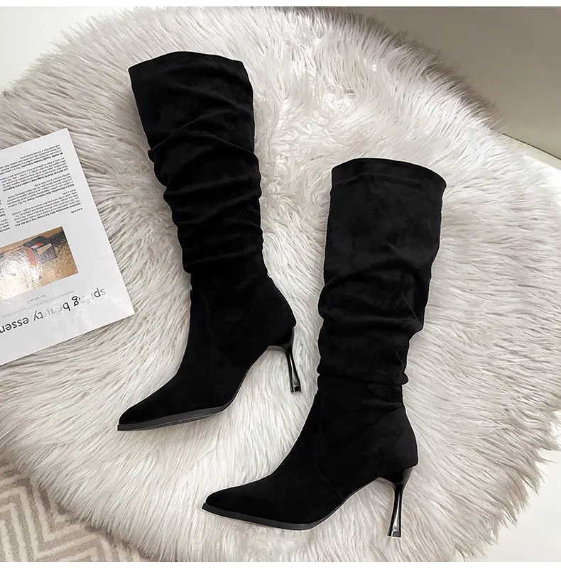 Botas slouch francesas por encima de la rodilla punta afilada tacón de aguja botas largas mujer 2025 invierno nuevo gamuza caña ancha tacón alto botas largas