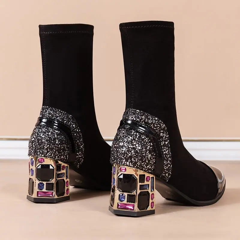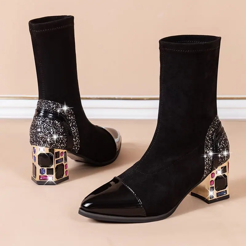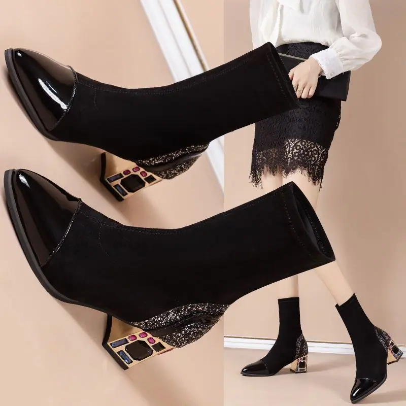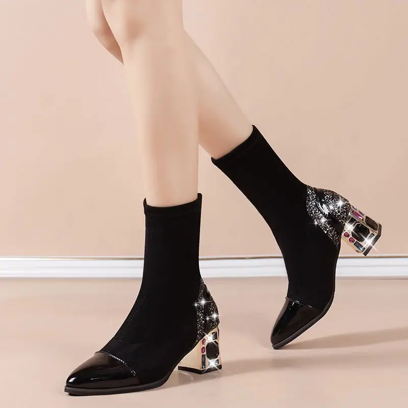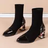 Botines de tacón grueso zapatos de moda mujer 2025 otoño e invierno nuevas botas casuales de mujer zapatos de mujer punta puntiaguda slip-on botas de media caña de mujer