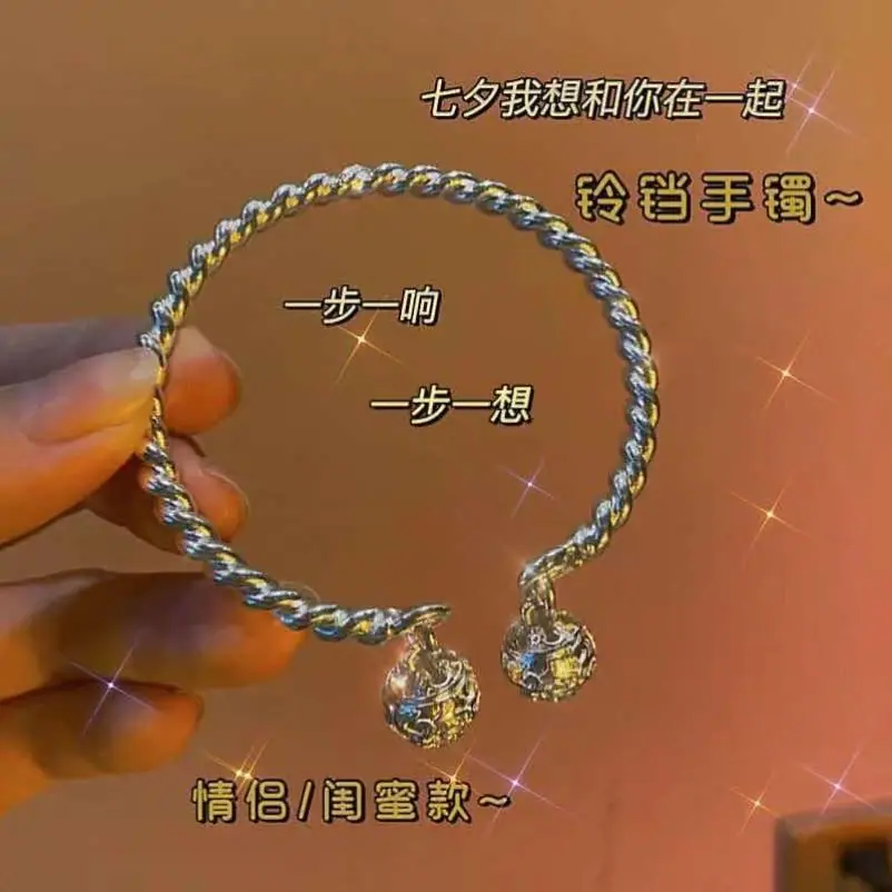Compra Pulsera de Campana de un Paso para Mujer Antigua Combinable Novia Pareja Par de Tono de Sacudida Combinable Pulsera Ajustable al por mayor en Joom.pro