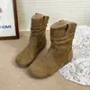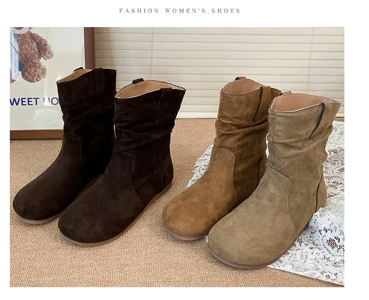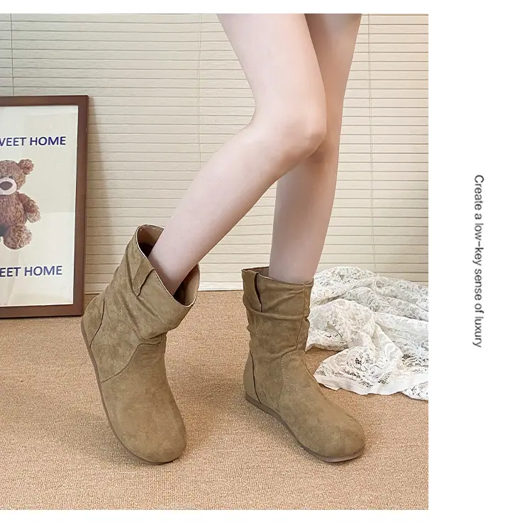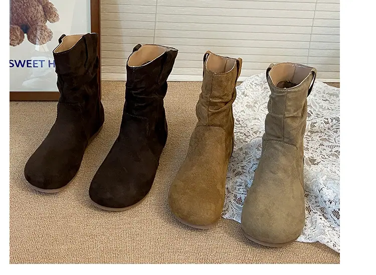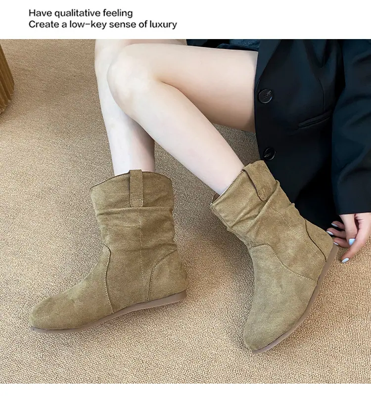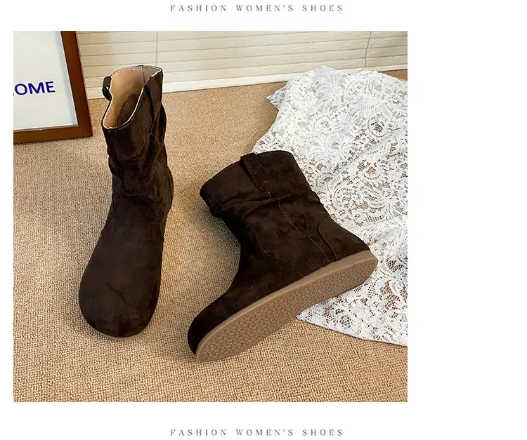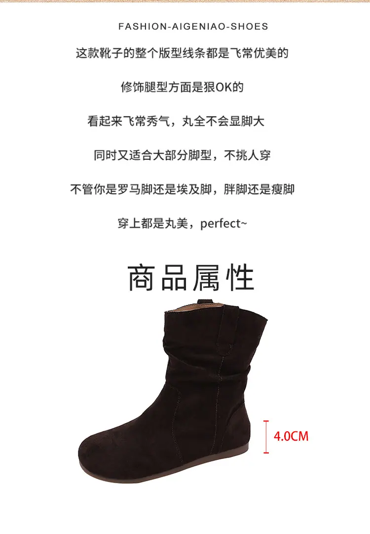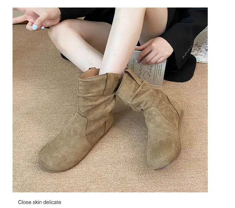 Botines cortos de estilo retro europeo y americano para mujer 2025 nuevo otoño e invierno sin cordones punta redonda botas slouch adelgazantes botines cortos hasta el tobillo botas western