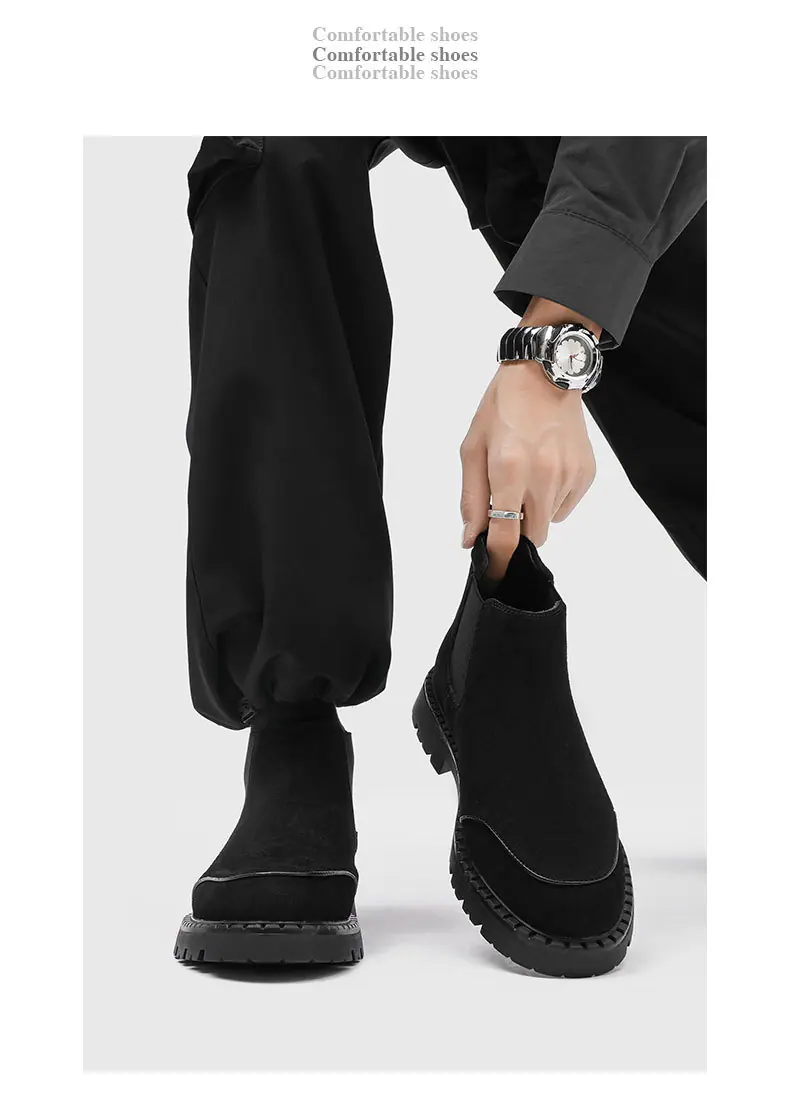 Botas Chelsea Zapatos de Caña Alta para Hombre Estilo Británico Botas Martin Vintage Zapatos de Hombre Invierno Botas Desert de Caña Media Versátiles Botines