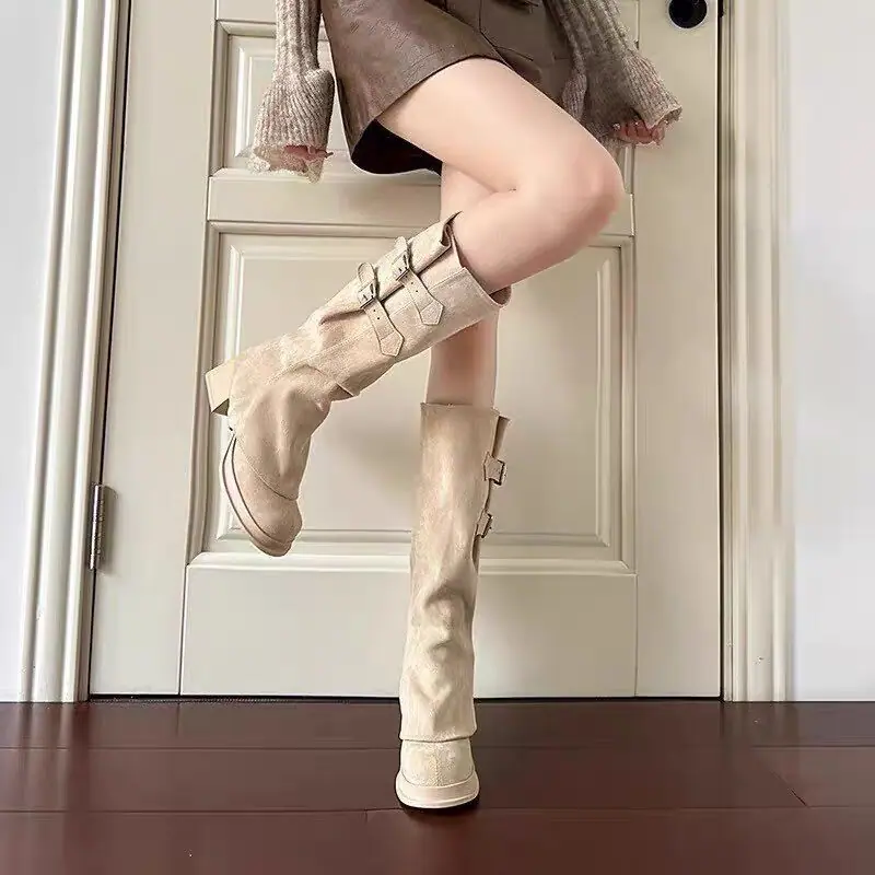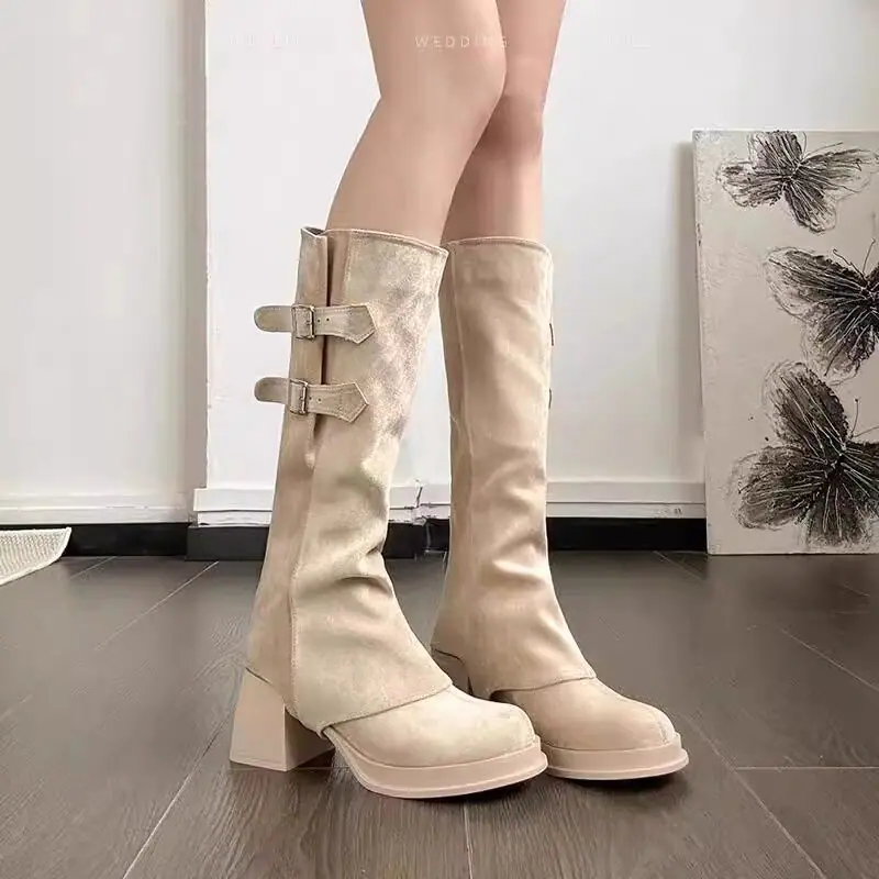 Botas Pantalón Desnudas de Tacón Alto 2025 Nuevo Botín Alto Desmontable Dos Usos Doble Botonadura Slim