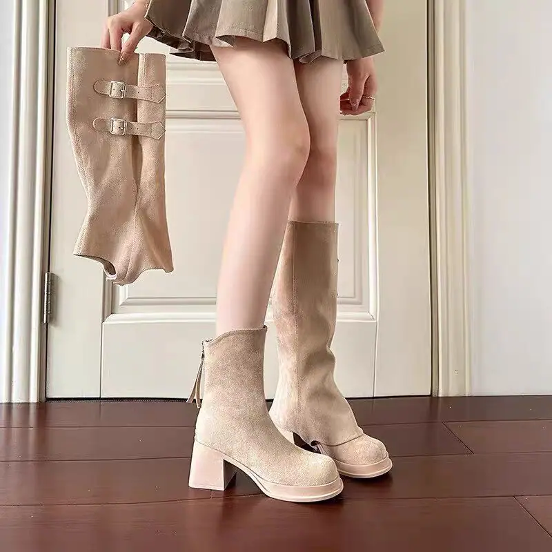Compra Botas Pantalón Desnudas de Tacón Alto 2025 Nuevo Botín Alto Desmontable Dos Usos Doble Botonadura Slim al por mayor en Joom.pro