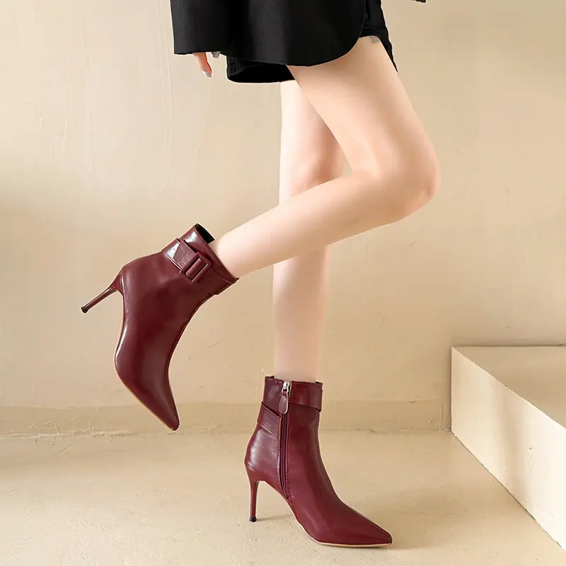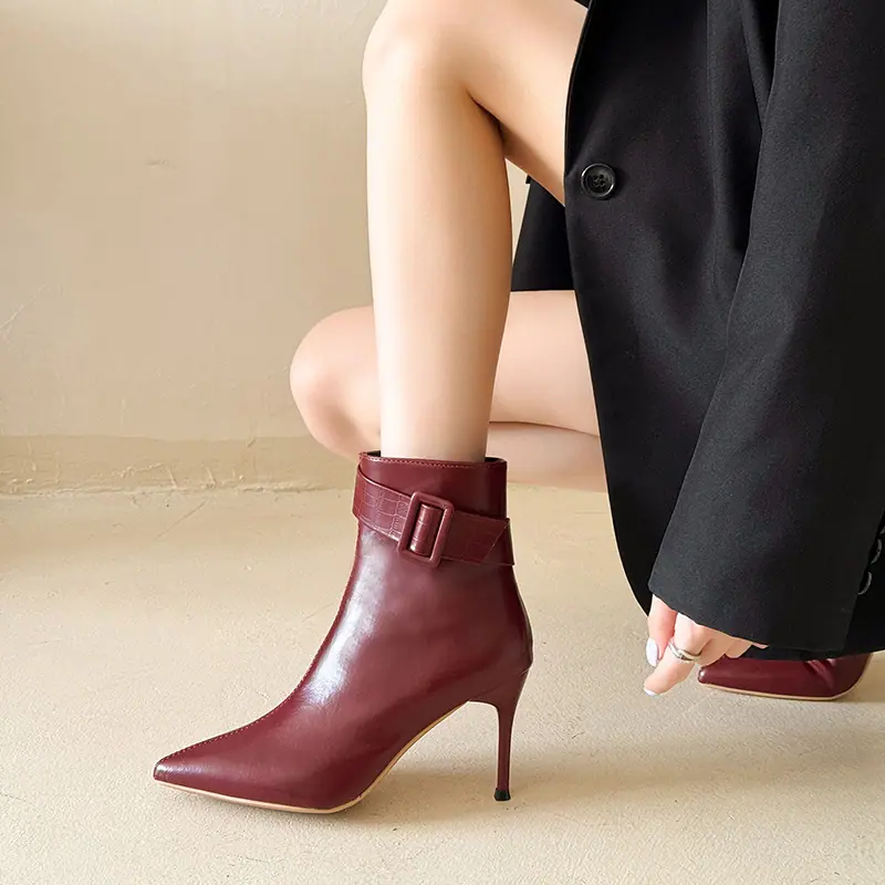 Compra 2025 Nuevas Botas de Moda de Invierno de Piel de Punta con Hebilla de Cinturón Tacón de Aguja Cierre Lateral Botines Cortos de Talla Grande Europeos y Americanos para Mujer al por mayor en Joom.pro