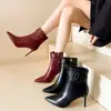 2025 Nuevas Botas de Moda de Invierno de Piel de Punta con Hebilla de Cinturón Tacón de Aguja Cierre Lateral Botines Cortos de Talla Grande Europeos y Americanos para Mujer