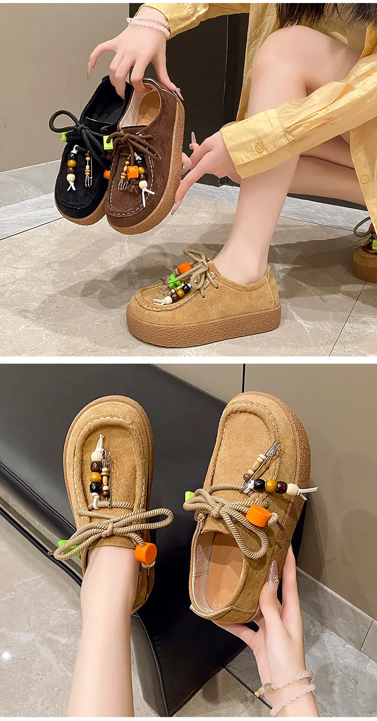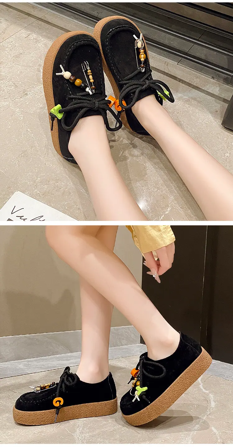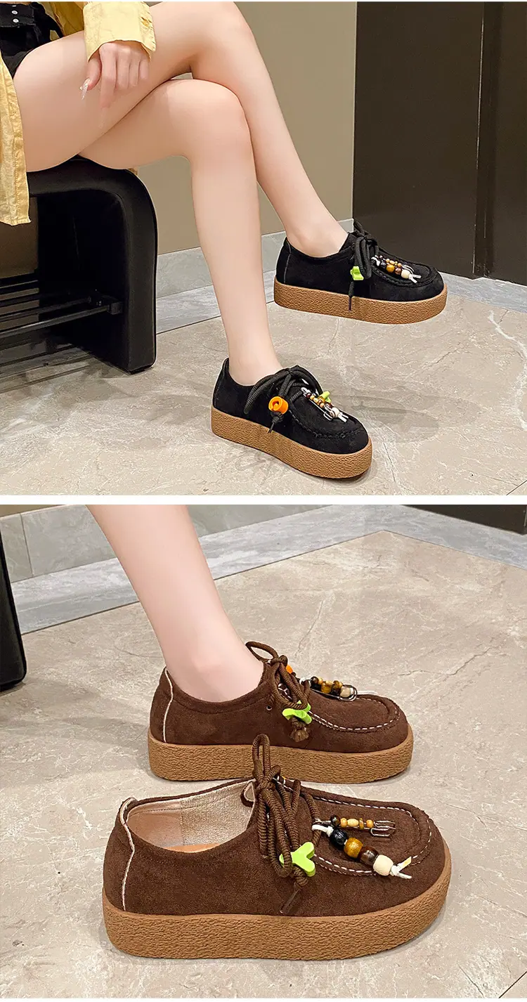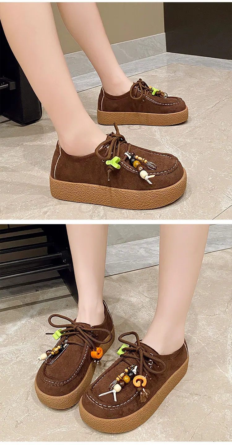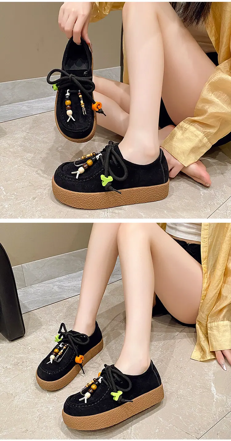 Zapatos de Plataforma para Mujer 2025 Primavera y Otoño Estilo Retro Mocasines Zapatos Individuales Tenis Casuales para Mujer Birkenstocks Versátiles al por Mayor