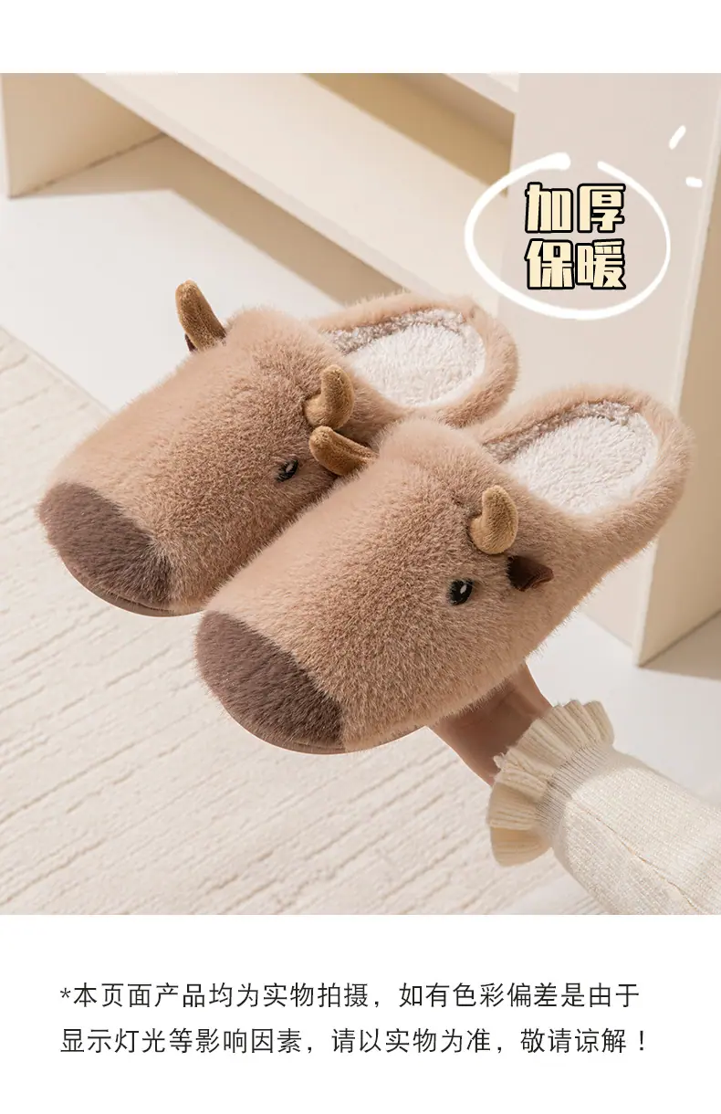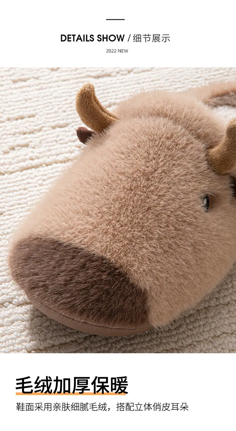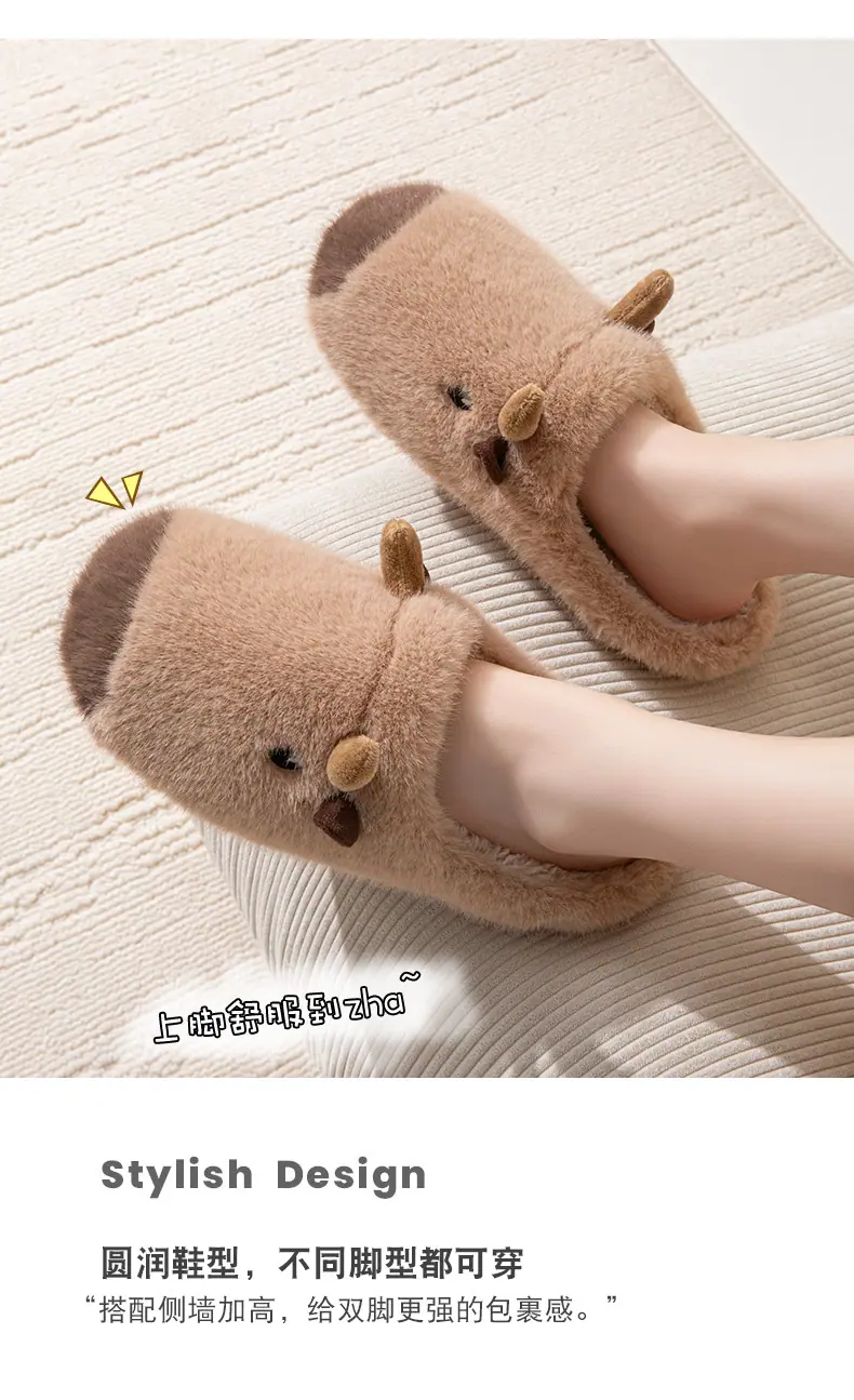 Pantuflas de Algodón de Dibujos Animados de Carpincho para Mujer Invierno Interior Hogar Cálidas Antideslizantes Lindas de Felpa para Pareja Pantuflas de Algodón Invierno Hombre