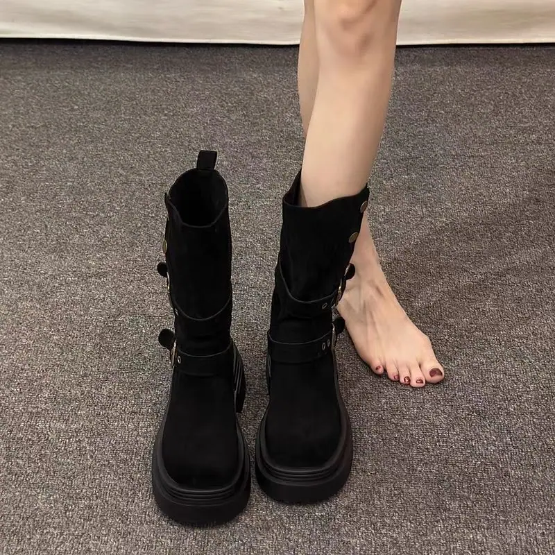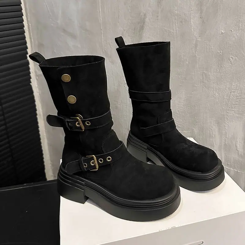 Botas Martin planas de estilo retro moderno y versátil 2025 otoño e invierno nuevas botas cómodas y delgadas botas de media caña para mujer