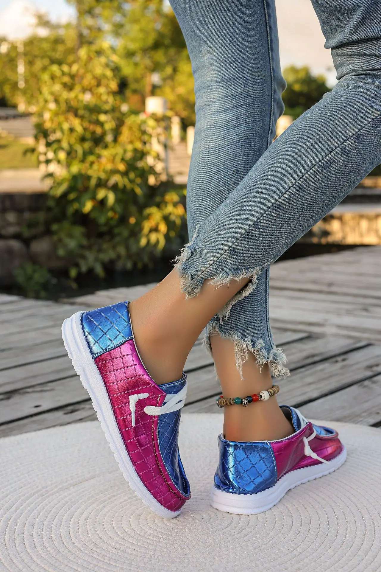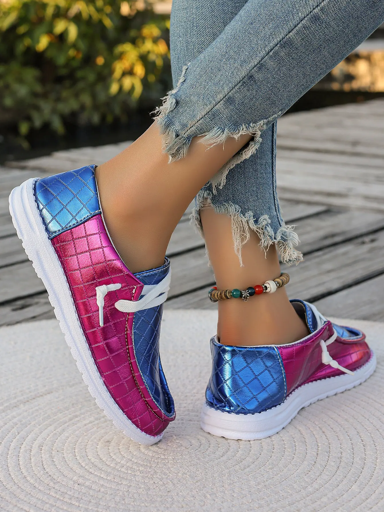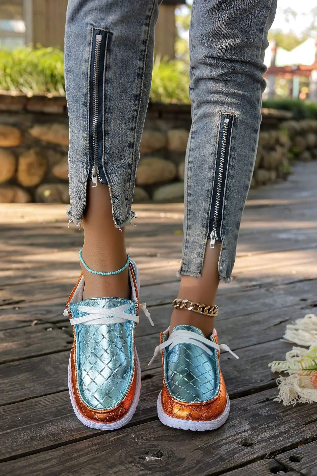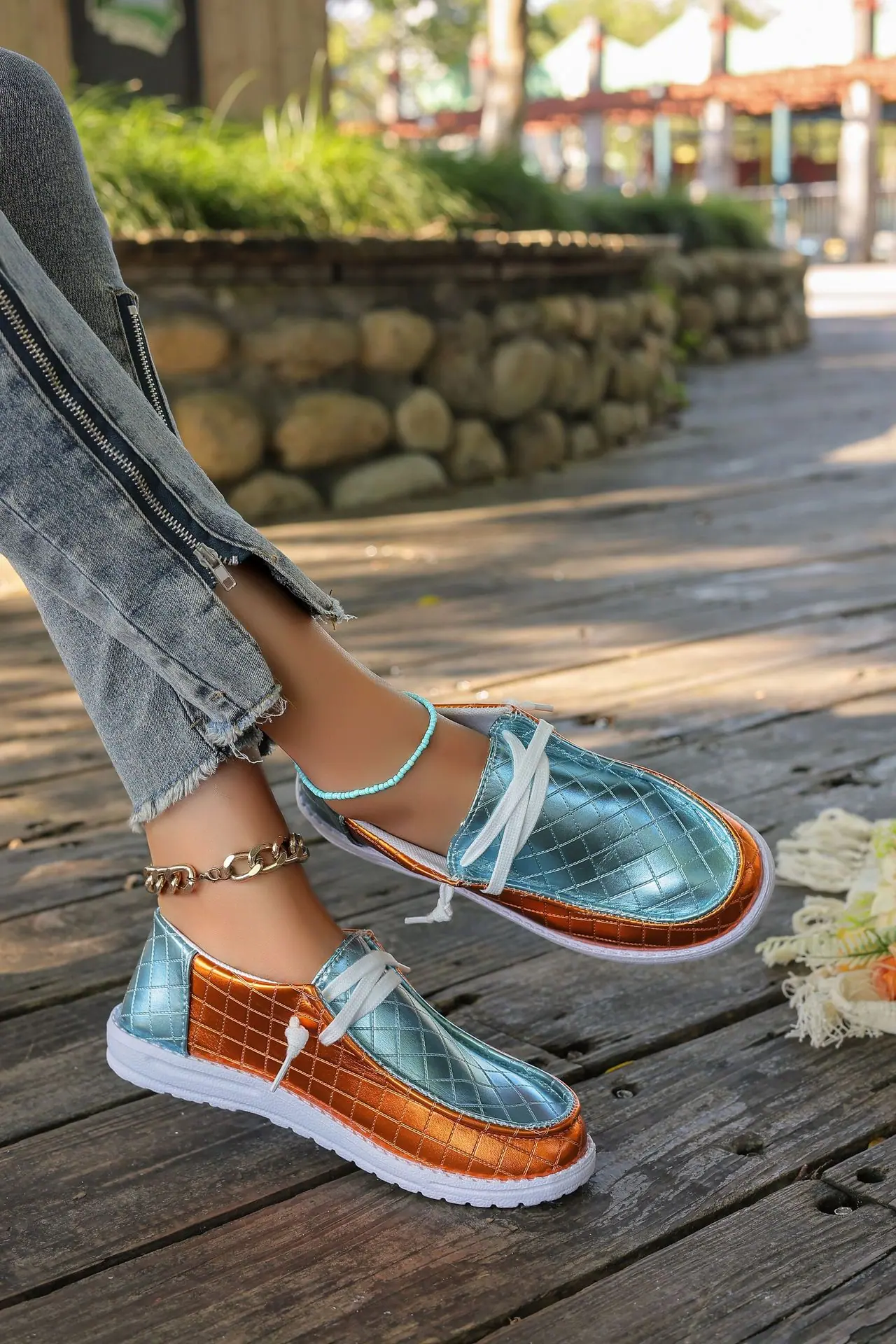 Otoño 2025 Nuevo Punta Redonda Plano Casual Versátil Ligero Cómodo Ocio Moda Bloque de Color Brillante Zapatos Individuales al Por Mayor