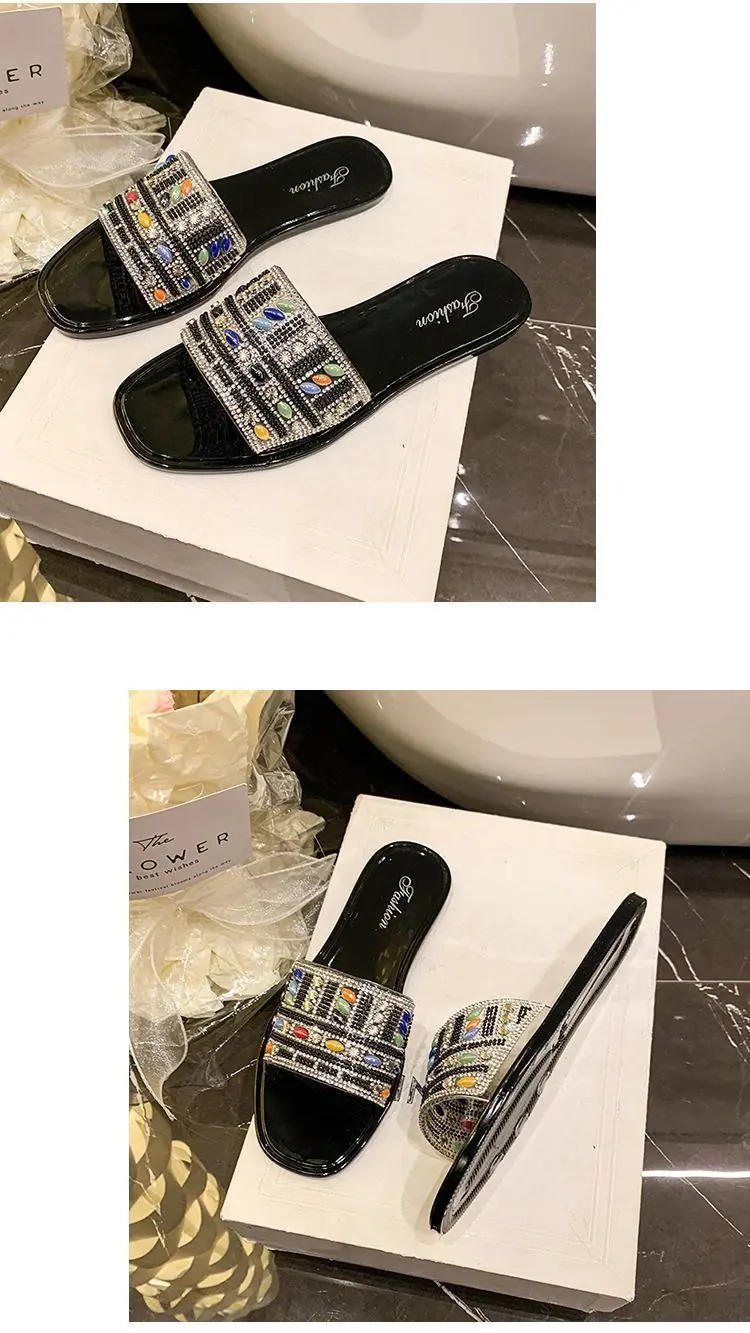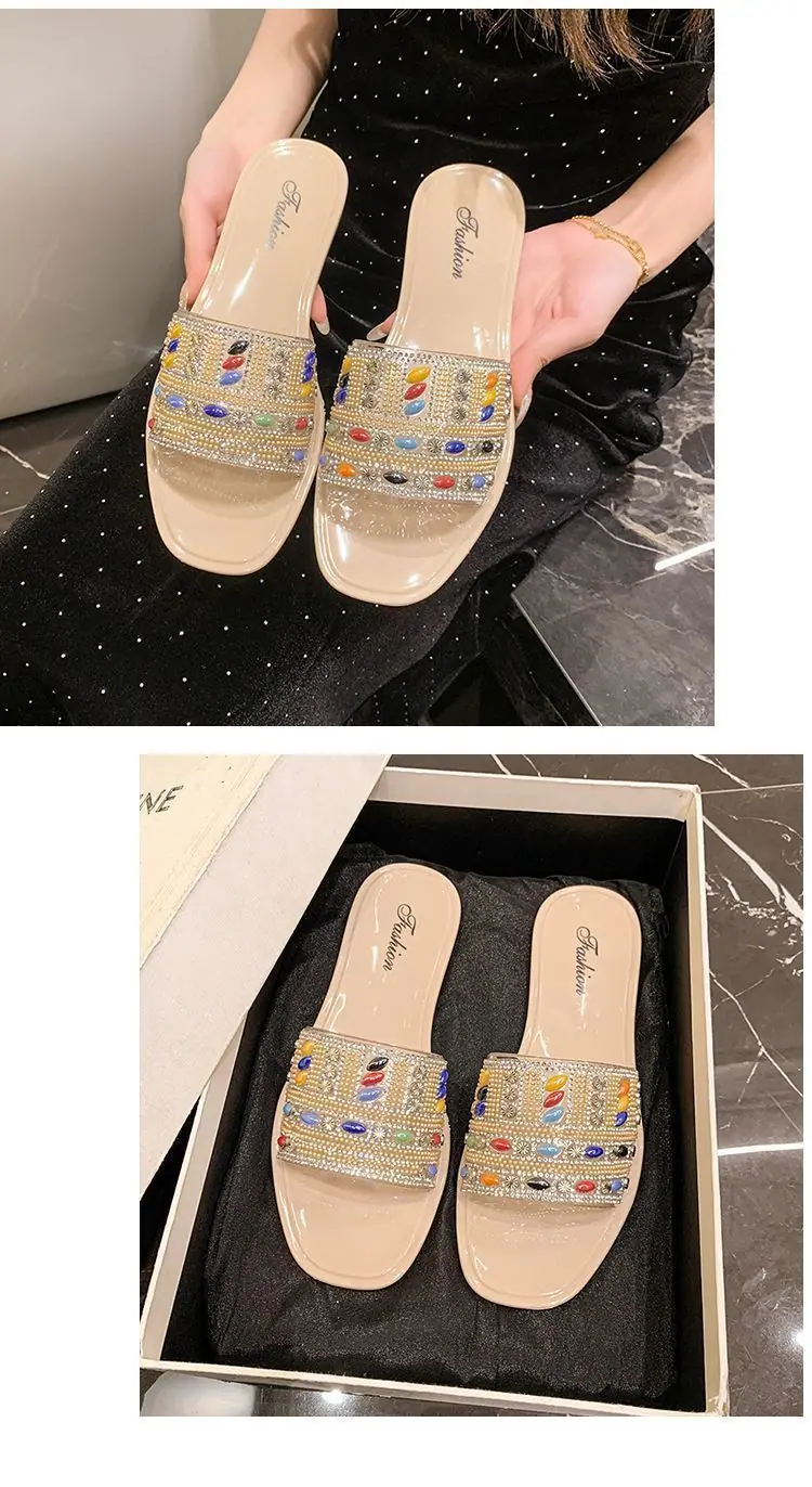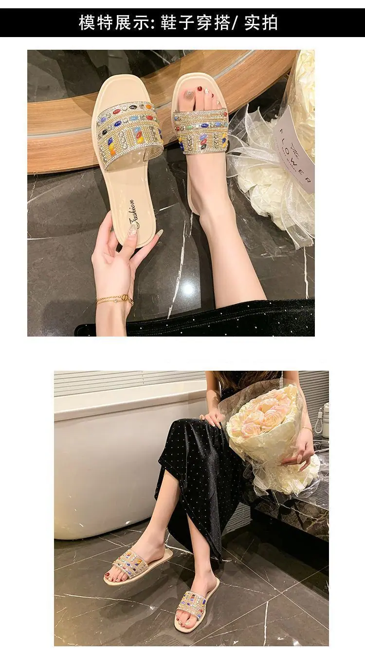 Compra 2025 Moda de celebridad de Internet chanclas planas verano nuevo para mujer versátil diseño nicho pedrería chanclas de una tira para mujer al por mayor en Joom.pro
