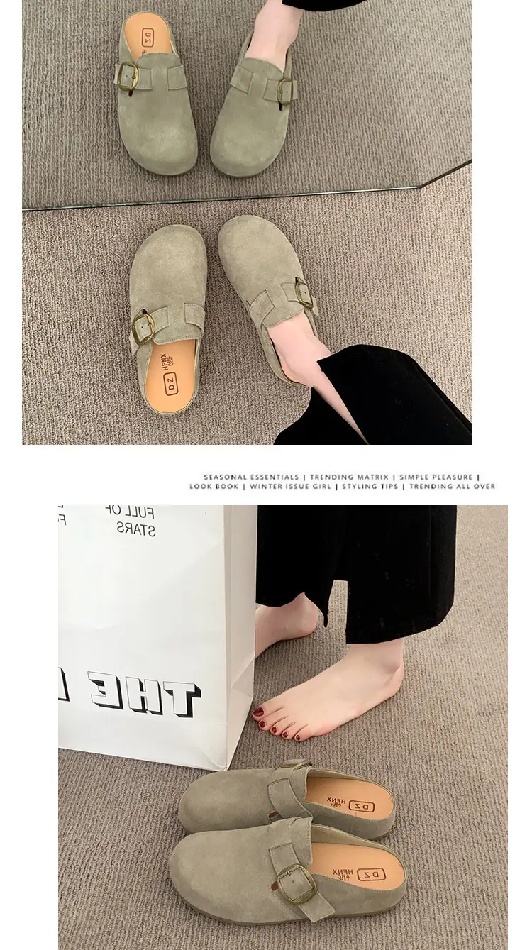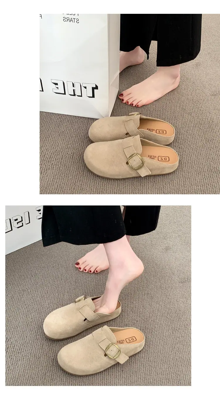 2025 Verano Nuevas Zapatillas Baotou Tejidas Playa Zapatillas de Dama Ropa de Exterior Planas Zapatos de Mujer