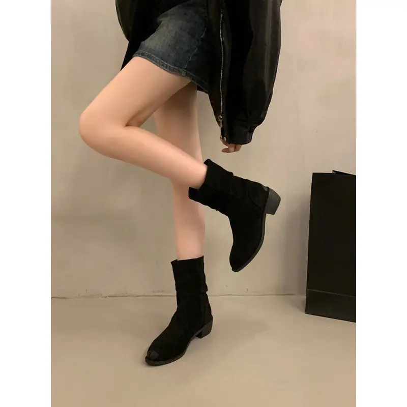 Compra Botas Vaqueras Retro Occidentales Botines Adelgazantes Arrugados Apilados Mujer 2025 Otoño Nuevo Punta Afilada Tacón Grueso Botines al por mayor en Joom.pro
