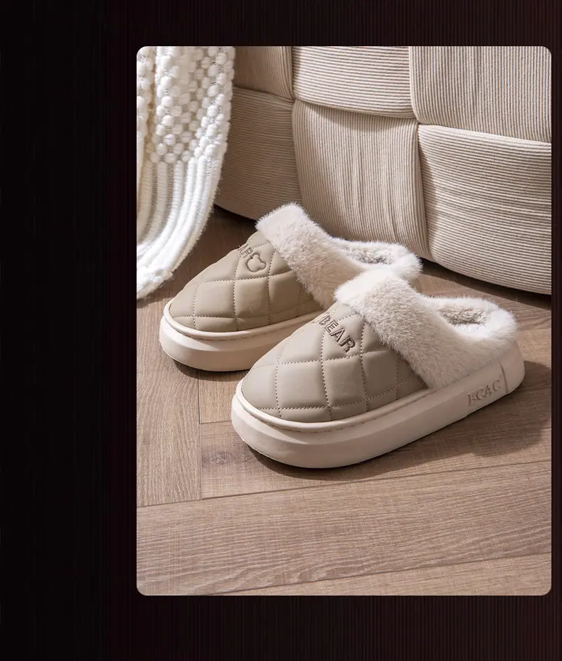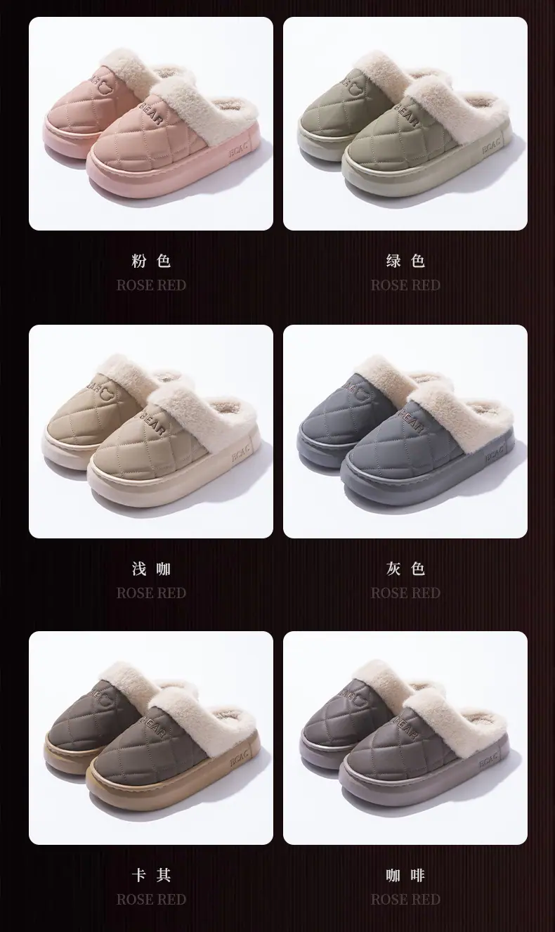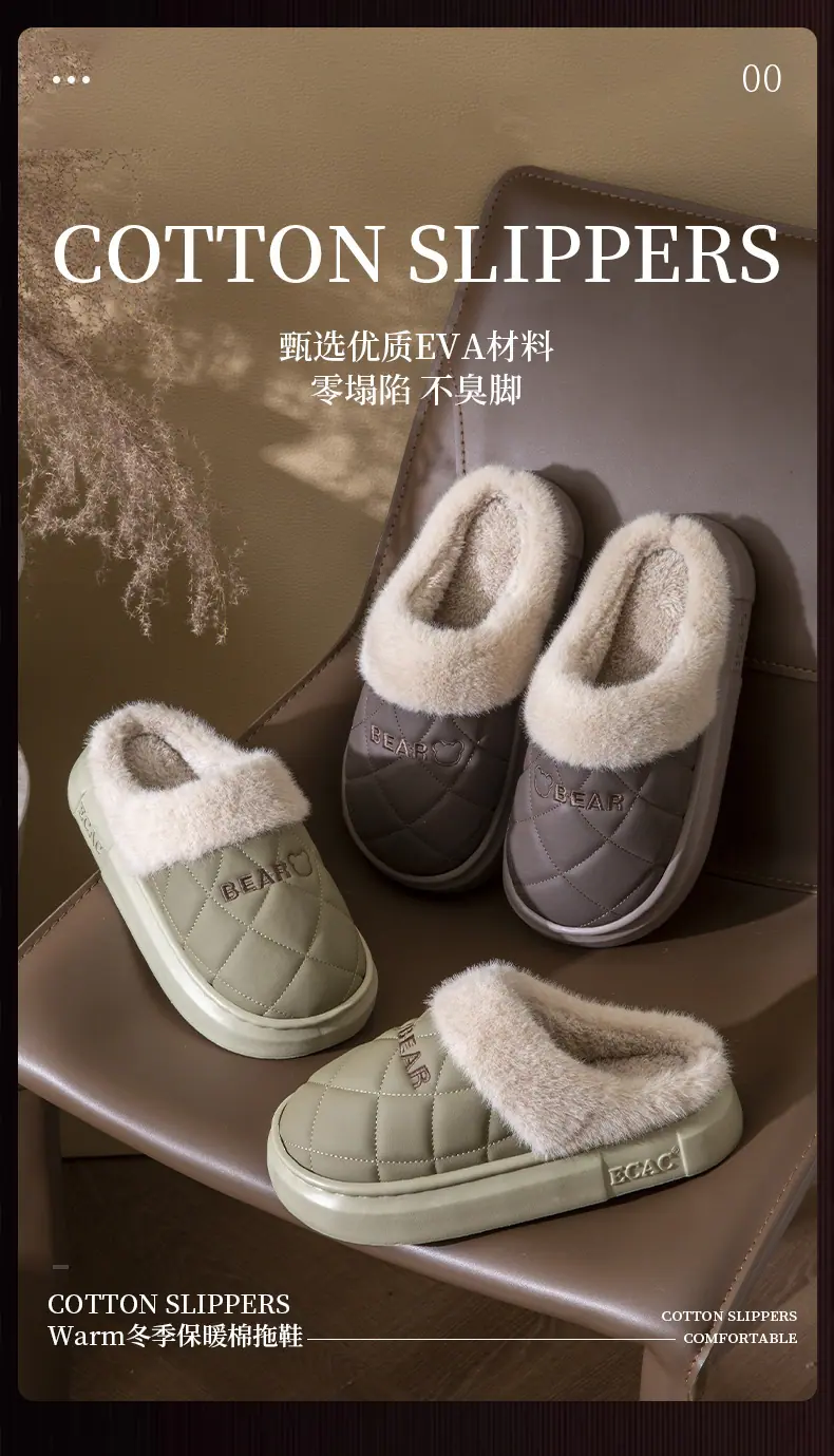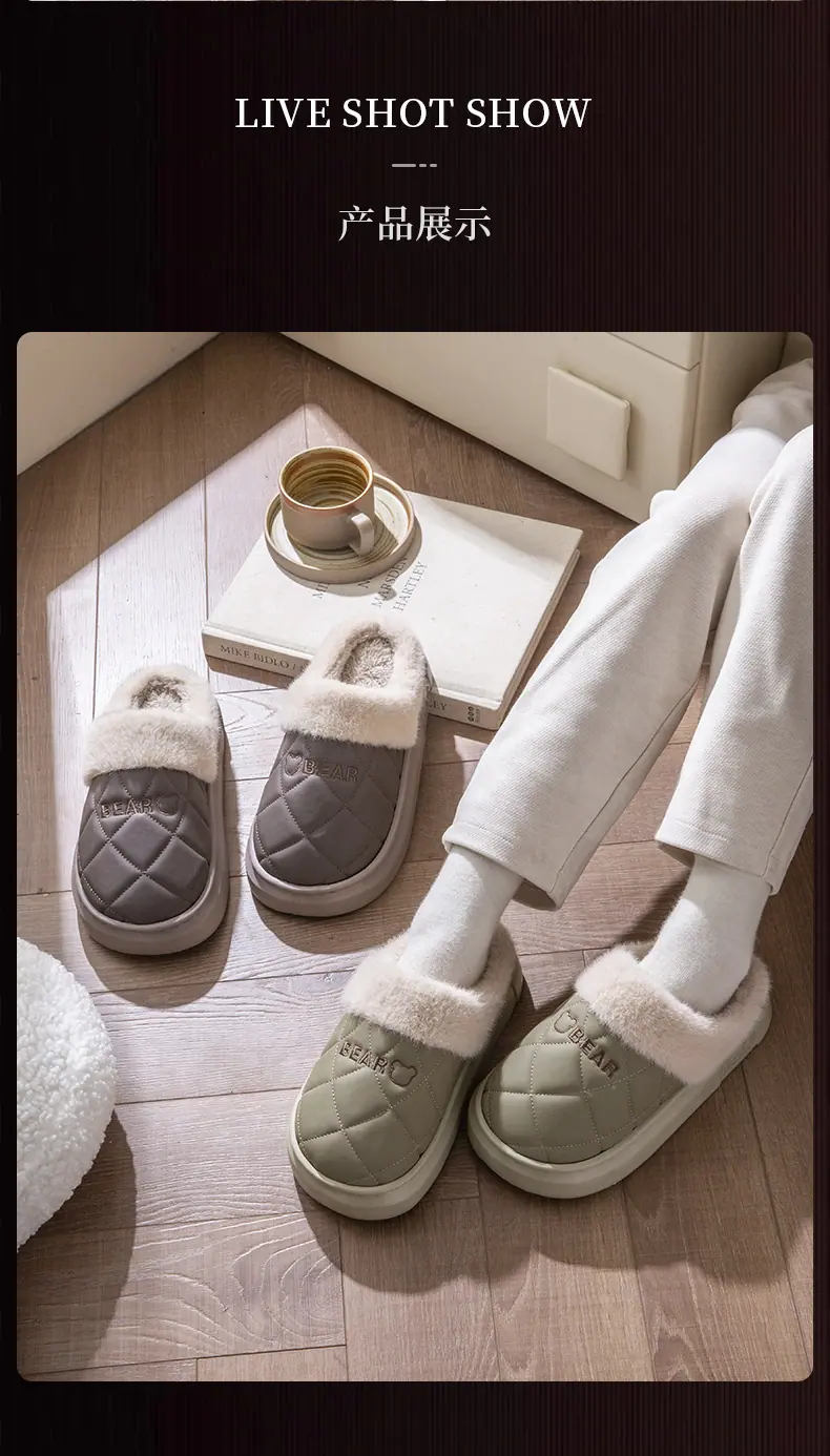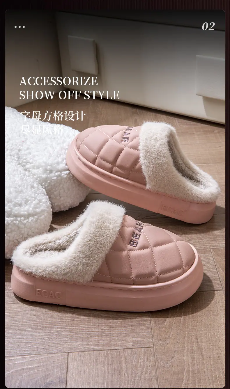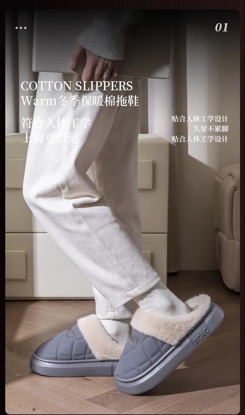 2025 Nuevas Pantuflas de Algodón Impermeables de PU para Mujer Pareja Uso Doméstico Felpa Cálidas Suela Gruesa Antideslizantes Pantuflas de Algodón para Hombre Otoño e Invierno