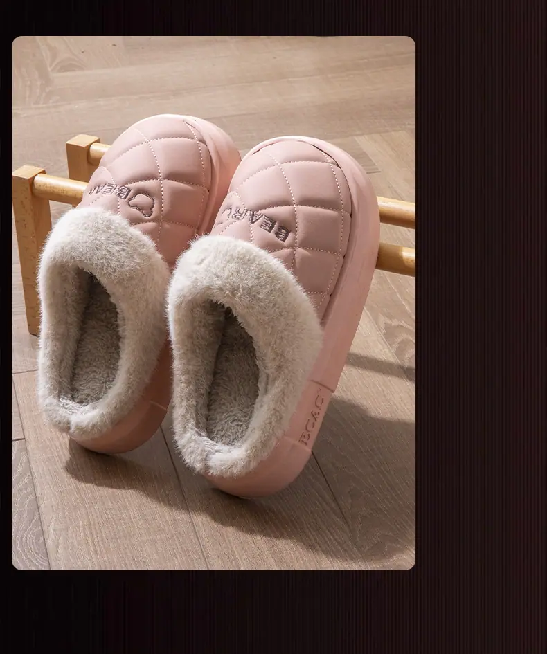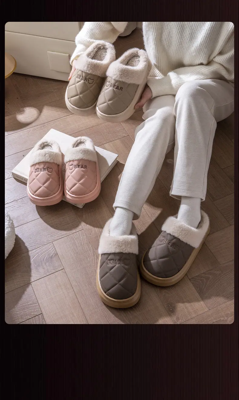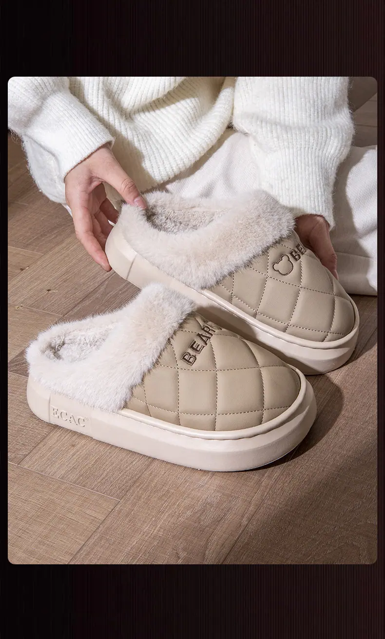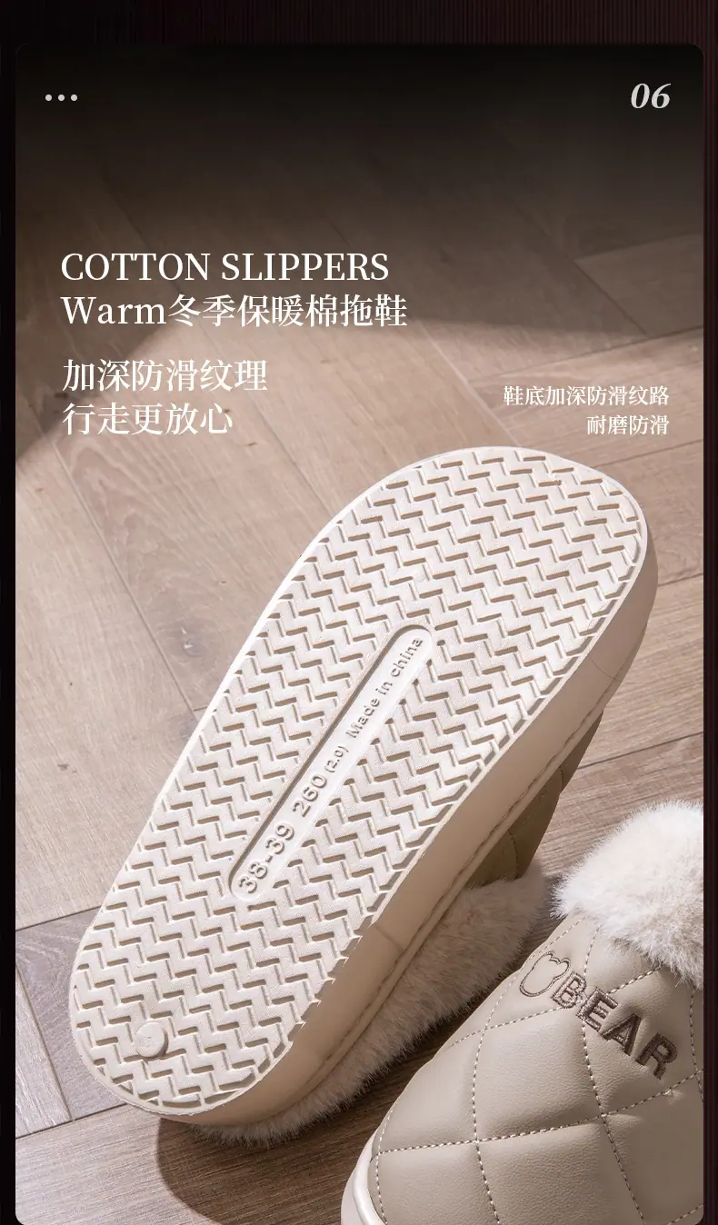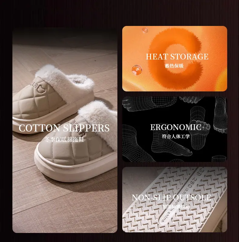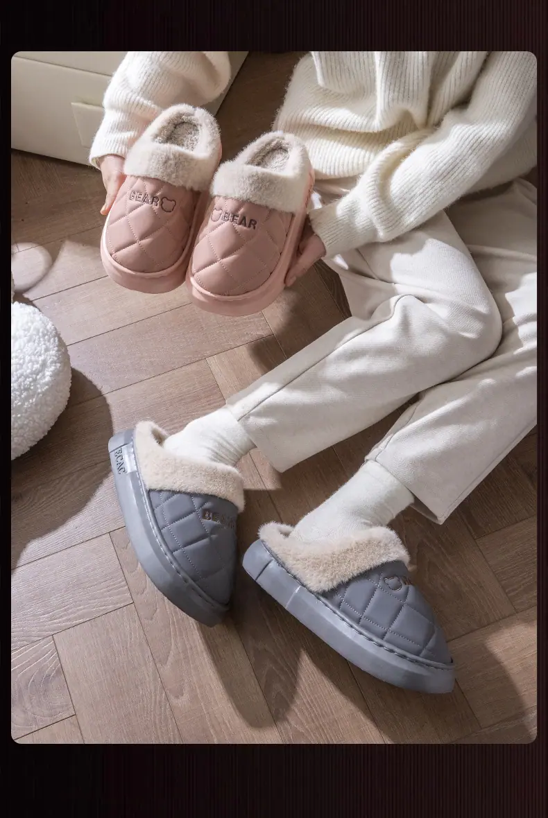 2025 Nuevas Pantuflas de Algodón Impermeables de PU para Mujer Pareja Uso Doméstico Felpa Cálidas Suela Gruesa Antideslizantes Pantuflas de Algodón para Hombre Otoño e Invierno