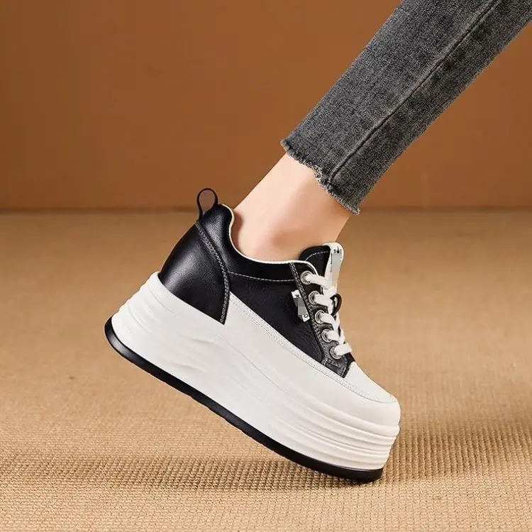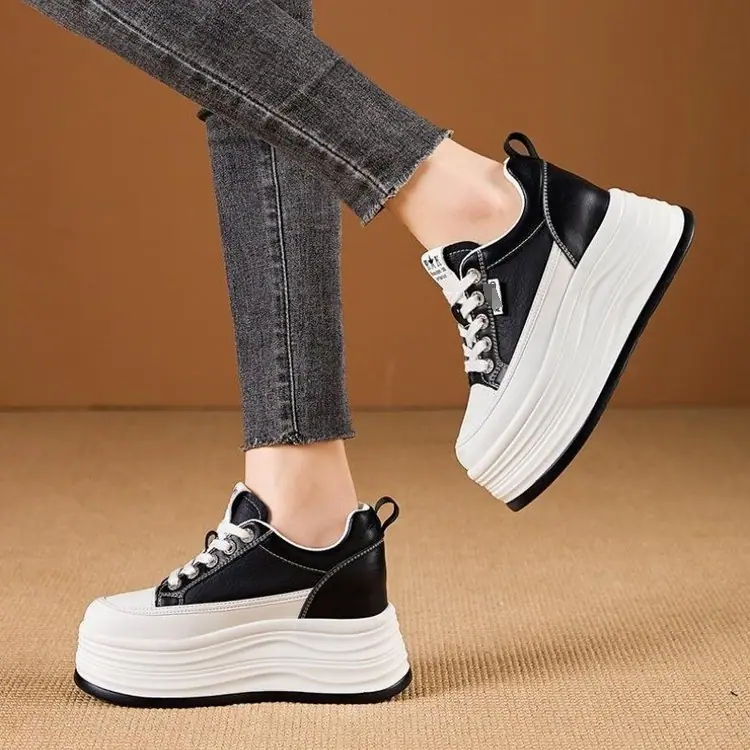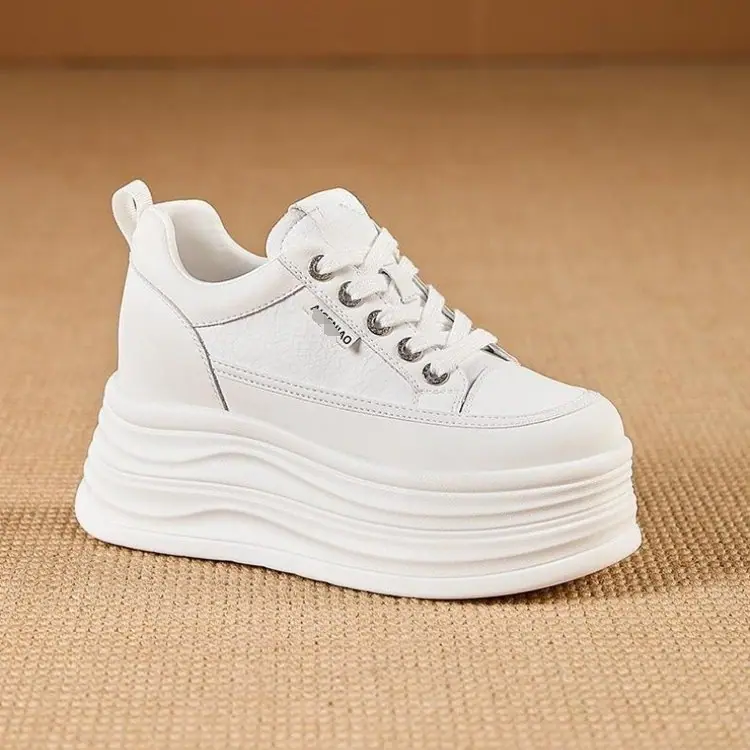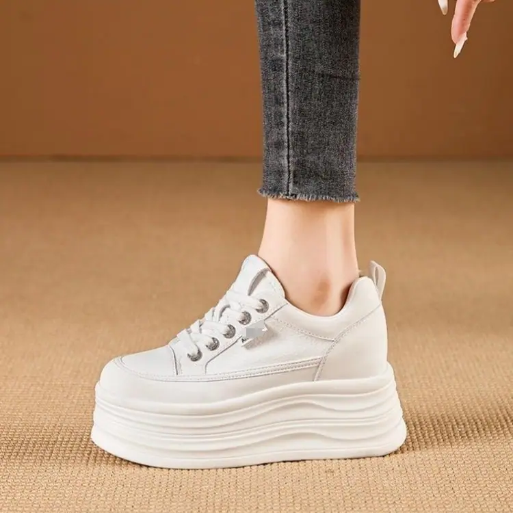 Zapatos Deportivos Casuales Transpirables de Venta Caliente 2025 Nuevos Otoño Plataforma Zapatillas de Suela Gruesa Aumento Interior Zapatos Blancos de Cuero Mujer