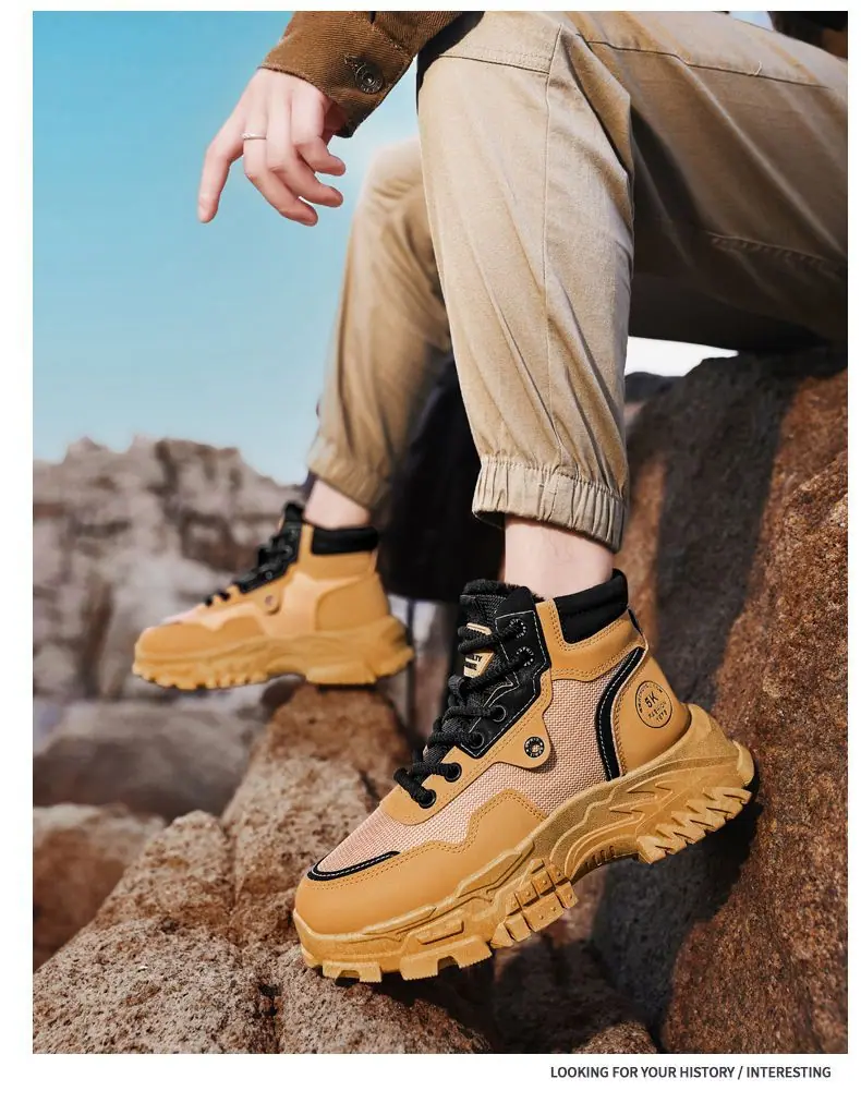 Compra Zapatos de invierno para hombre más terciopelo grueso deportivos de ocio botas de nieve adolescentes suela gruesa papá impermeable a prueba de frío cálidos zapatos de algodón al por mayor en Joom.pro