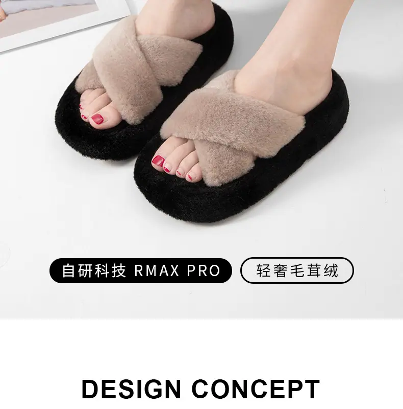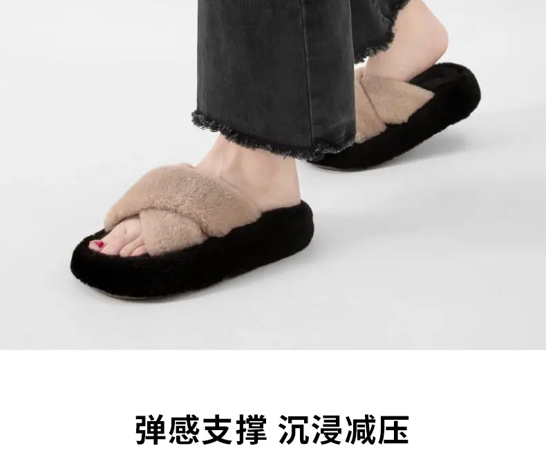 Pantuflas Peludas Mujer 2025 Nuevo Estilo Coreano ins Zapatos de Moda Otoño Invierno Interior Hogar Antideslizantes Cálidas Exterior Algodón Pantuflas