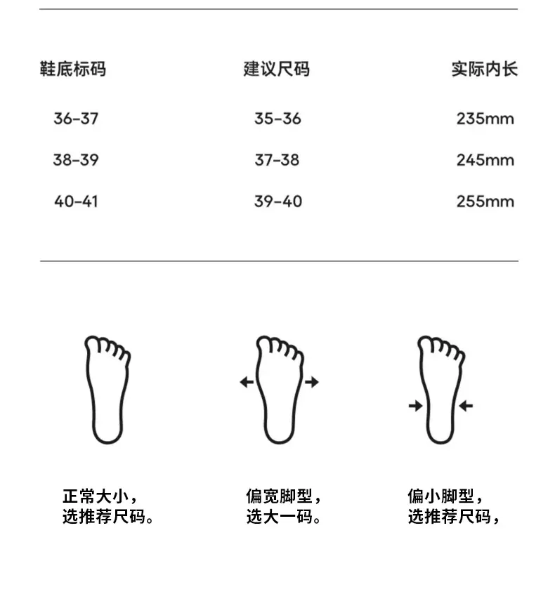 36-37 (suitable for size 35-36), 38-39 (suitable for size 37-38), 40-41 (suitable for size 39-40)