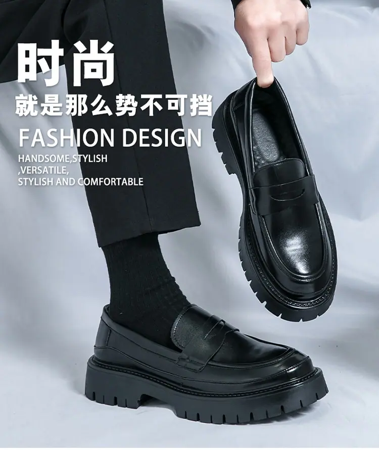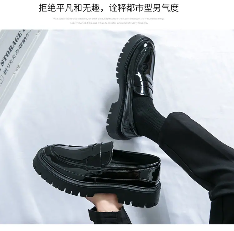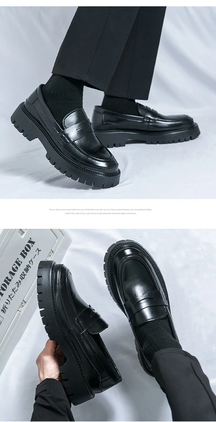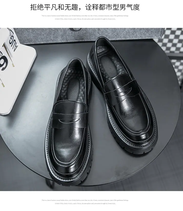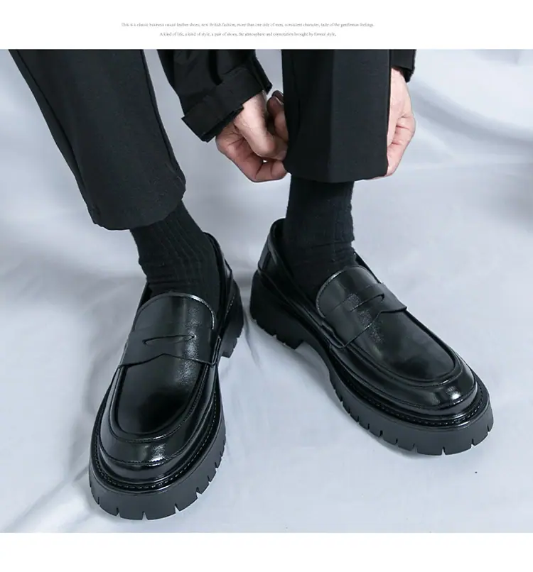 Mocasines de Suela Gruesa Estilo Británico para Hombre Talla Extra Transfronteriza Zapatos de Cuero Casual de Negocios Zapatos Perezosos Slip-On Envío Directo