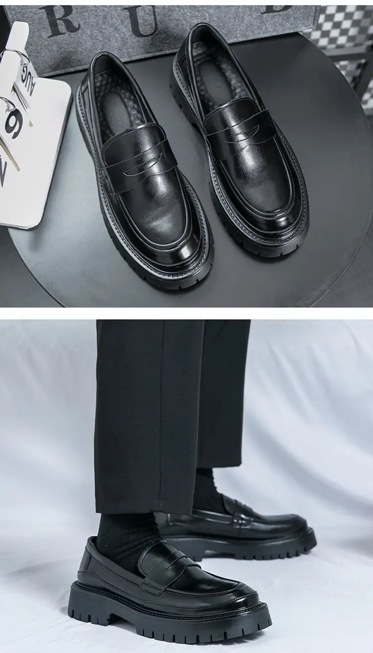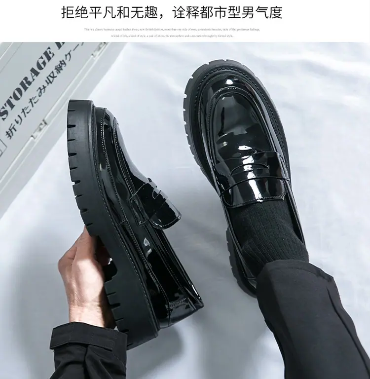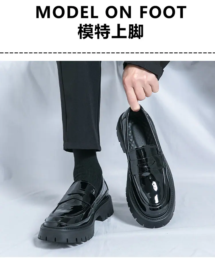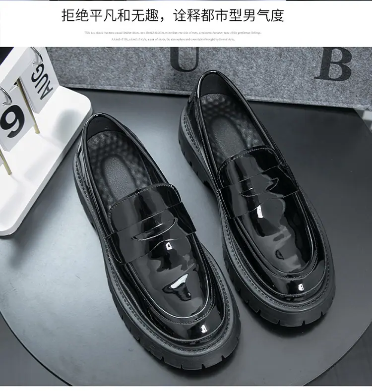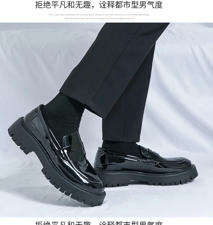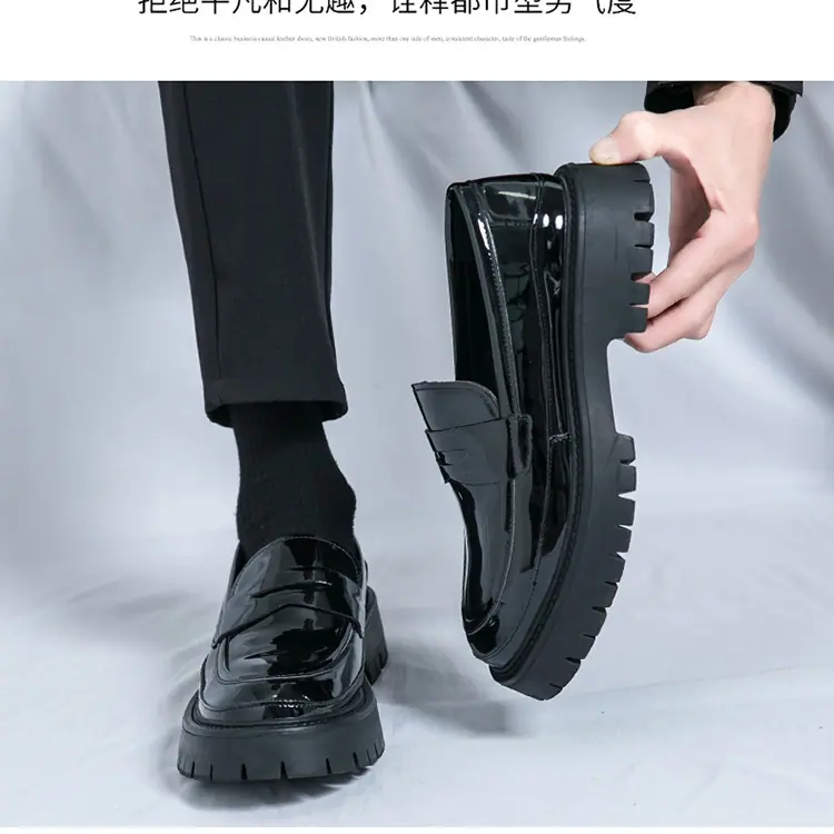 Mocasines de Suela Gruesa Estilo Británico para Hombre Talla Extra Transfronteriza Zapatos de Cuero Casual de Negocios Zapatos Perezosos Slip-On Envío Directo