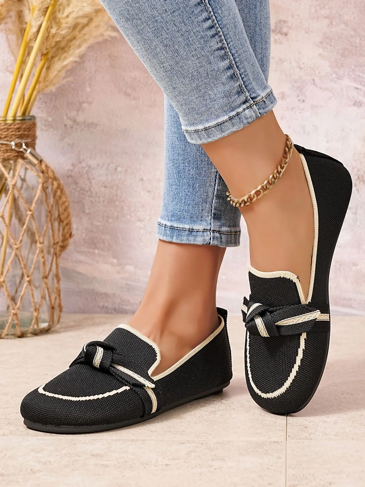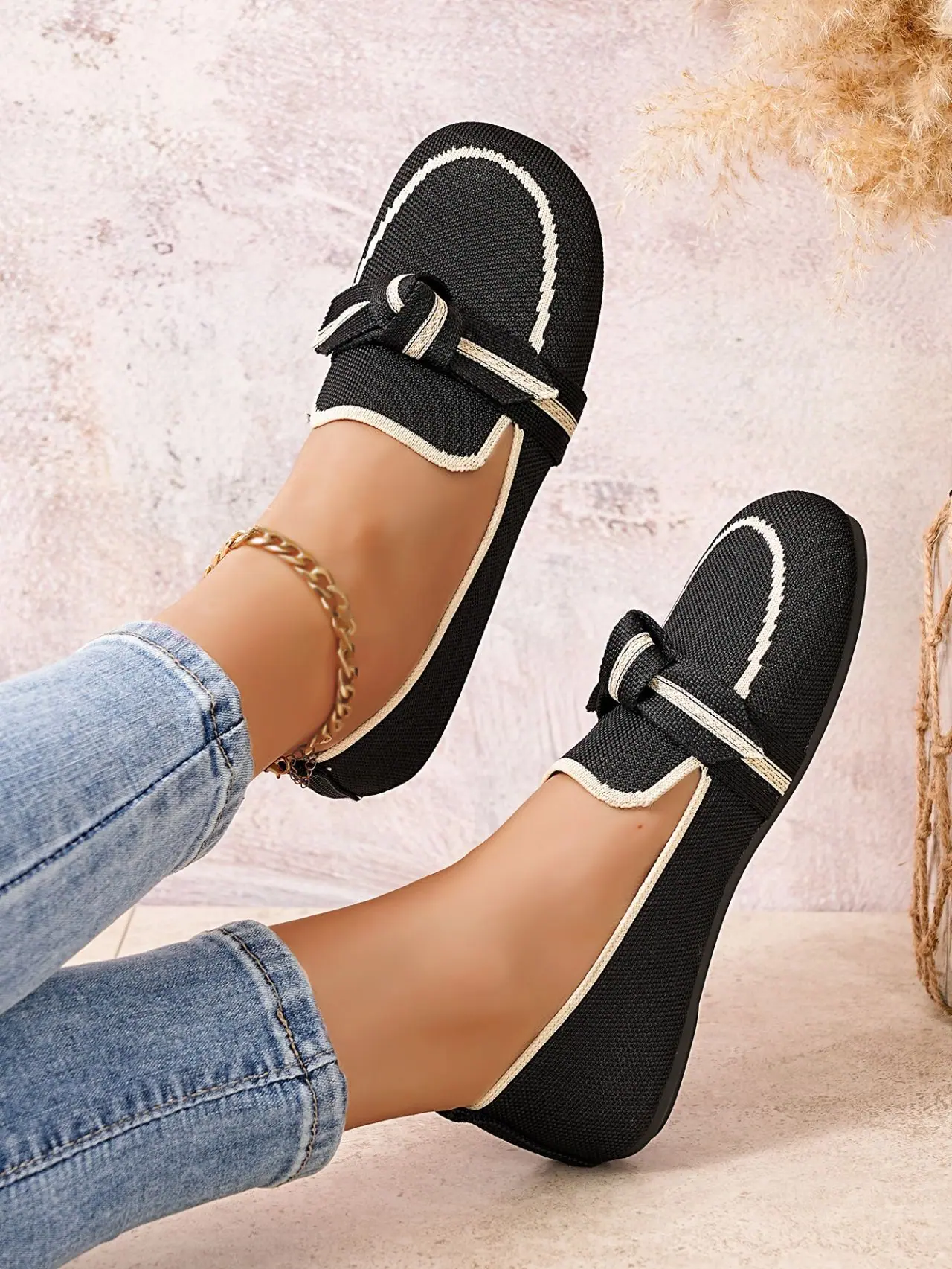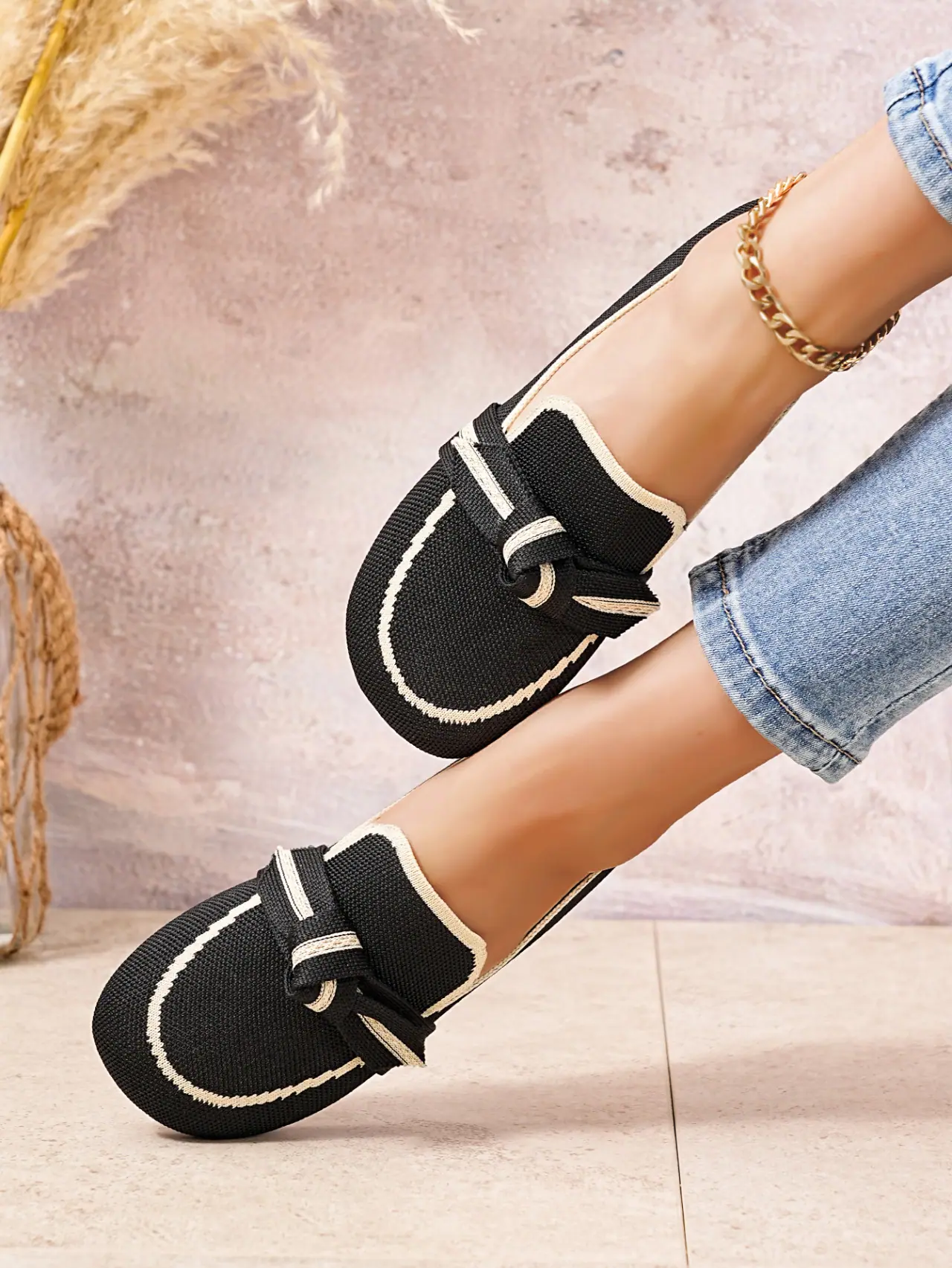 Otoño 2025 Nuevos Zapatos Planos de Talla Grande para Mujer Perezosa de un Solo Zapato Comercio Exterior Color Block Trenzado Torcido Transpirables Casual Mocasines