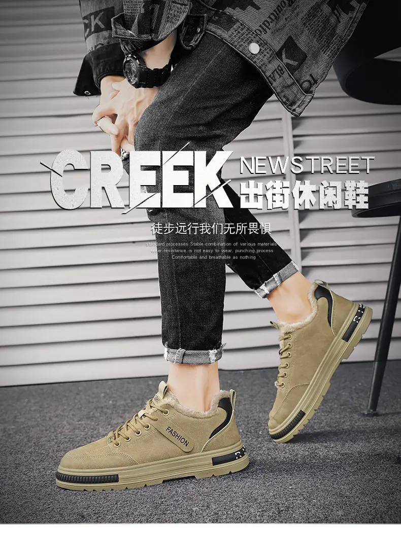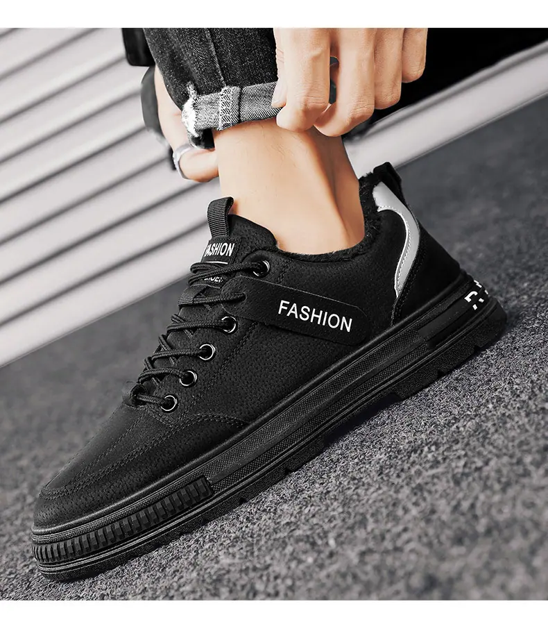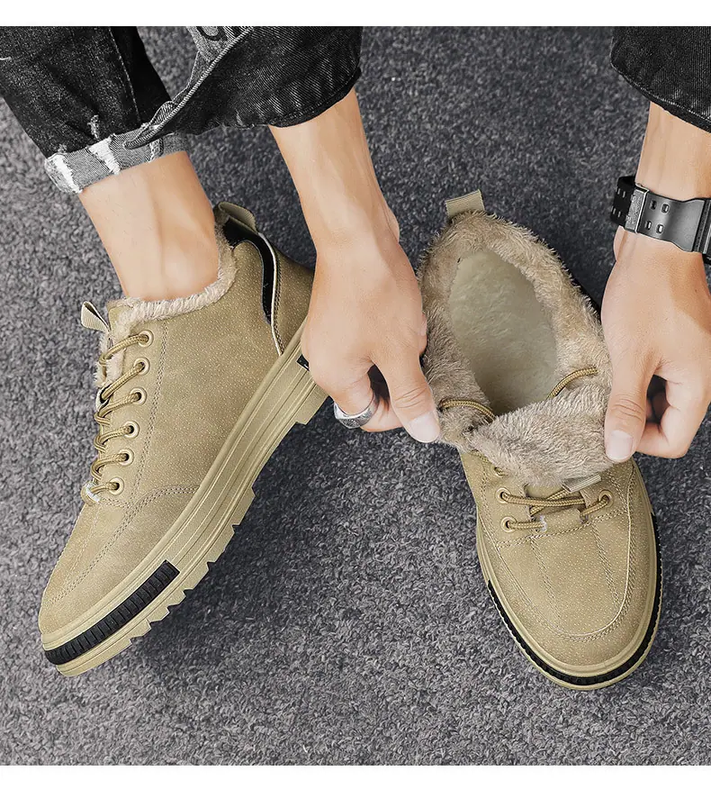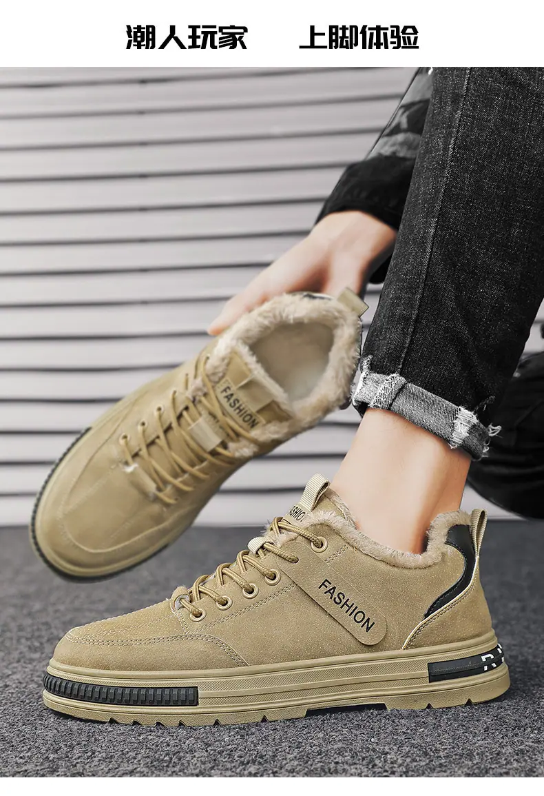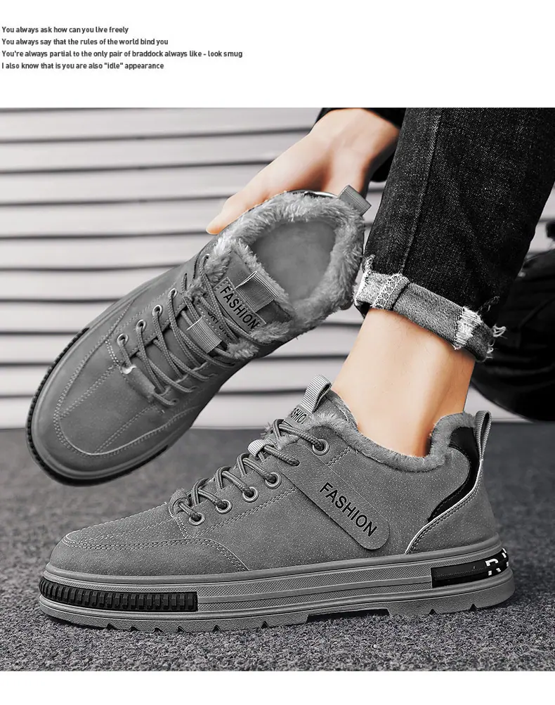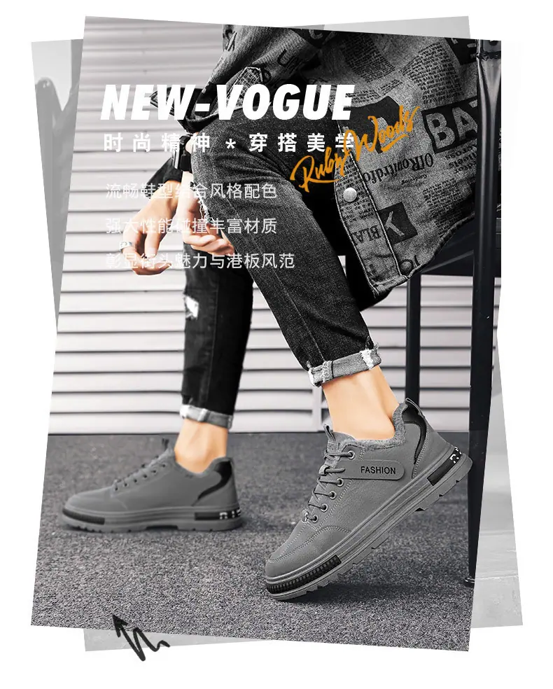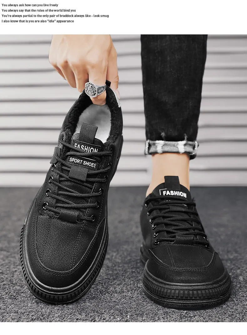 Zapatos de Trabajo Nuevos de Invierno para Hombre con Felpa Estilo Coreano Versátiles Antideslizantes Deportivos Casuales Zapatos de Tabla Zapatos de Protección Laboral para Hombre