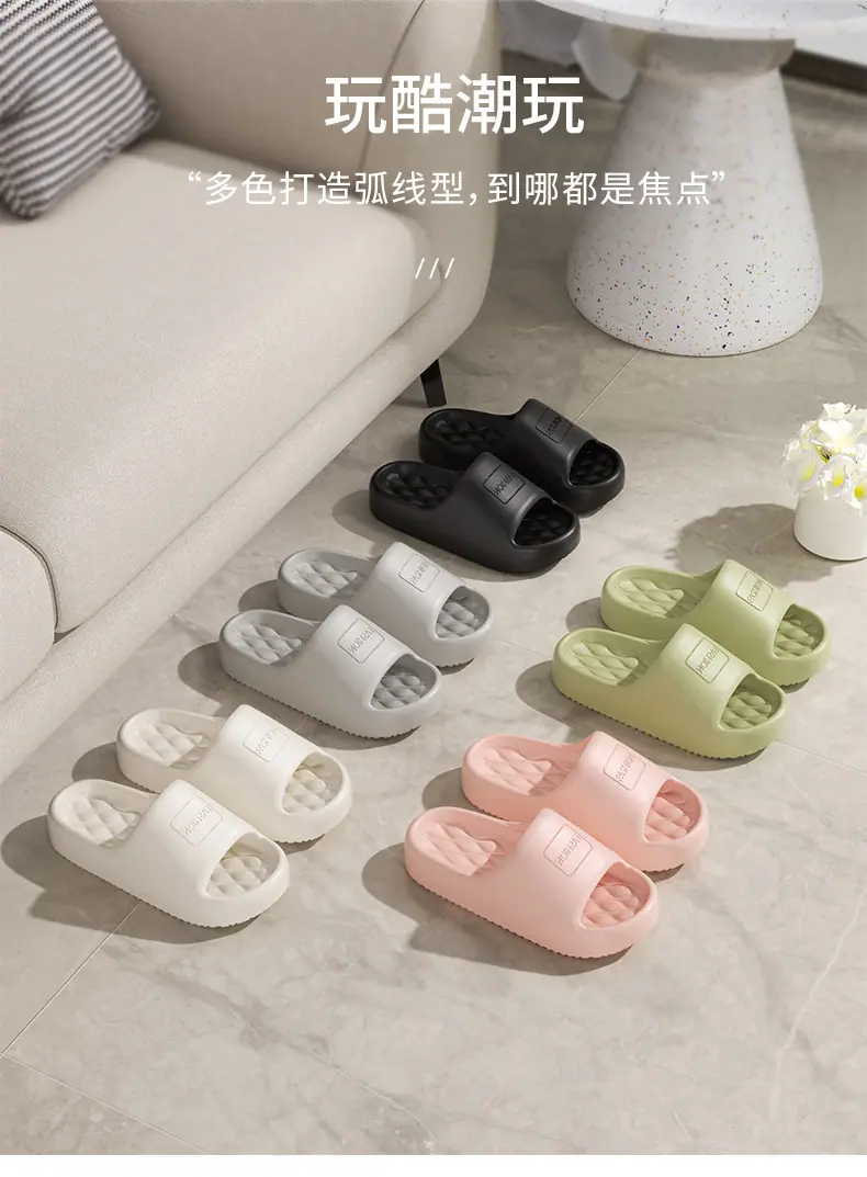 Nuevas pantuflas eva para mujer verano pareja hogar para interior y exterior antideslizantes pisar mierda sensación suela gruesa baño pantuflas frescas hombres