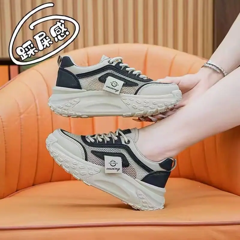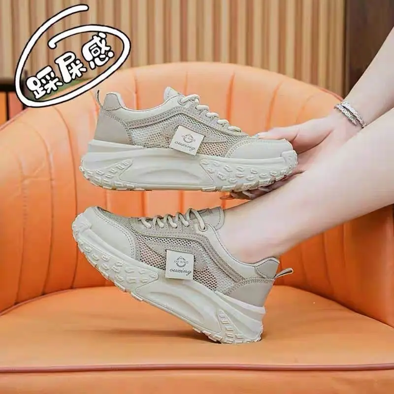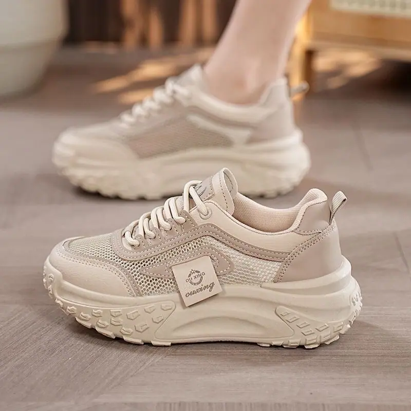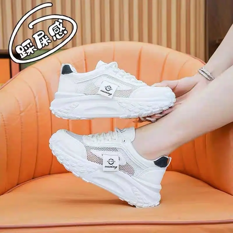 Compra Zapatos Blancos de Malla con Suela Gruesa para Mujer 2024 Nuevo Primavera y Verano Zapatos de Papá para Mujer Estilo Coreano Transpirables Versátiles Casuales Deportivos al por mayor en Joom.pro