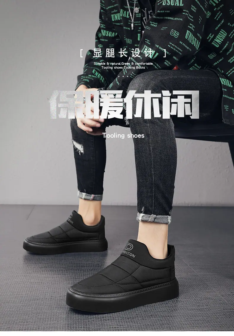 Zapatos de algodón para hombre invierno más terciopelo más gruesos zapatos de algodón cálidos para hombre zapatos casuales de un paso botas para nieve zapatos deportivos negros
