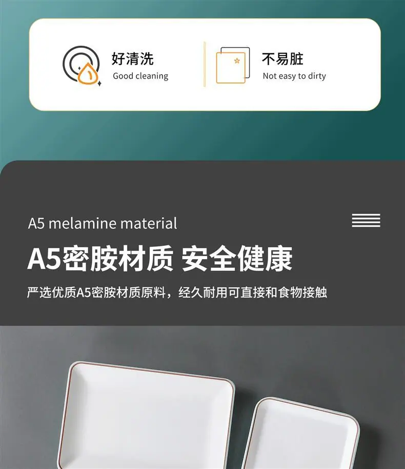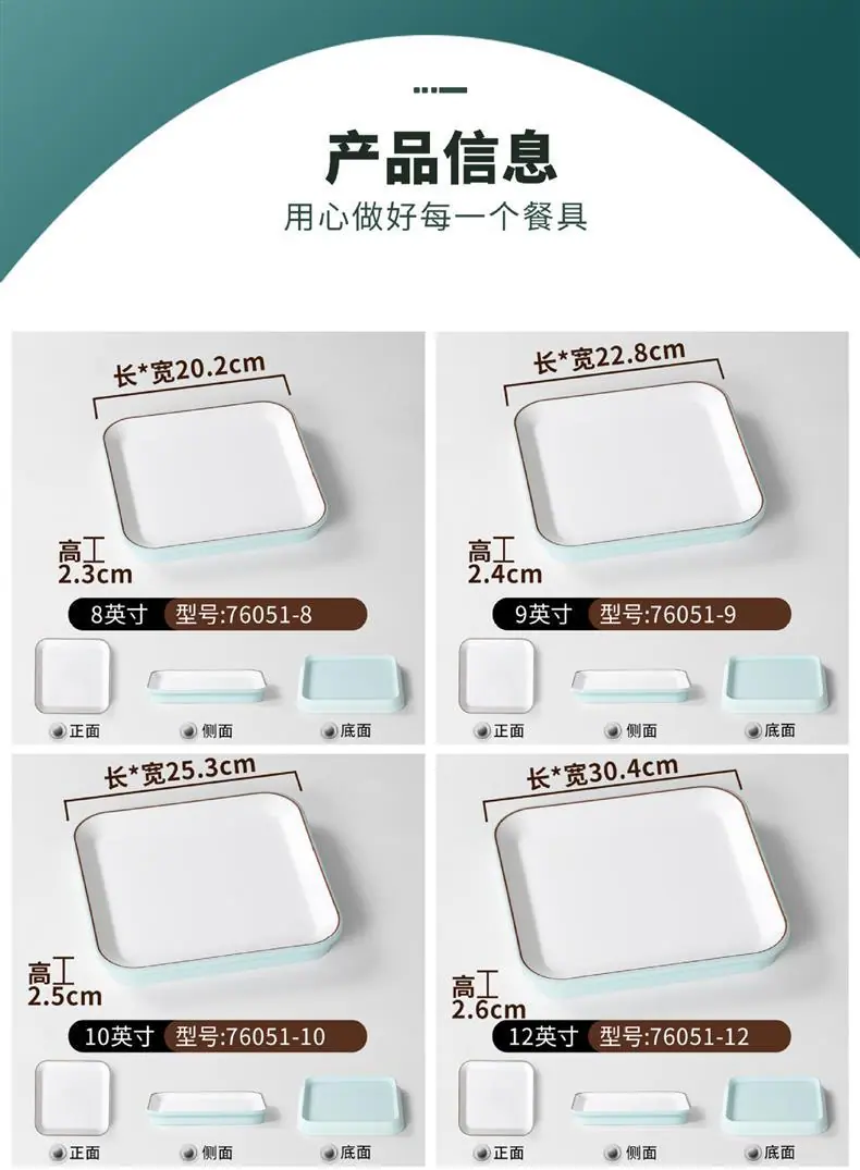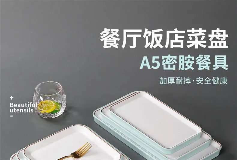 Plato Rectangular Comercial Restaurante Hotel Especial Plato Cuadrado Plato para Cocinar Plato para Barbacoa Plato Plano Juego de Vajilla de Melamina