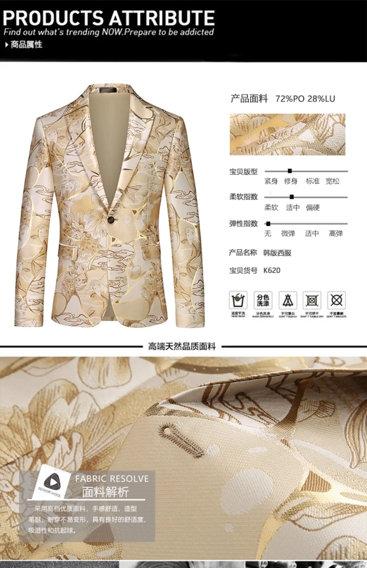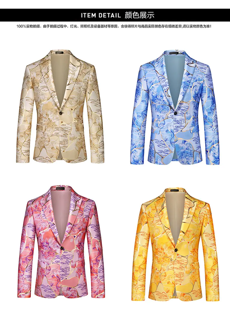 Compra Nuevo Blazer Chaqueta de Hombre Comercio Exterior Transfronterizo Pecho Sencillo Estilo Europeo y Americano Tendencia Juvenil Moda Traje Jacquard de Un Botón Hombre al por mayor en Joom.pro