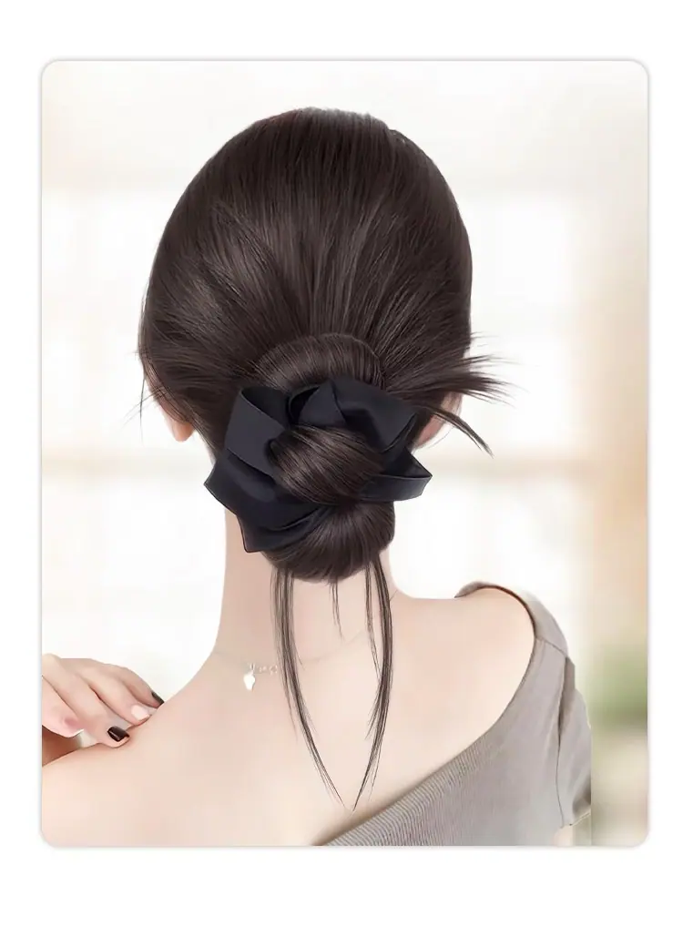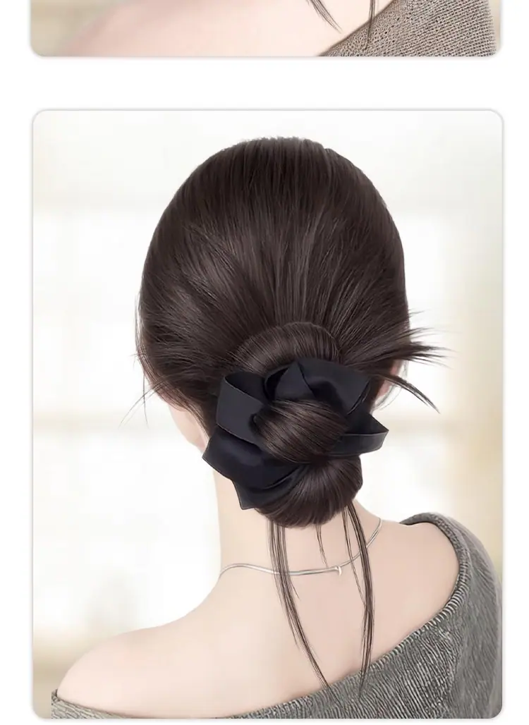 Compra Moño Peluca con Pinza de Garra, Anillo para el Cabello Negro, Moño de Plumas, Peinado Atmosférico, Moño Peluca Bajo Atado Naturalmente Esponjoso al por mayor en Joom.pro
