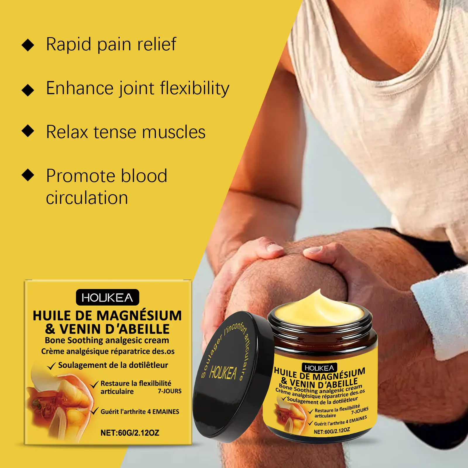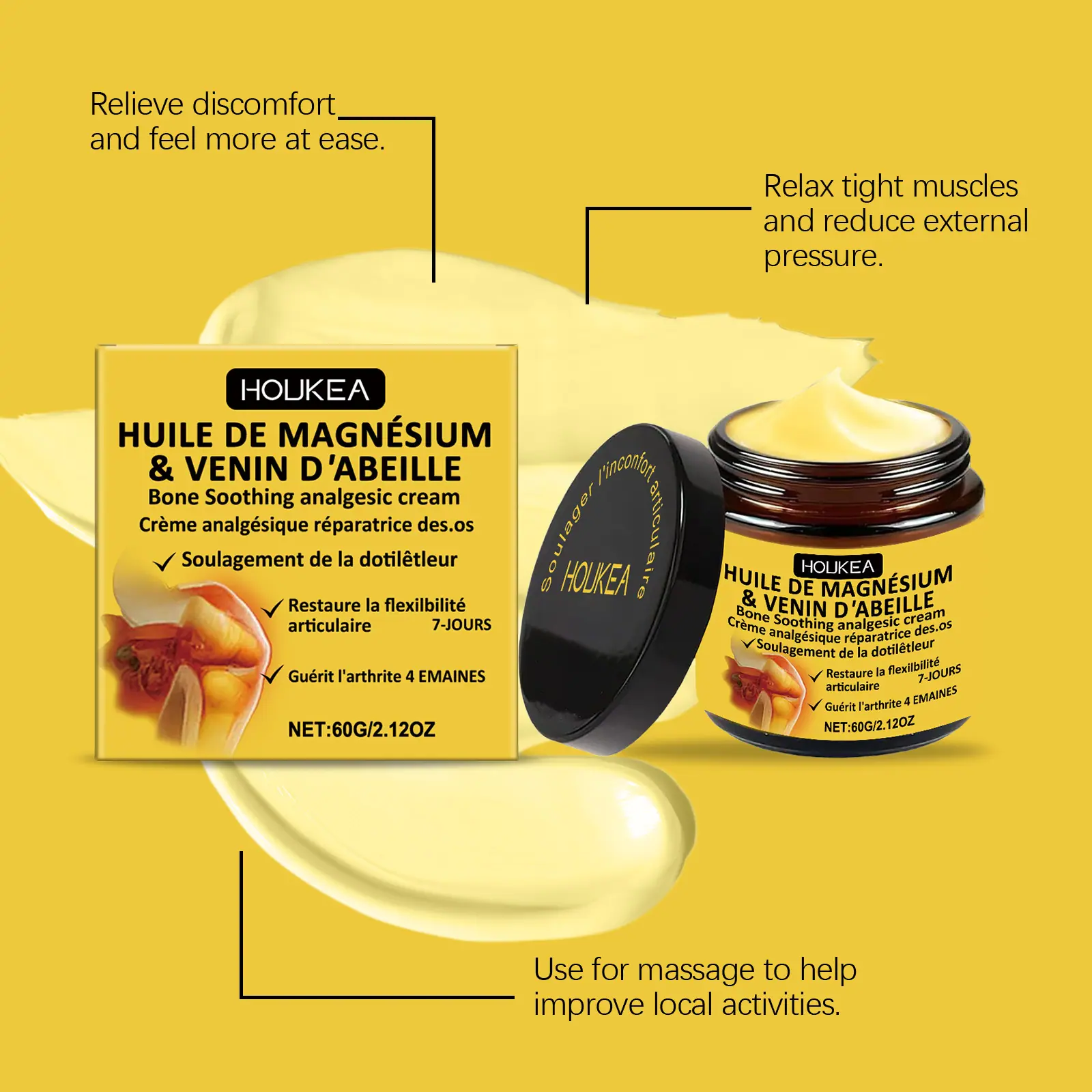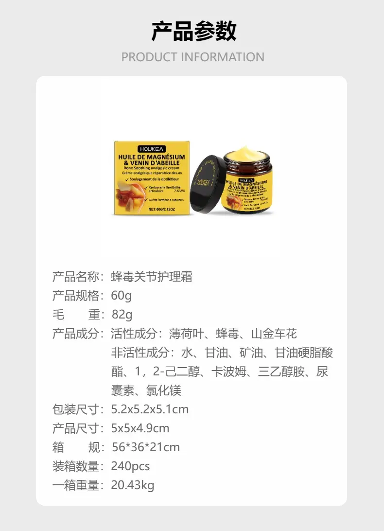 Crema para el Cuidado Articular con Veneno de Abeja Houkea Cuidado Nutritivo Diario Uso Externo para Articulaciones de Manos y Pies Crema para el Cuidado con Masaje Suave