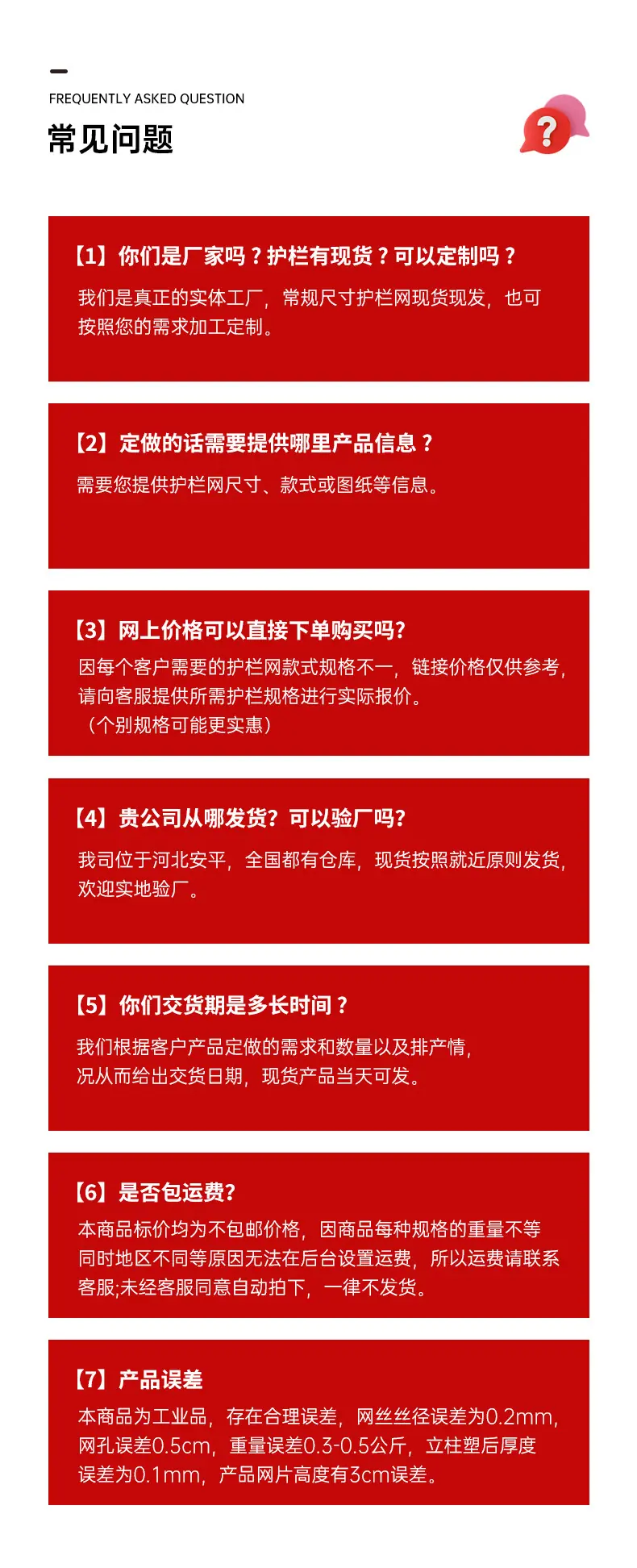 1.5m high, 1.8m high, 2m high, 2.5m high