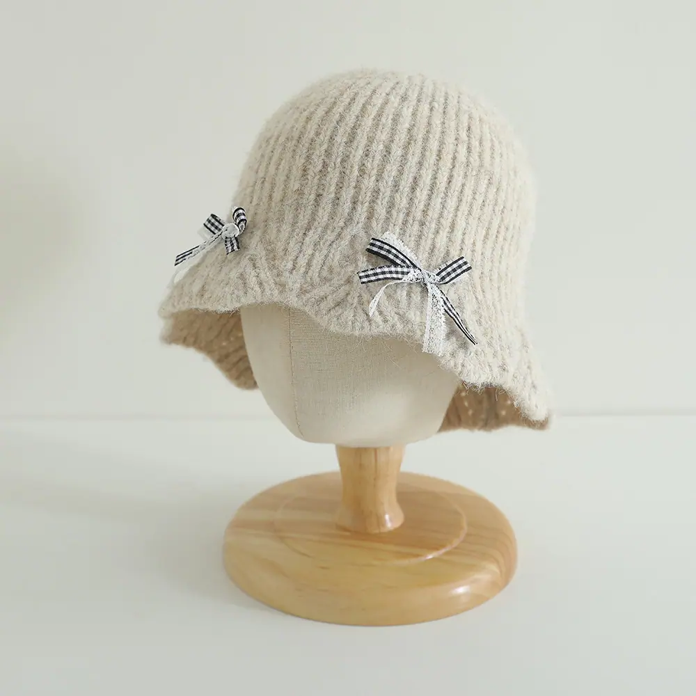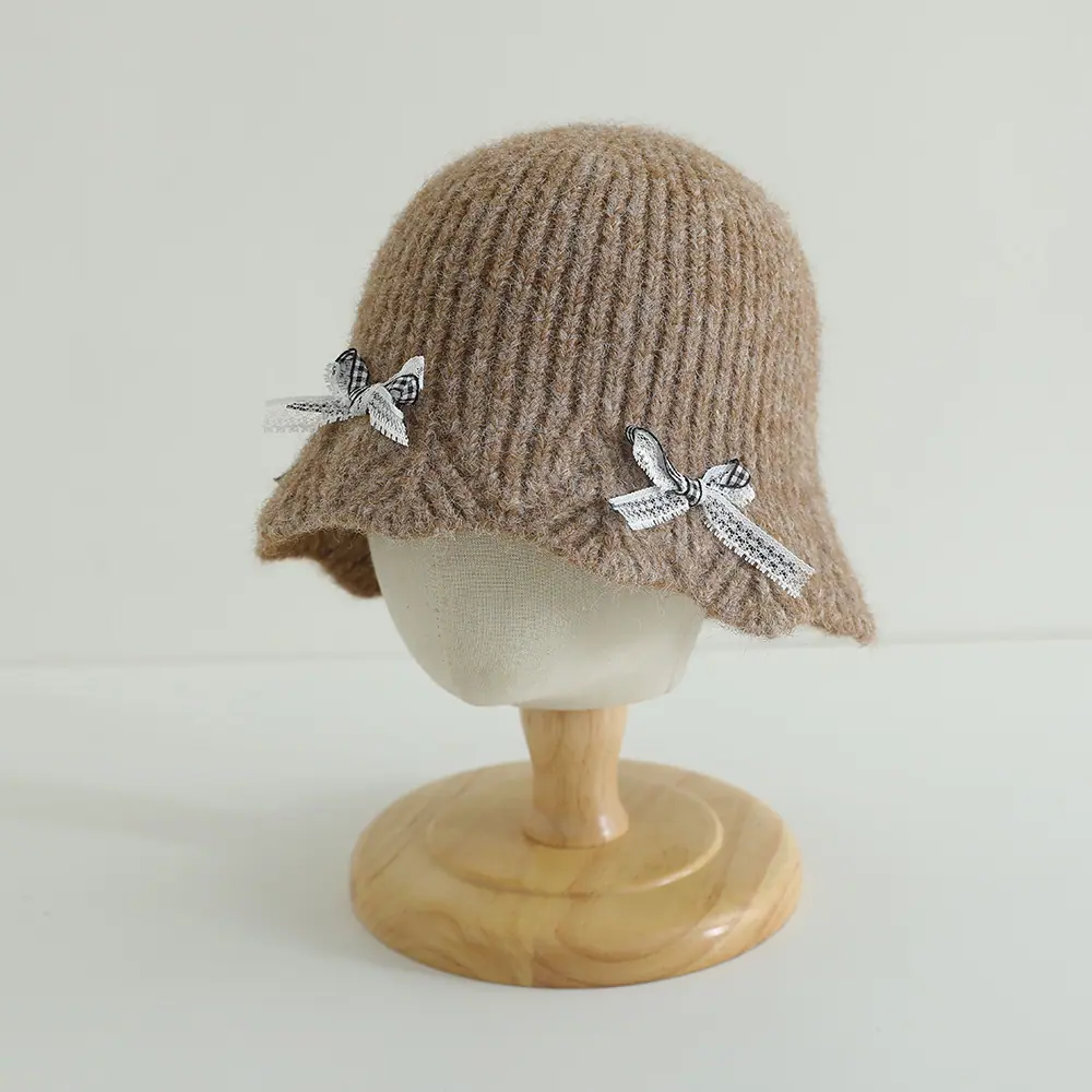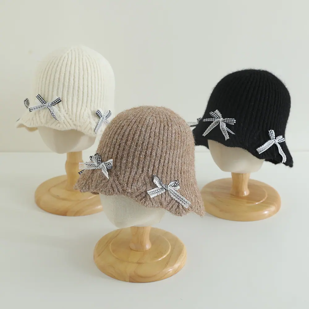 Compra Otoño e Invierno Lindo y Dulce Sombrero de Punto con Lazo Fino para Niñas Cálido Sombrero de Pescador de Lana Moda de Princesita Sombrero de Cubo al por mayor en Joom.pro
