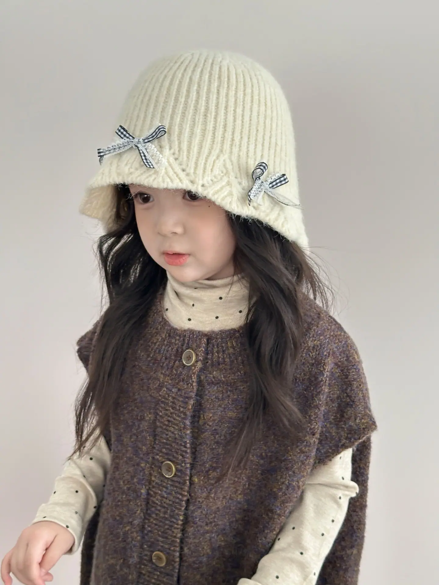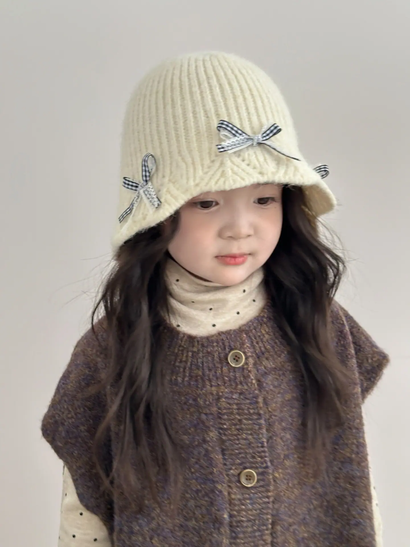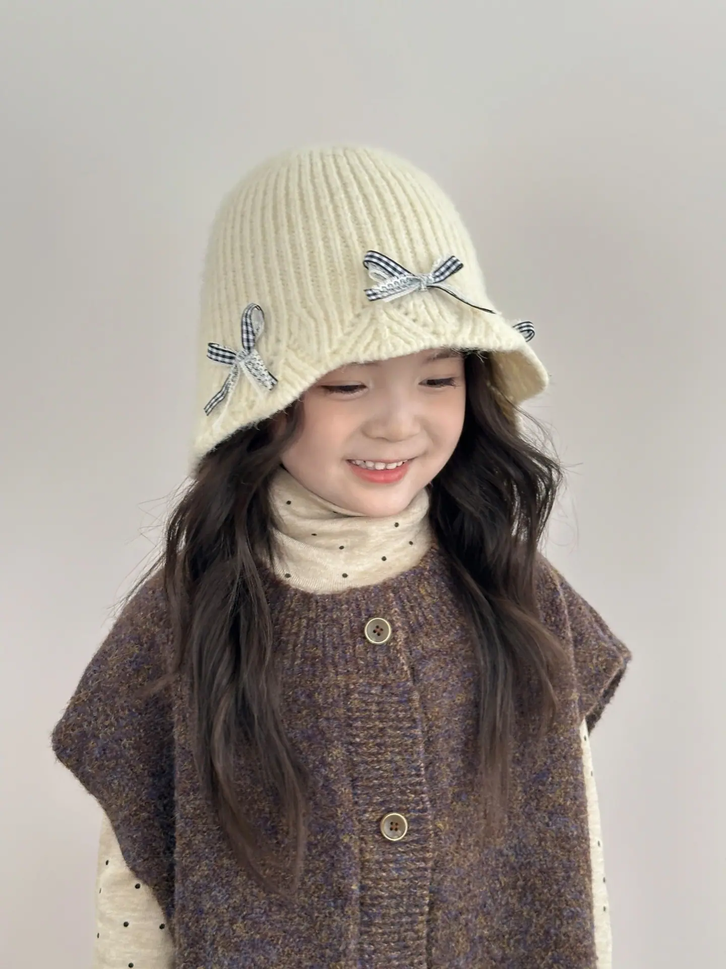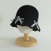 Otoño e Invierno Lindo y Dulce Sombrero de Punto con Lazo Fino para Niñas Cálido Sombrero de Pescador de Lana Moda de Princesita Sombrero de Cubo