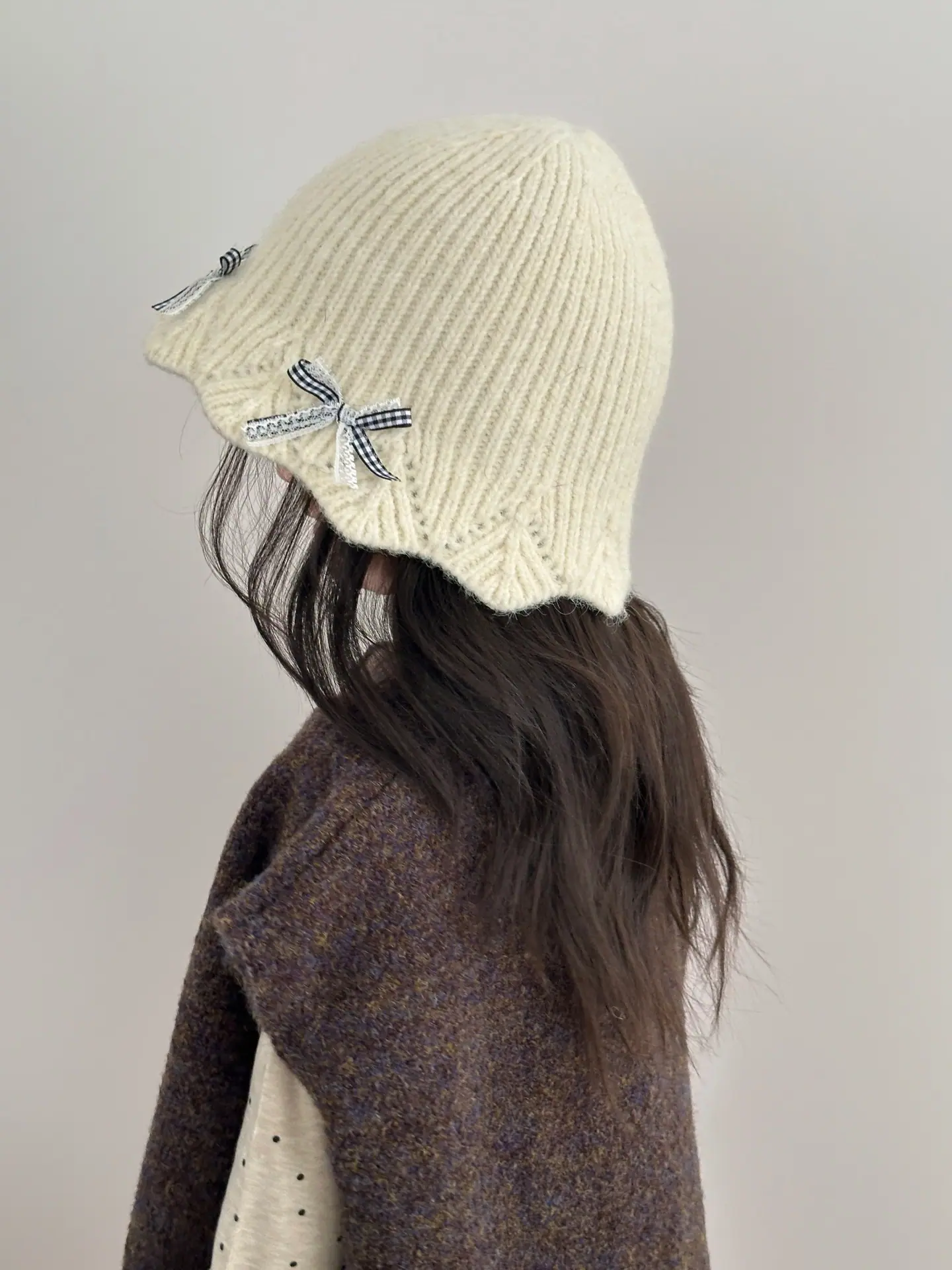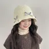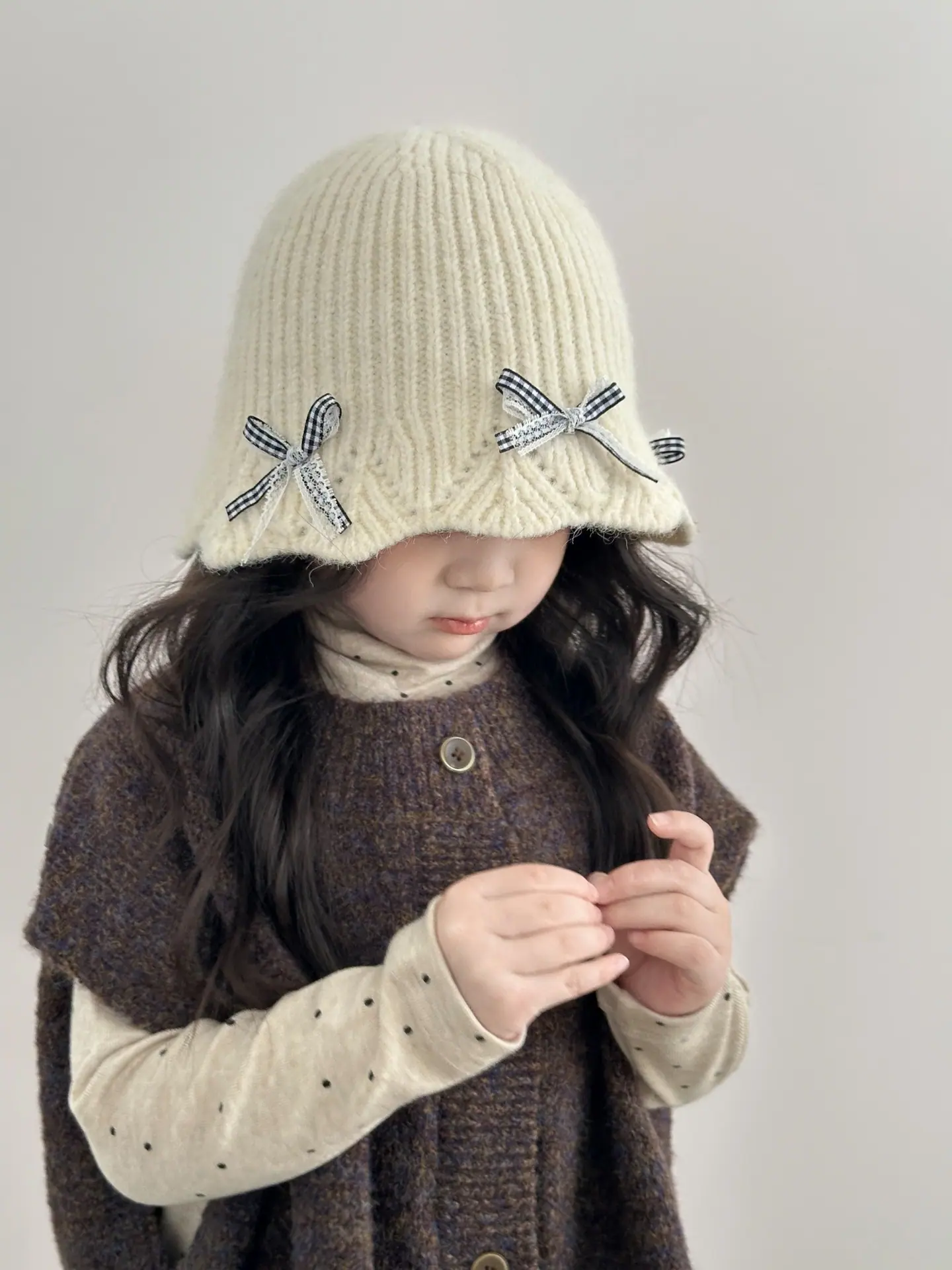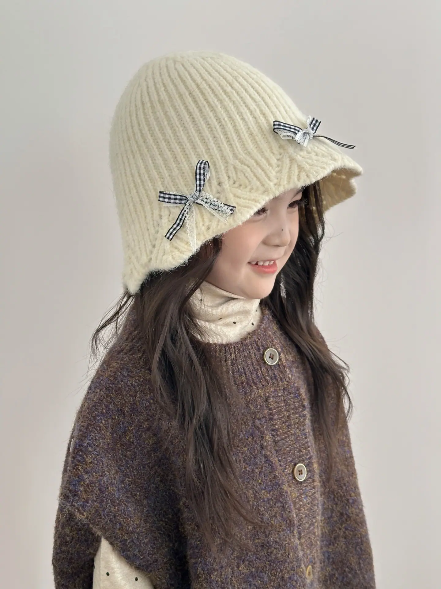 Otoño e Invierno Lindo y Dulce Sombrero de Punto con Lazo Fino para Niñas Cálido Sombrero de Pescador de Lana Moda de Princesita Sombrero de Cubo
